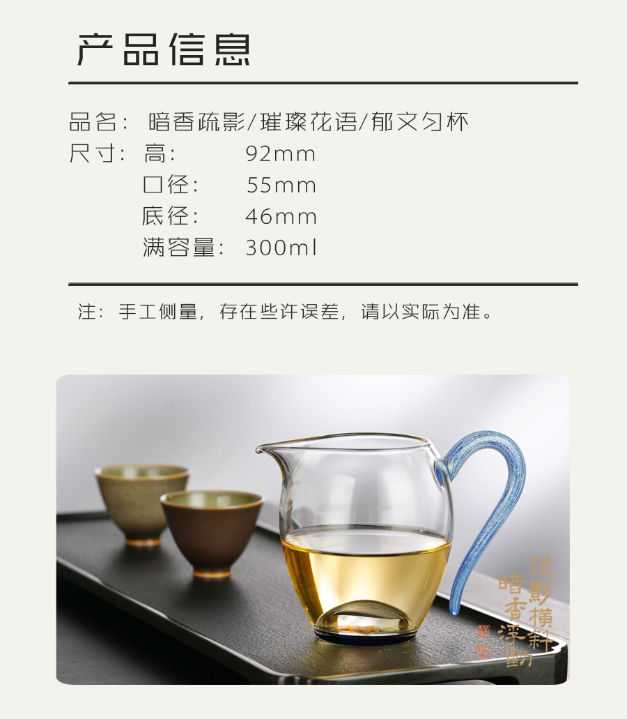 暗香疏影/璀璨花语/郁文匀杯高硼硅玻璃公道杯分茶器茶海家用300ml