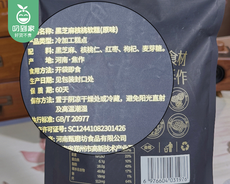 甄磨坊黑芝麻核桃软糕/1包(250g)生产日期 3月31日