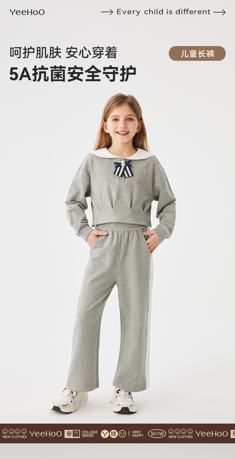 【英氏】【130-170】女童春秋休闲阔腿裤