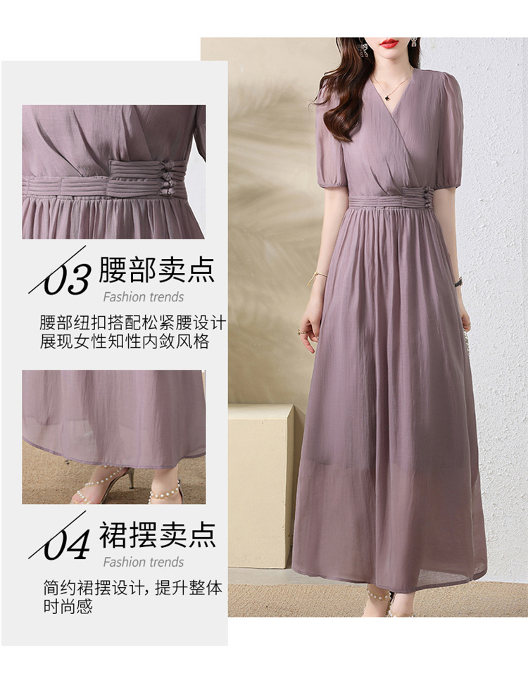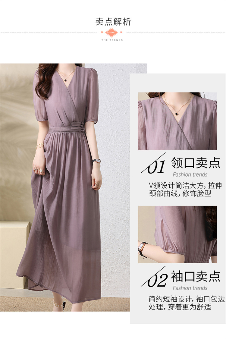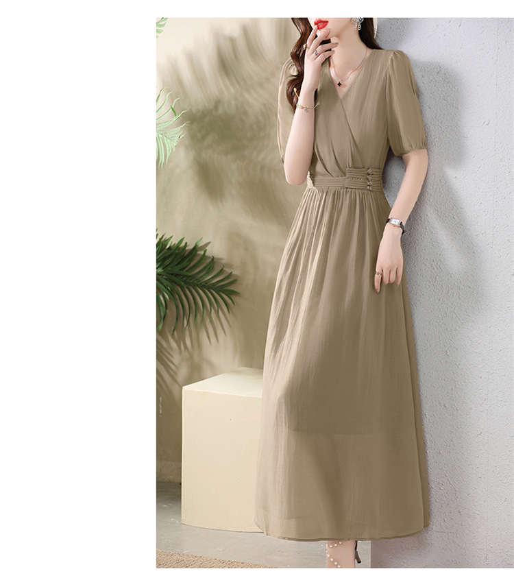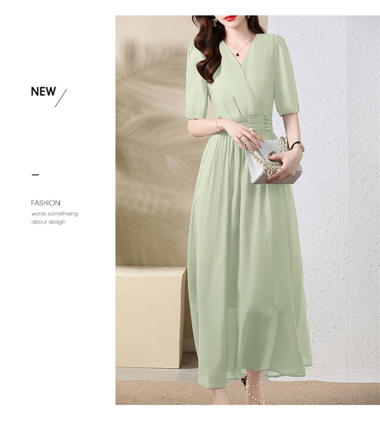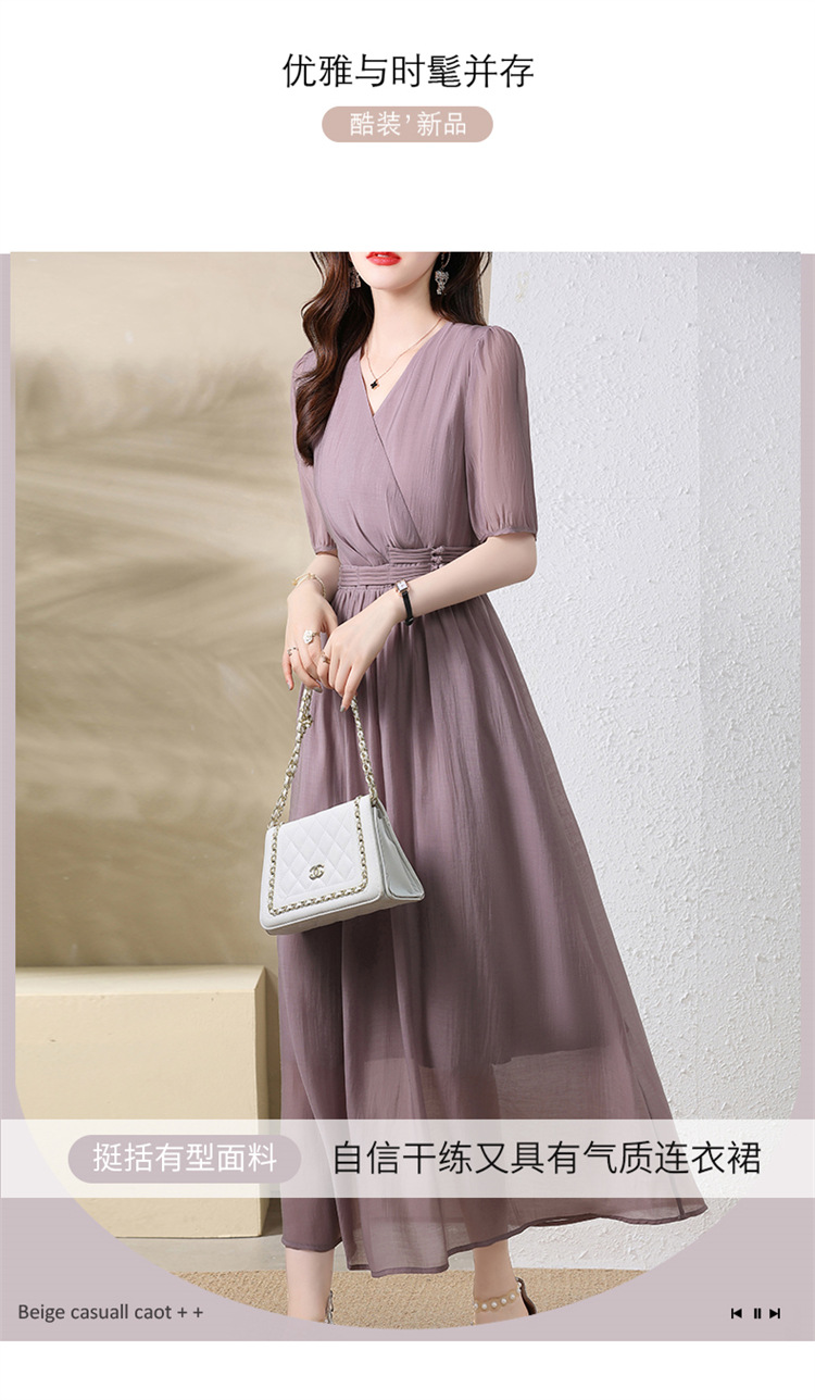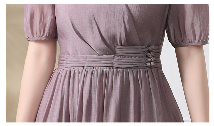 法式天丝连衣裙,夏季薄款2022新款时尚优雅褶皱遮肚子显瘦中长裙HR-XXMC619