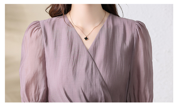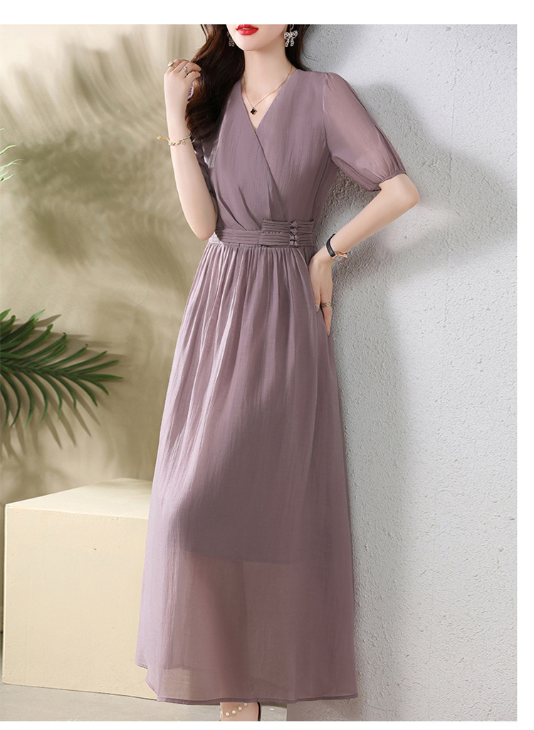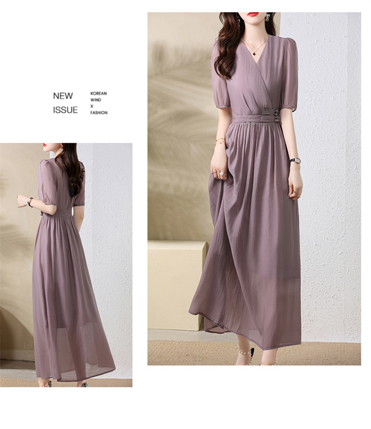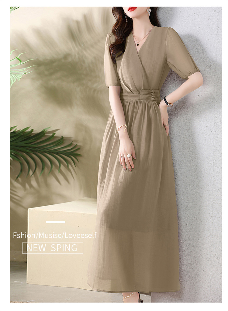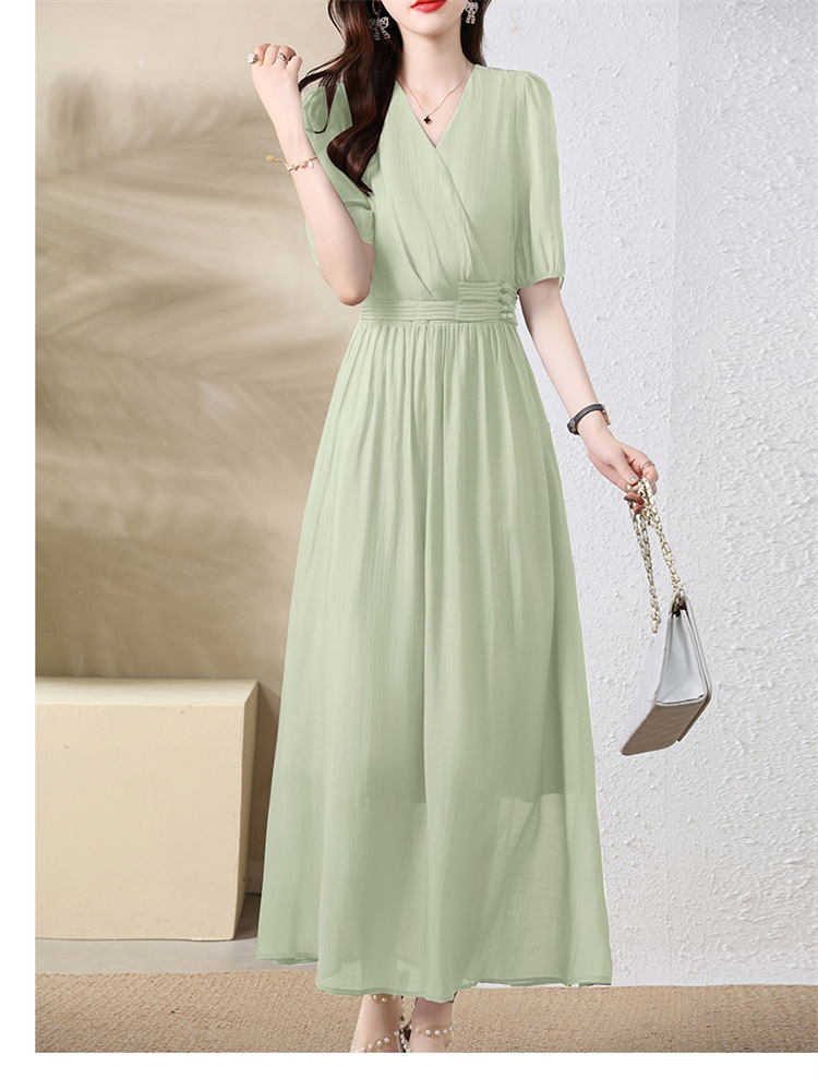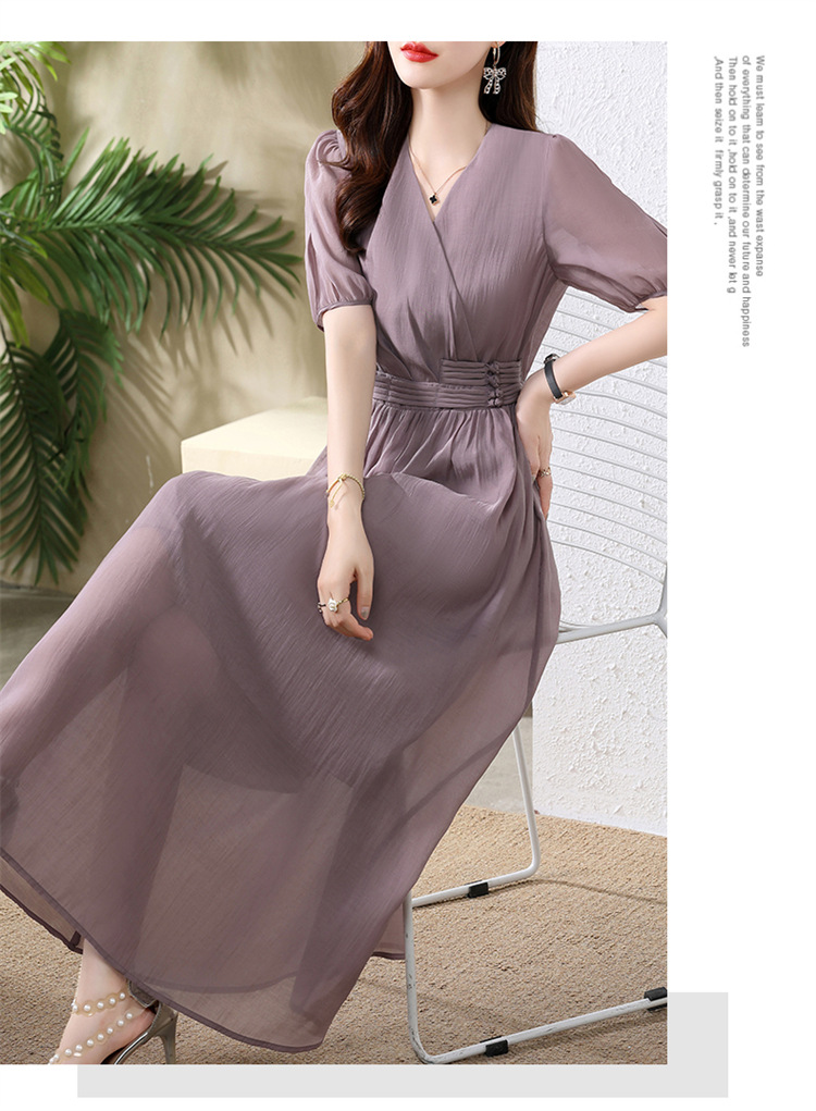 法式天丝连衣裙,夏季薄款2022新款时尚优雅褶皱遮肚子显瘦中长裙HR-XXMC619