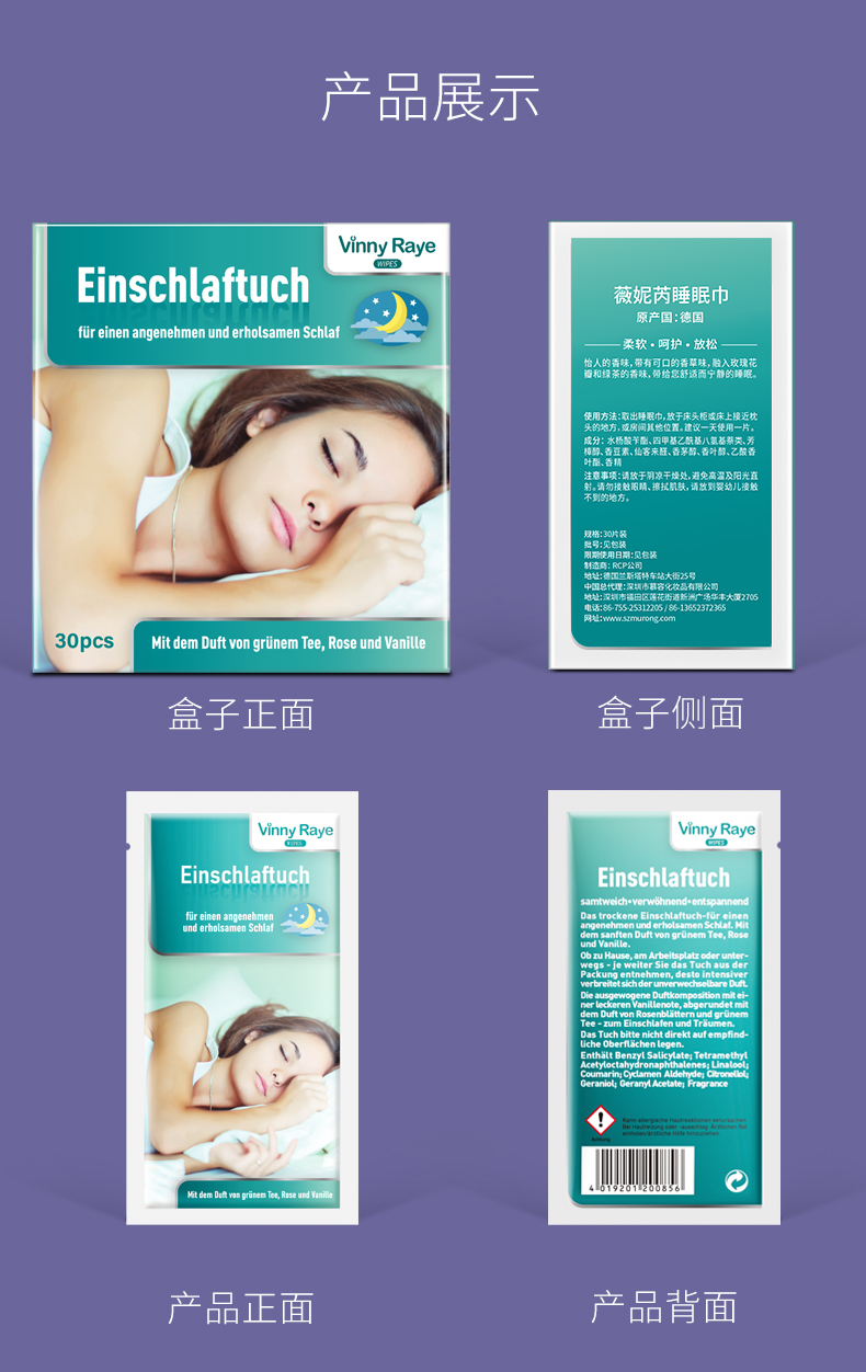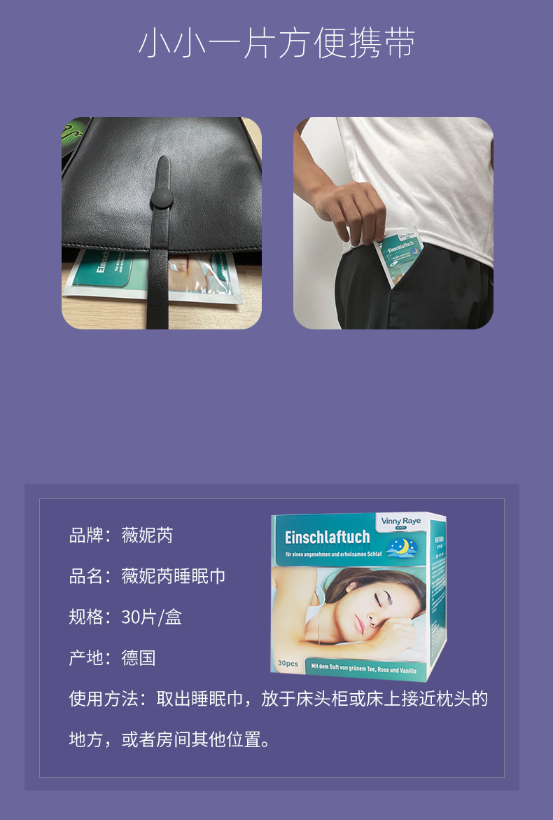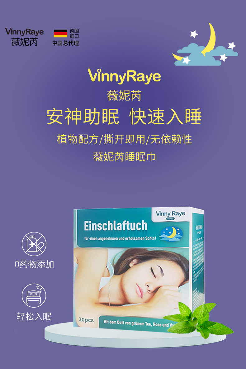 薇妮芮德国进口枕边天然植物香精舒缓睡眠巾深度促进 睡眠失眠独立包装方便携带【30片/盒】