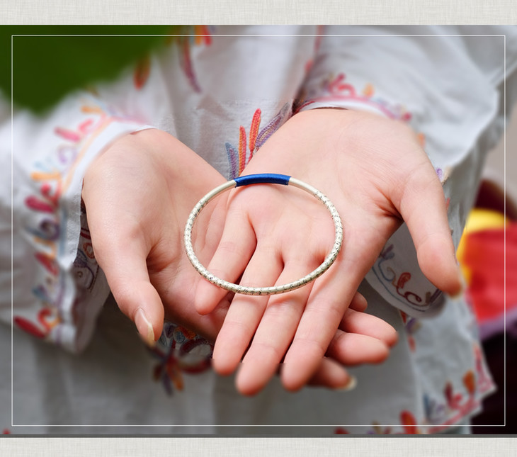 天语龙吟 足银红绳心经手镯经文 亚光实心闭口纯银手镯镯子