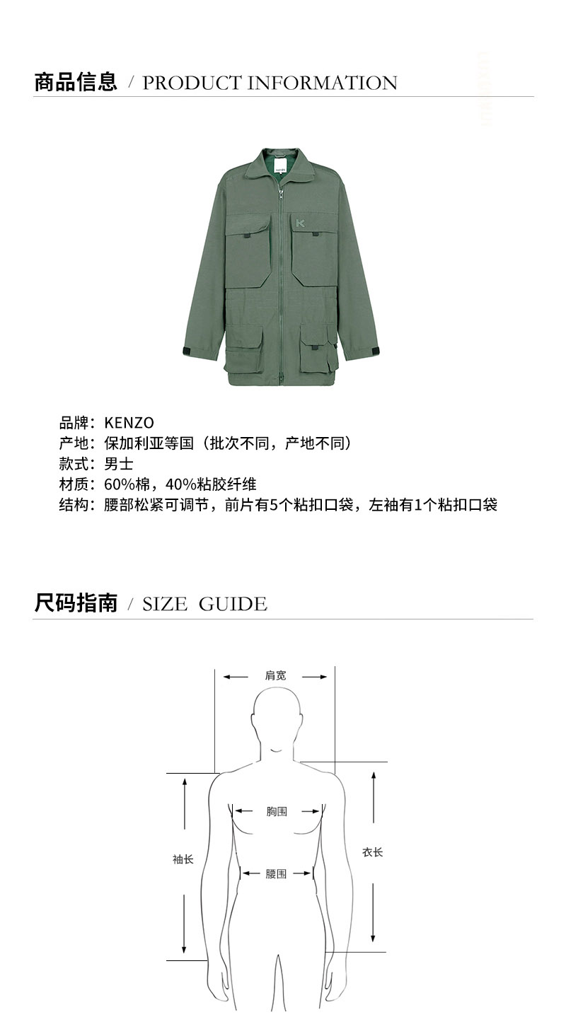 KENZO/高田贤三 男士大衣 男士棉/粘胶纤维超大版工装大衣外套 5OU305 1NA