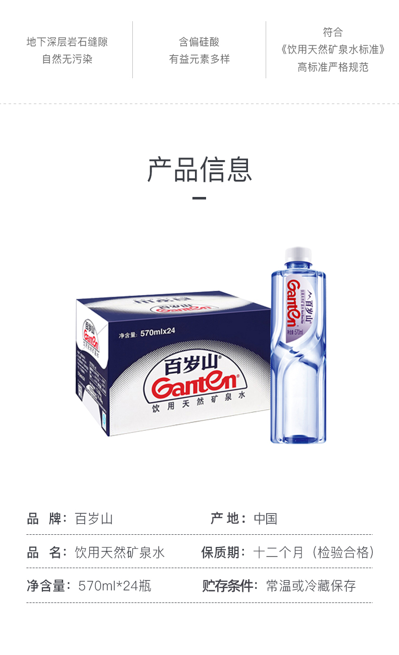 百岁山 景田 饮用天然矿泉水 24瓶整箱装 会议办公用水 家庭健康饮用水