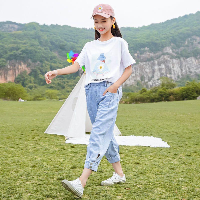 网红套装女童夏装2023新款洋气儿童夏季中大童运动女孩短袖两件套
