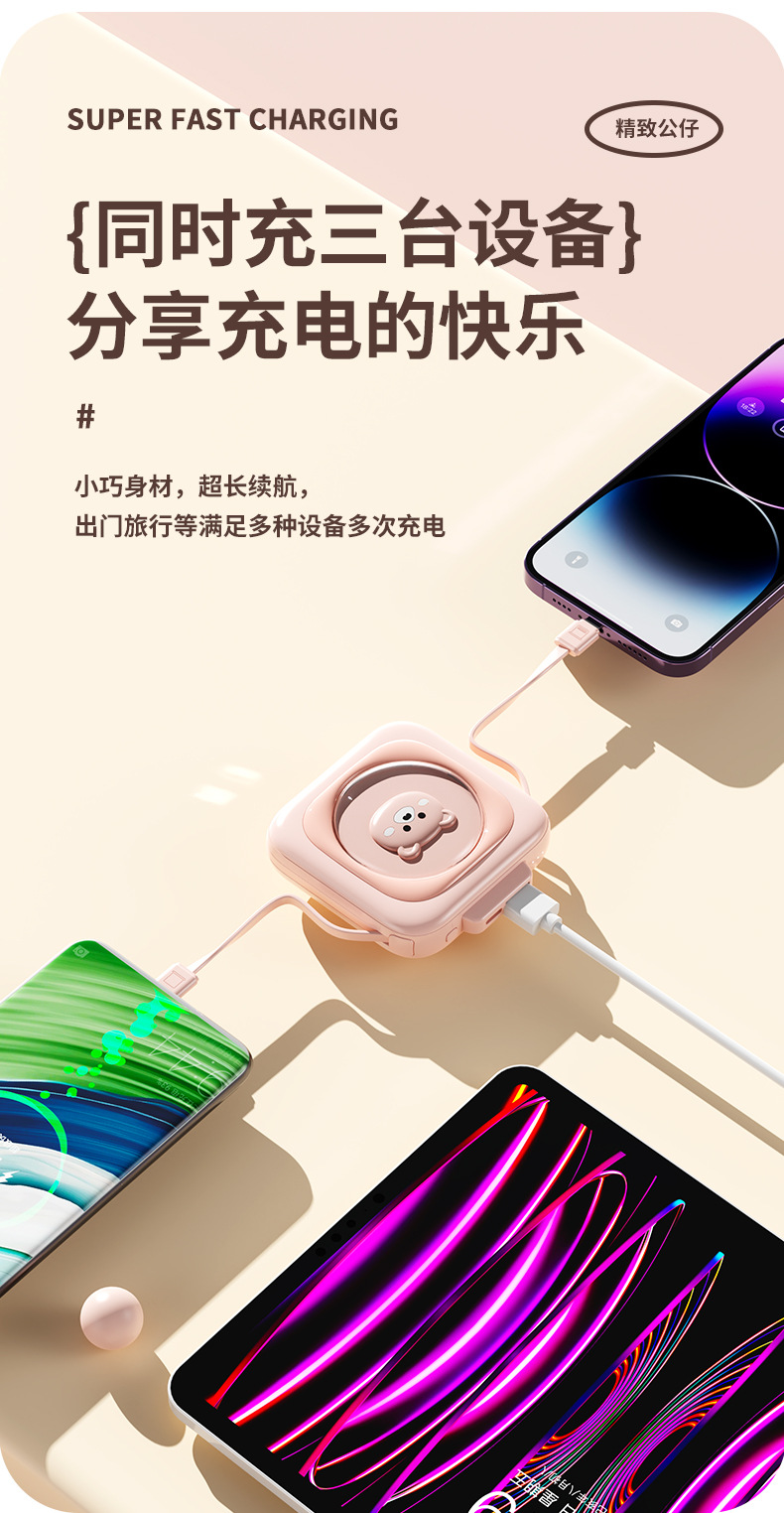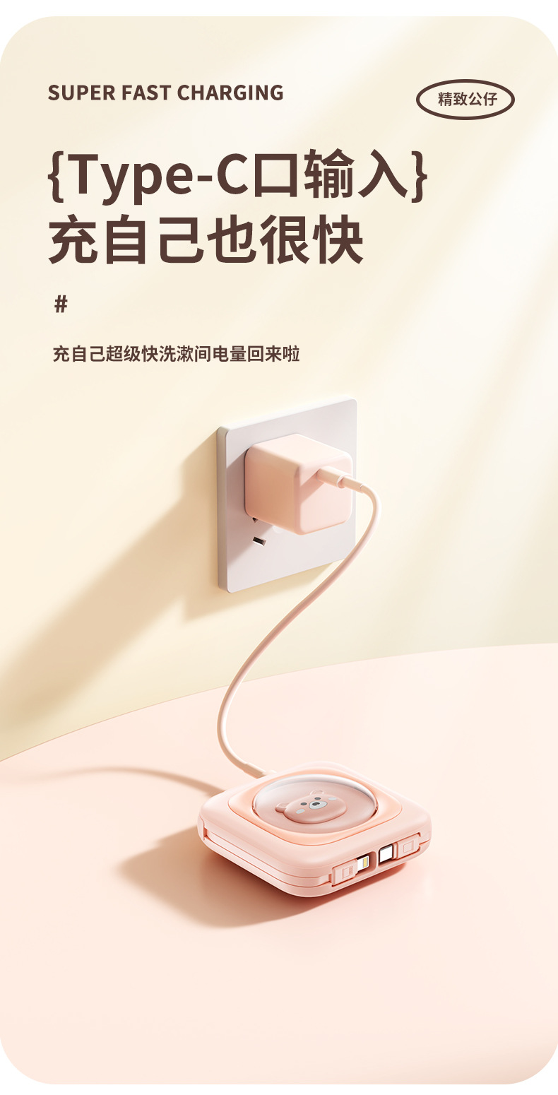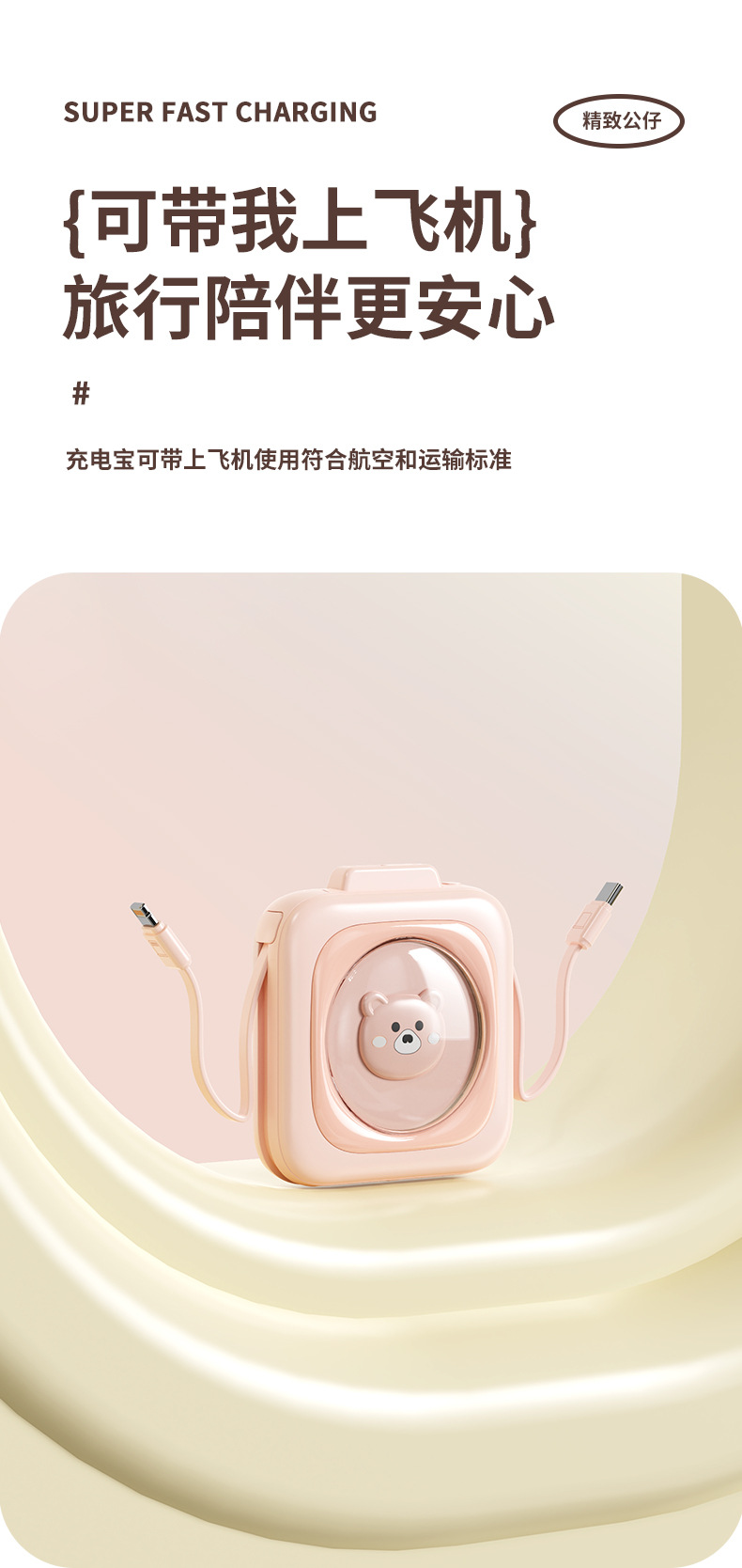【新国标3C认证!迷你自带双线】新款卡通自带线迷你充电宝20000毫安大容量移动电源礼品。ry