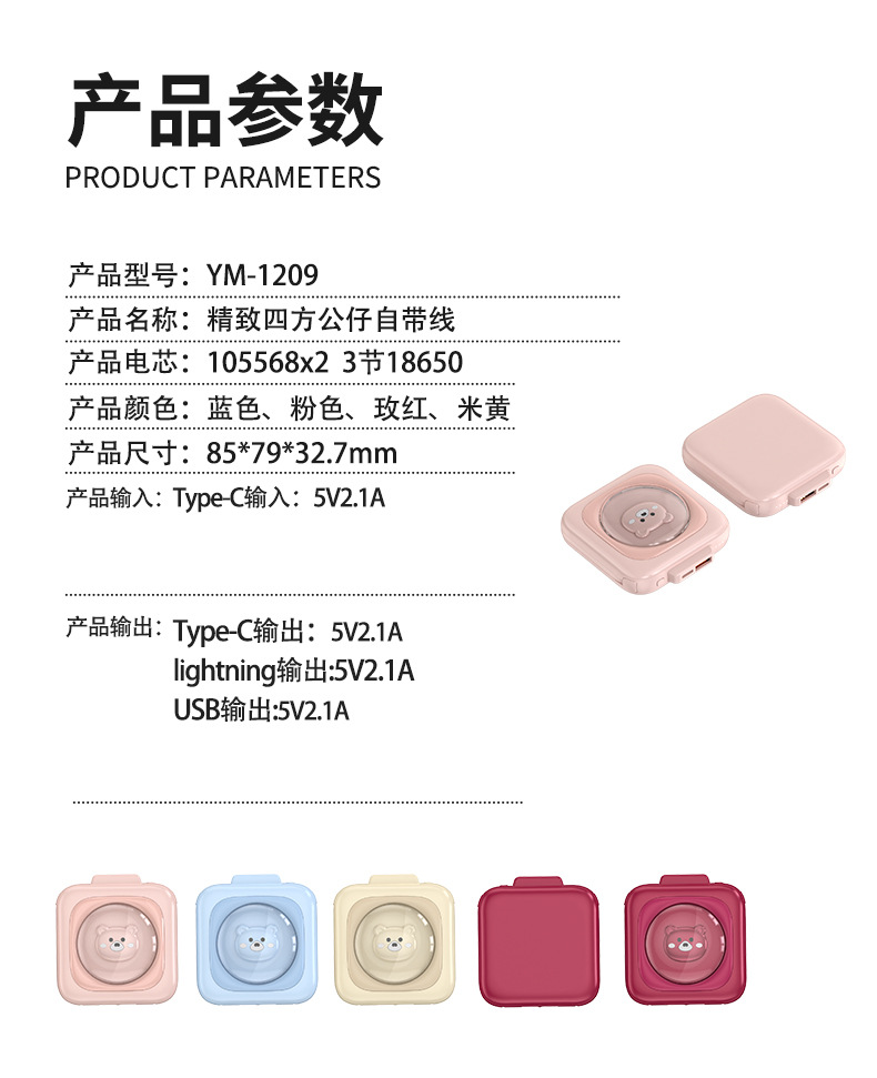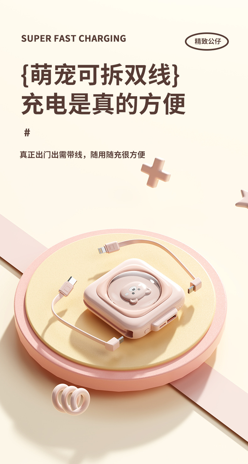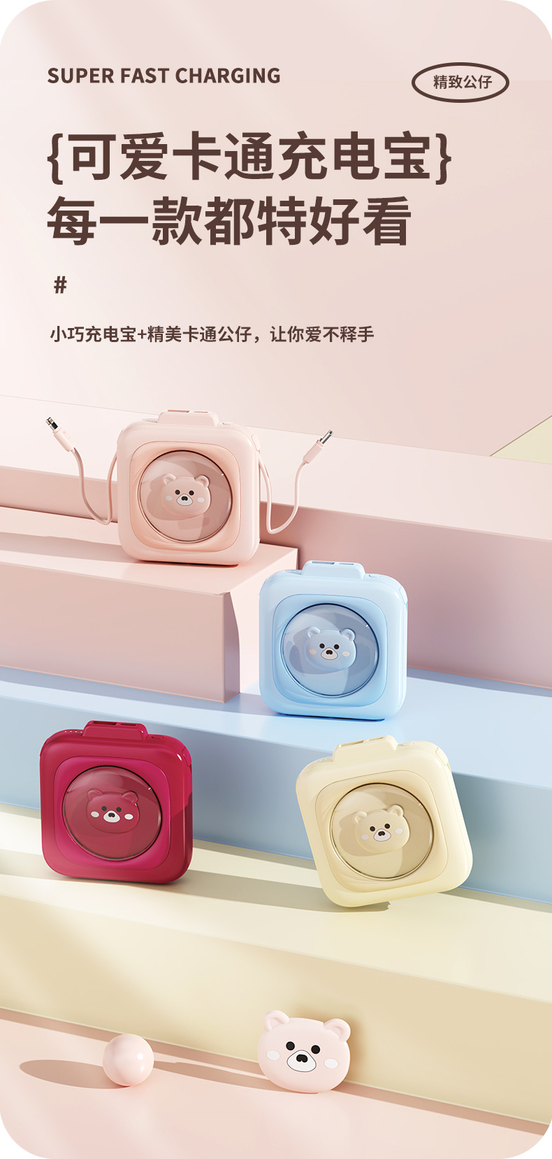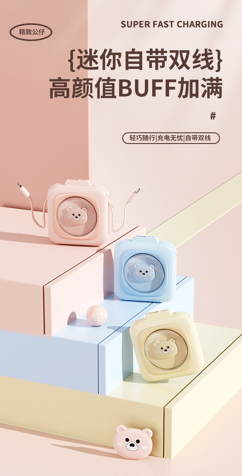 【新国标3C认证!迷你自带双线】新款卡通自带线迷你充电宝20000毫安大容量移动电源礼品。ry