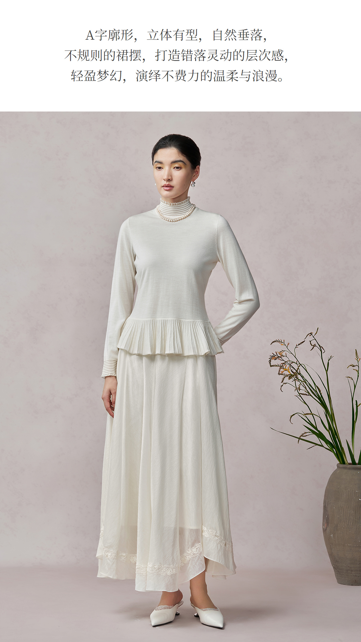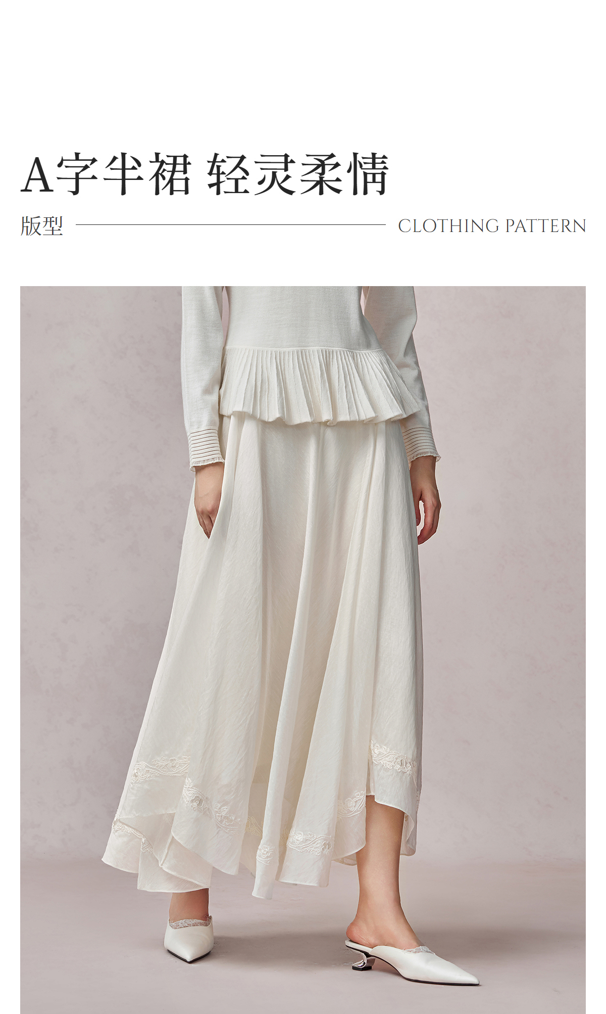【林栖设计小店】绣花半身裙优雅百搭不规则设计宽松2025秋季新款裙子女F1953216