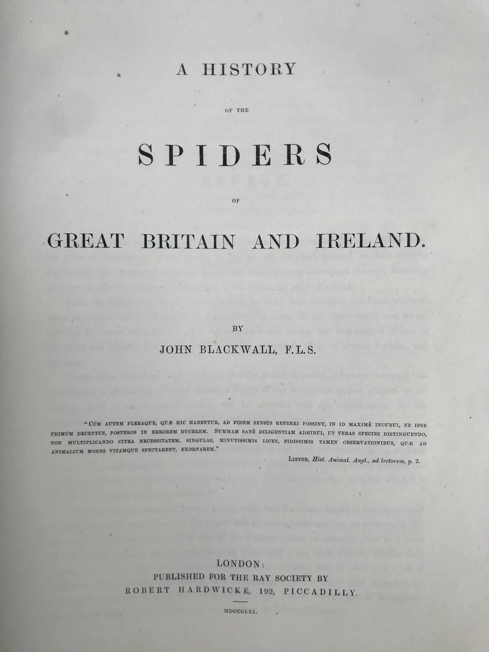 他的主要工作包括了关于不同蜘蛛种类的详细描述,以及这些生物在自然环境中的行为。他的观察和描述为后来的蜘蛛学研究奠定了基础。除了在英国进行研究,Blackwall 也曾对其他地区,比如地中海地区的蜘蛛进行过研究。