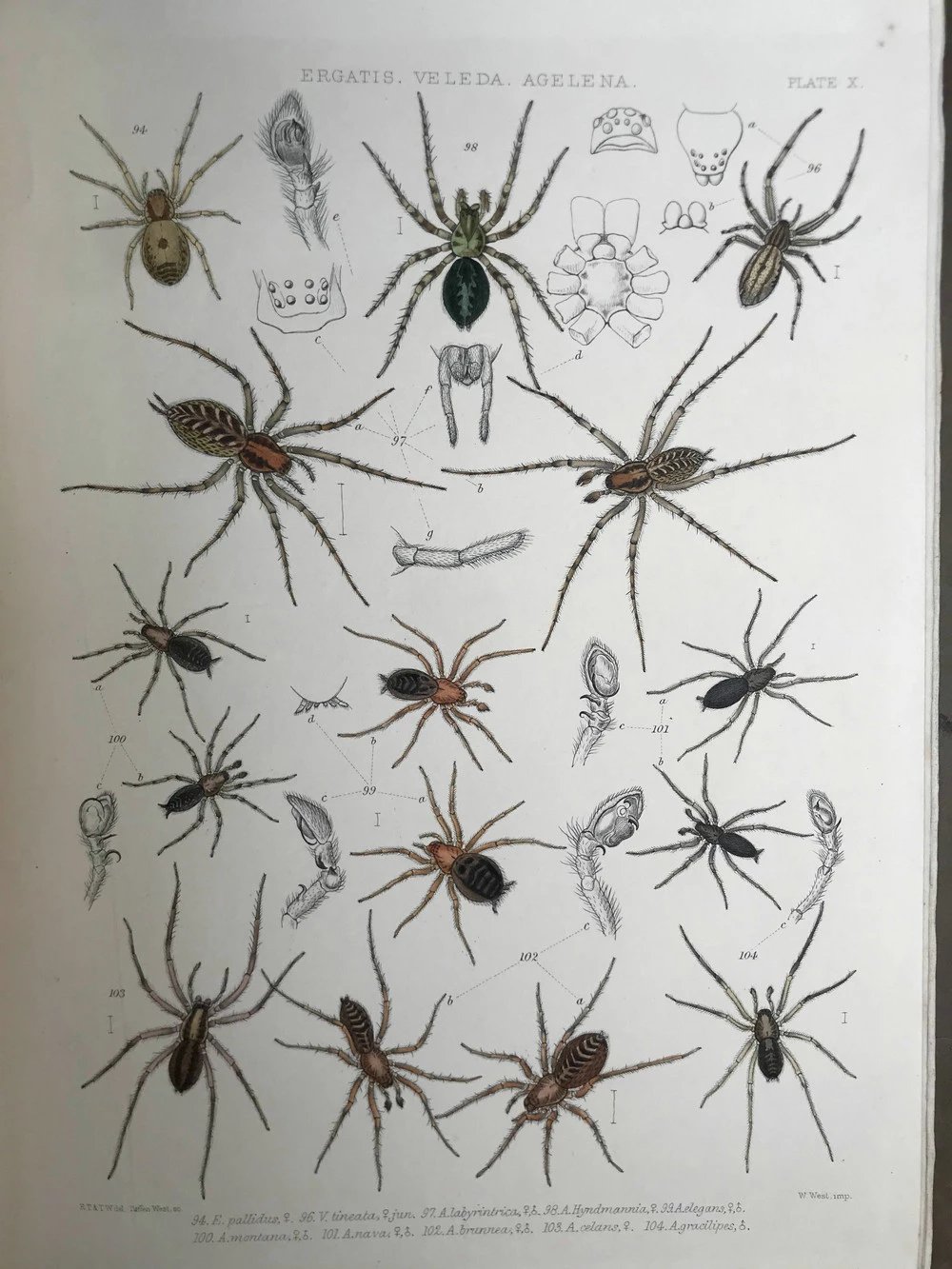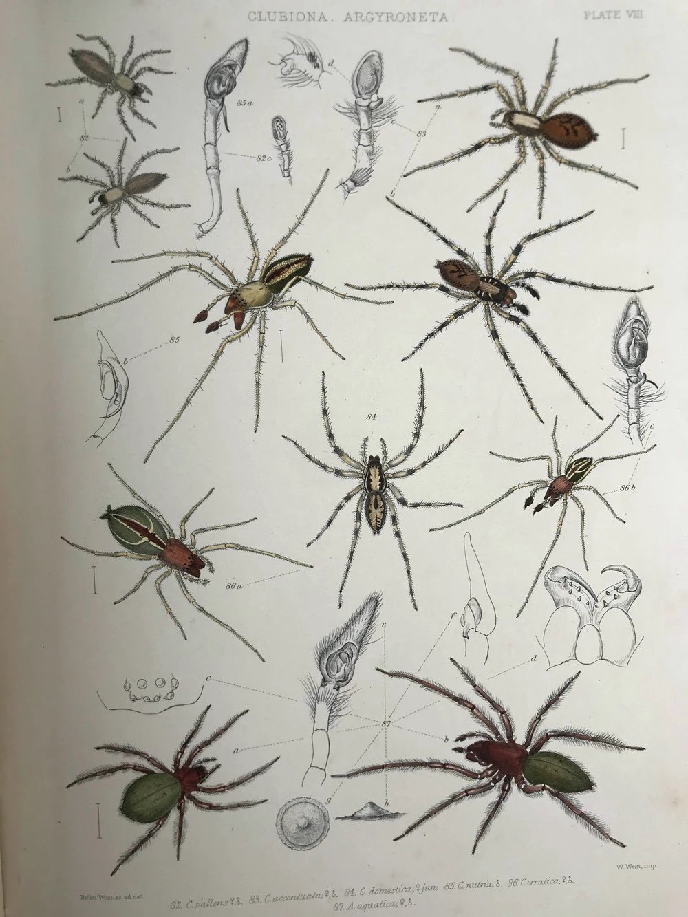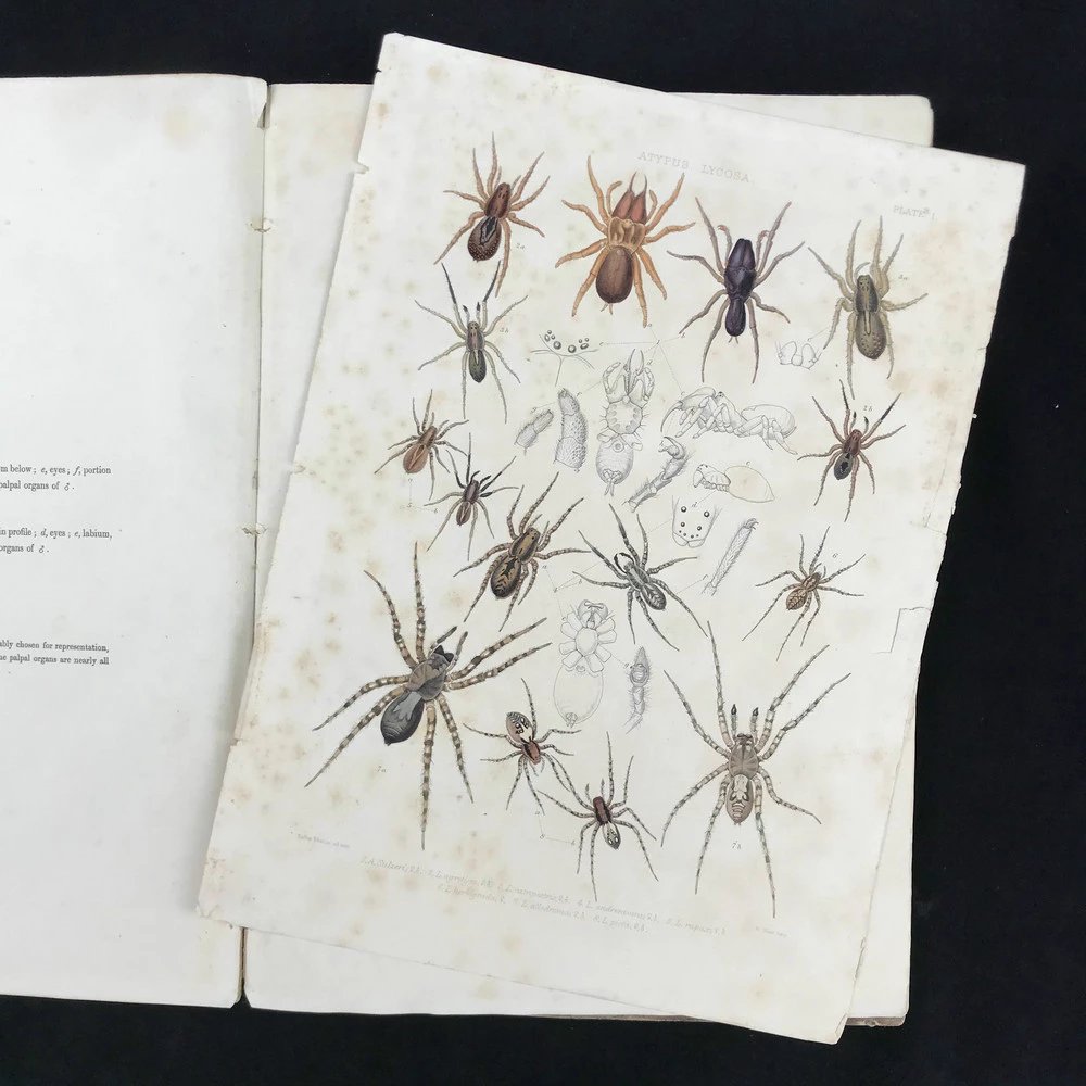 1861-1864年 大不列颠与爱尔兰蜘蛛史(全2卷) 29页手工上色版画插图 平装8开