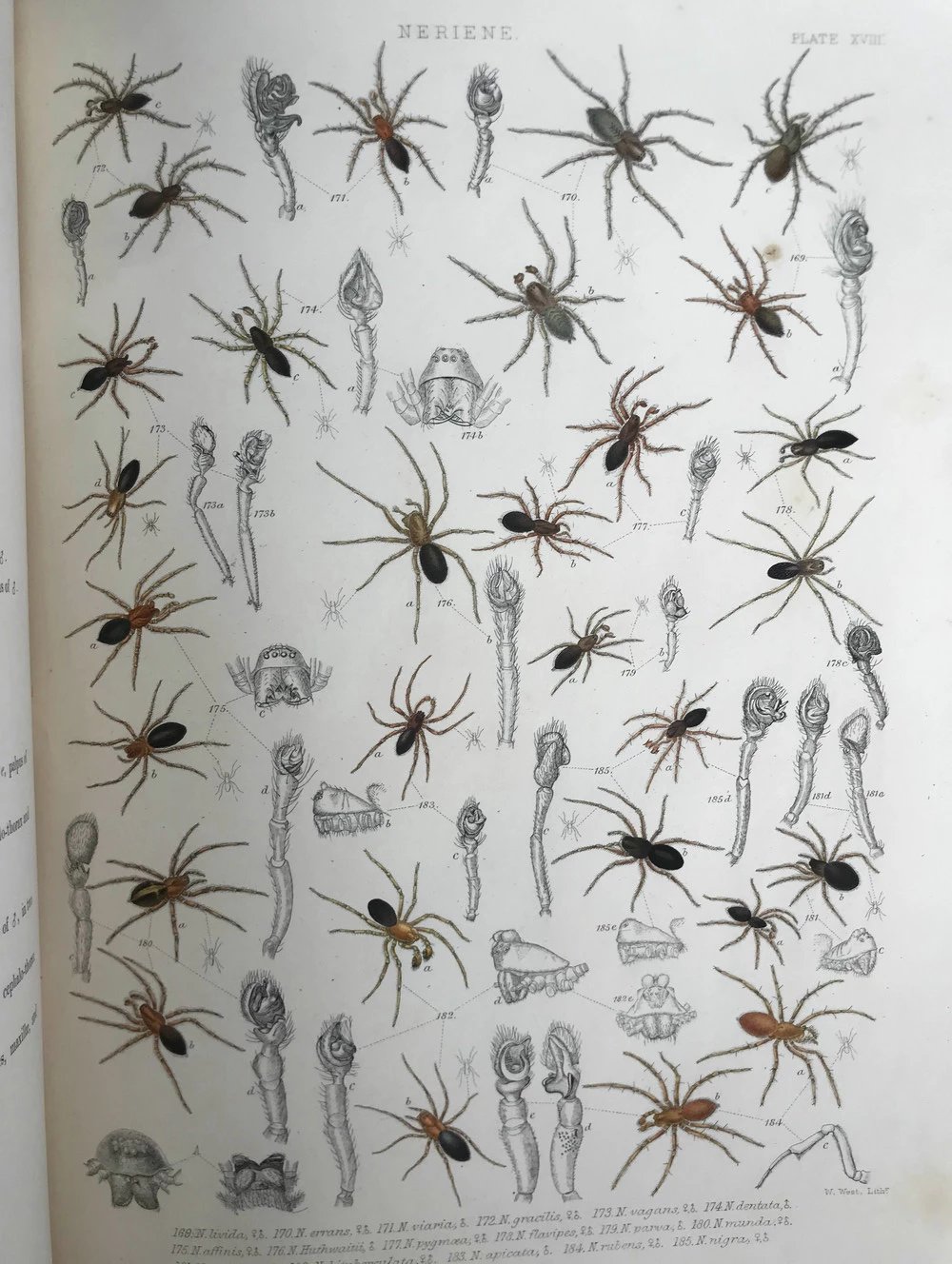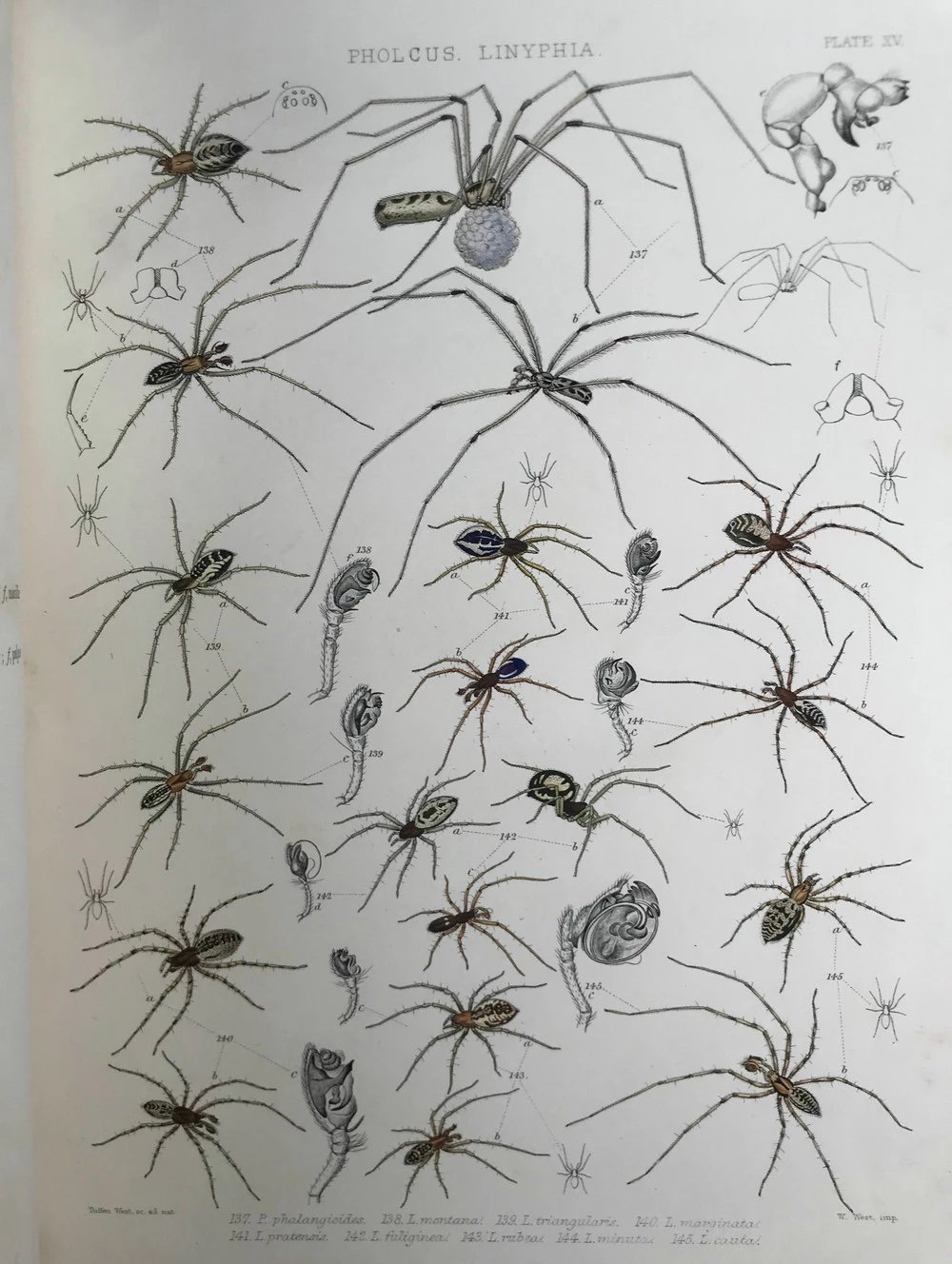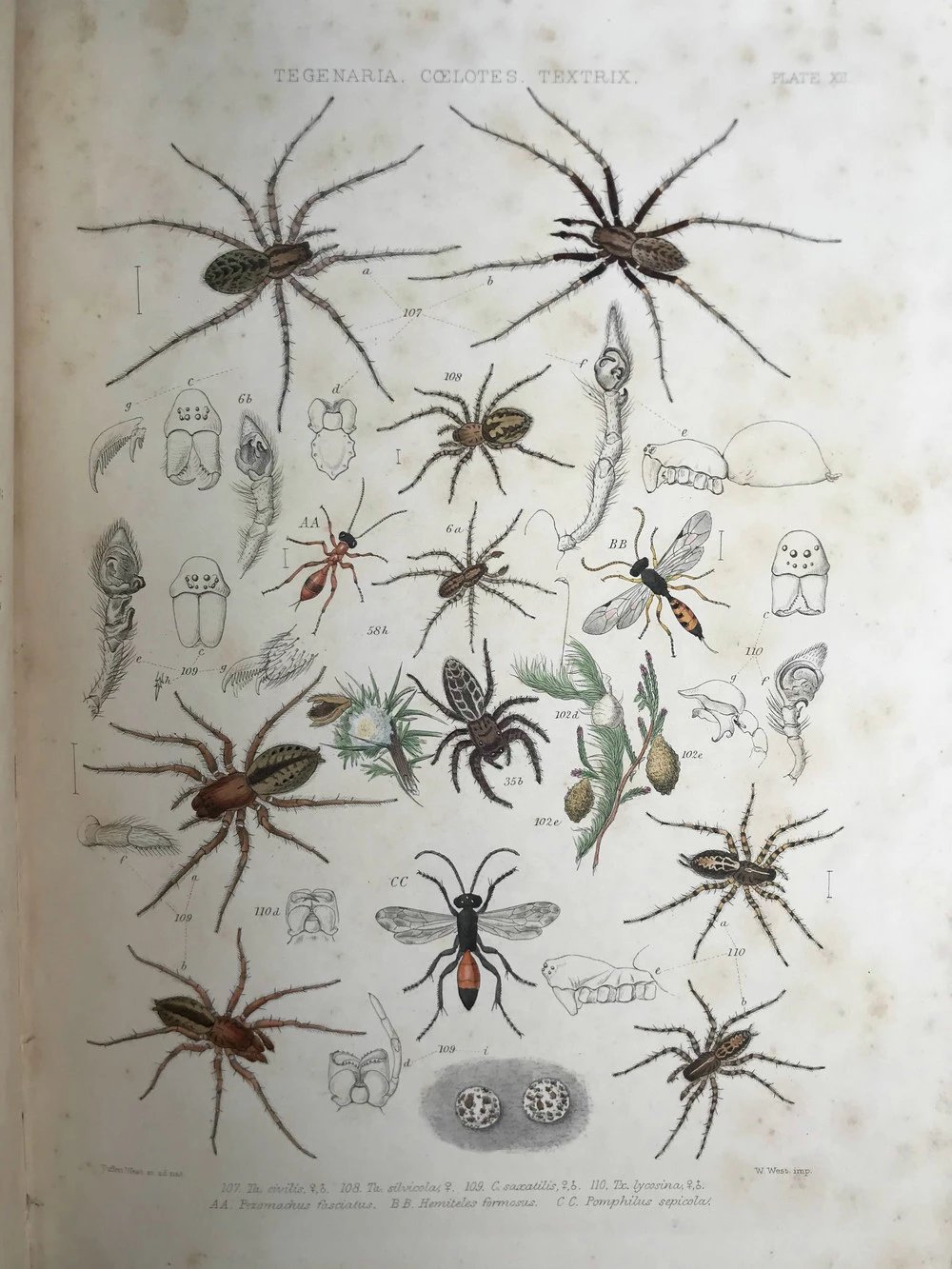 1861-1864年 大不列颠与爱尔兰蜘蛛史(全2卷) 29页手工上色版画插图 平装8开