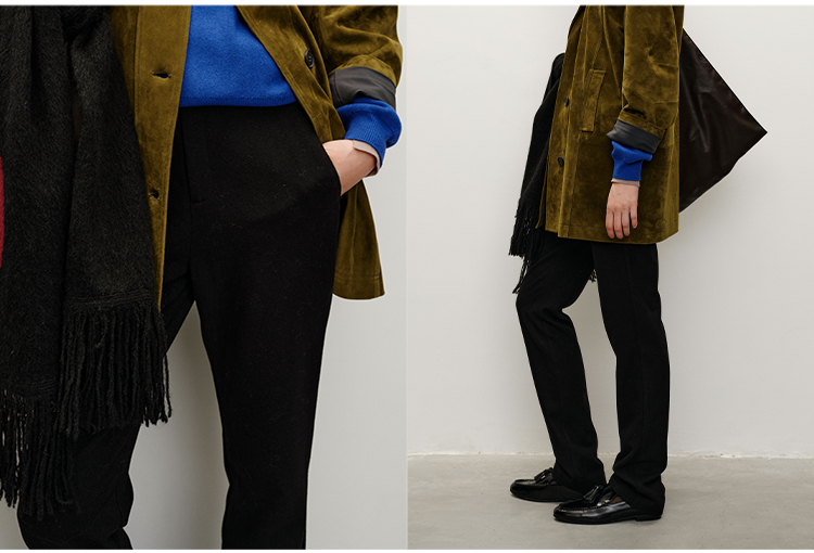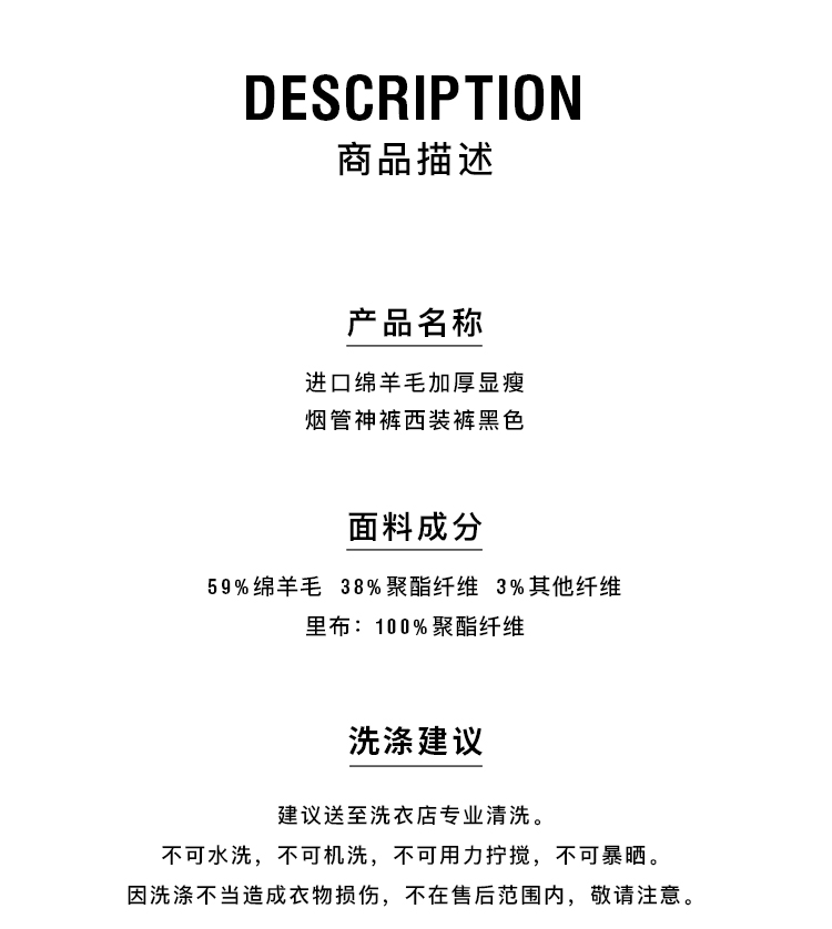 HIDEMI 进口绵羊毛加厚显瘦烟管神裤西装裤 黑色