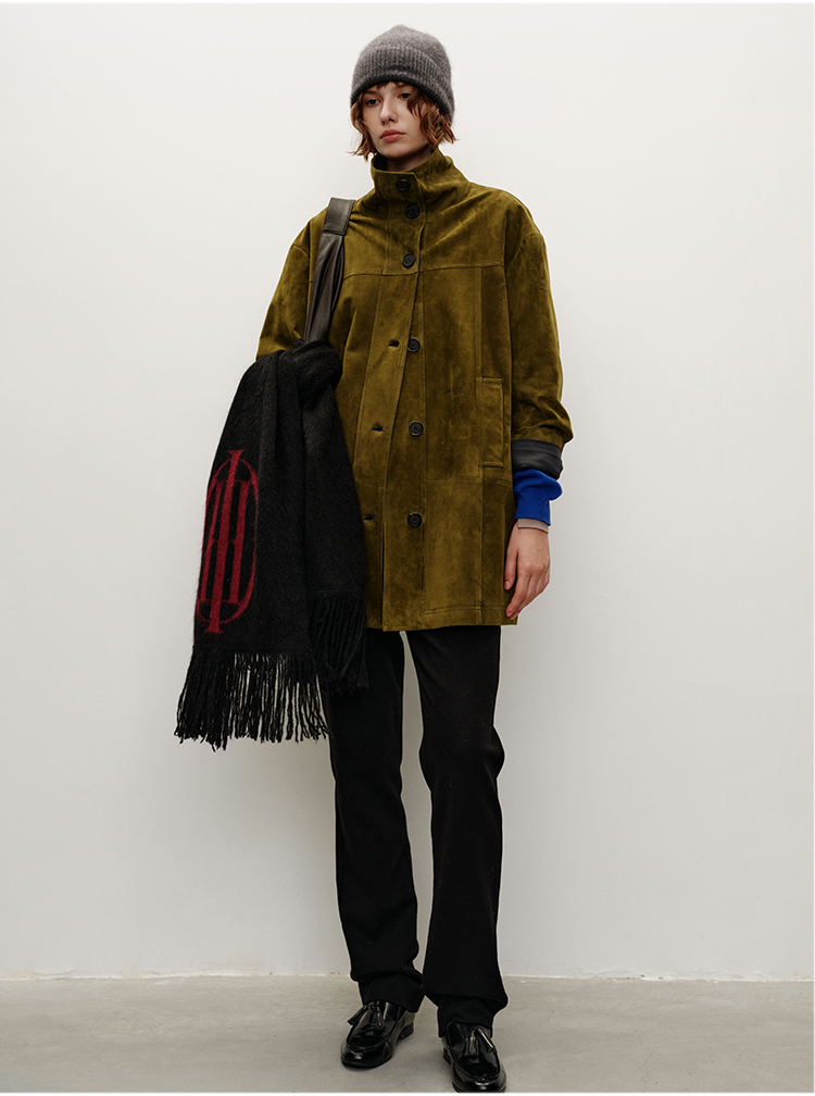 HIDEMI廓形一粒扣圈圈羊毛短款大衣/外套