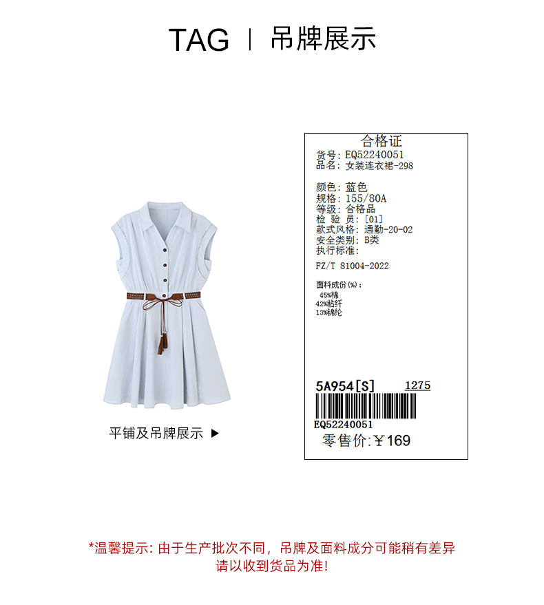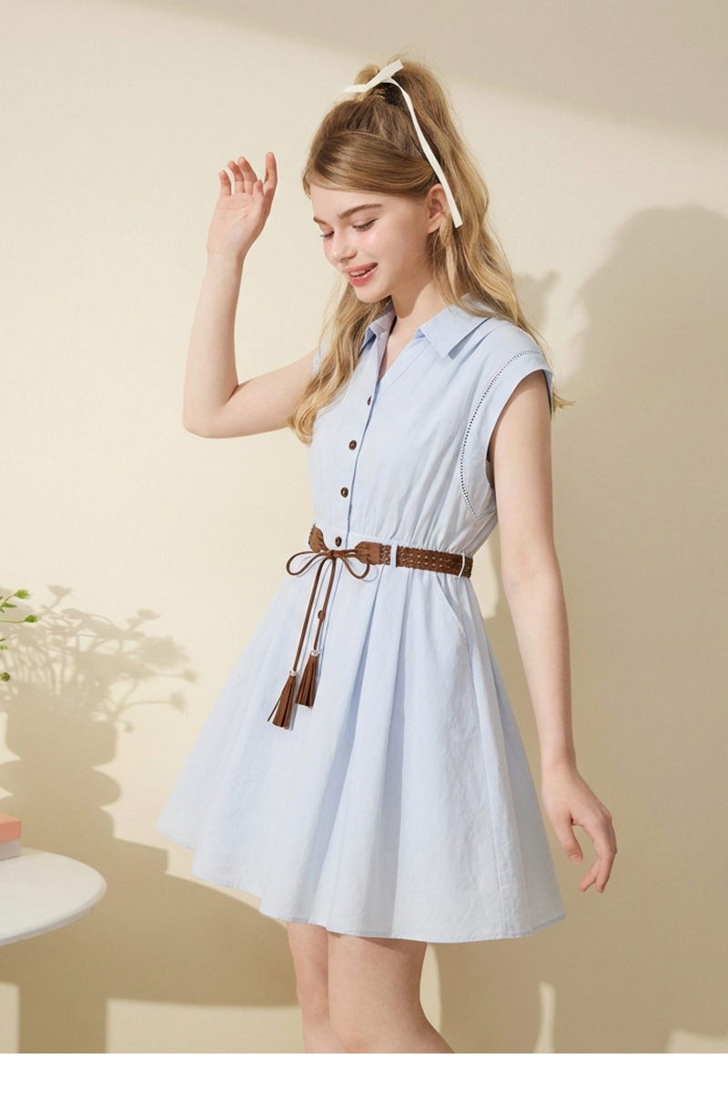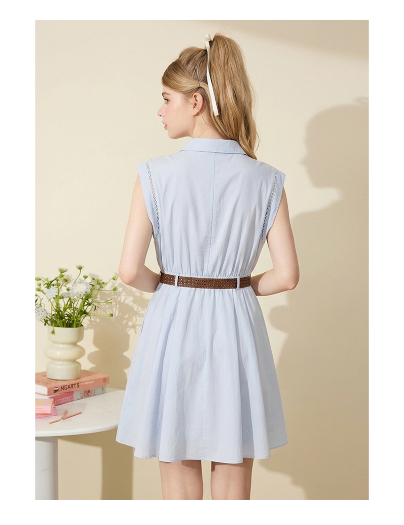女装翻领开扣配民族风腰带无袖连衣裙-298Q5224005