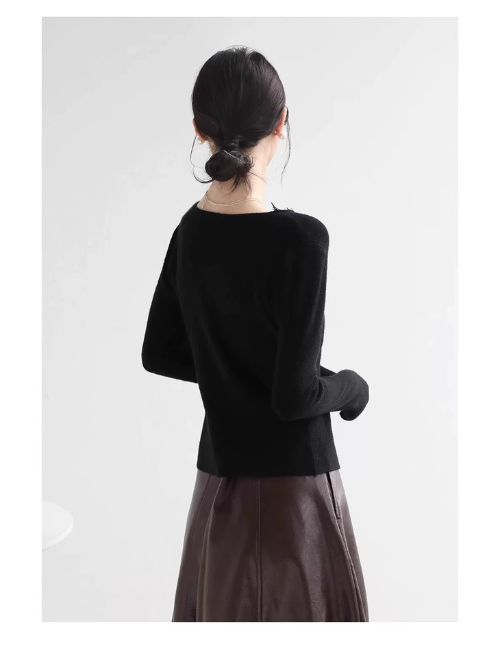 袖子包裹性好 显手臂纤细袖长 胸前顺色扣装饰 泛着盈盈光泽更显精致 不规则下摆凸显腰身的同时 延伸视觉 把腰腿比例修饰得纤长 打造大长腿小蛮腰效果 版型简约易搭 能够消化各种下半身搭配