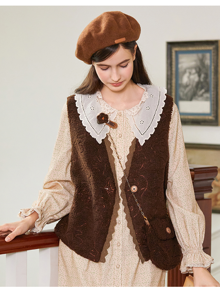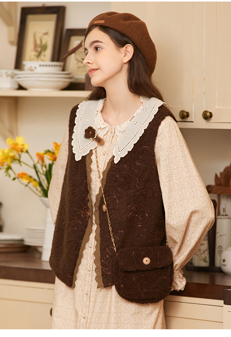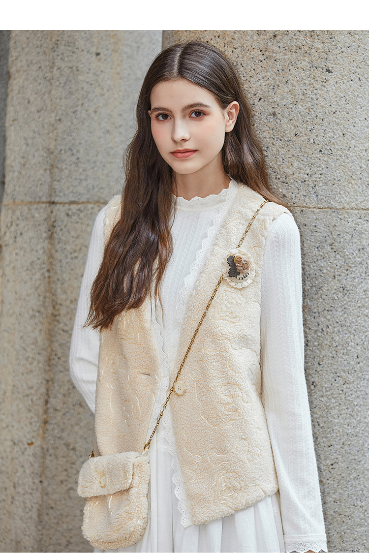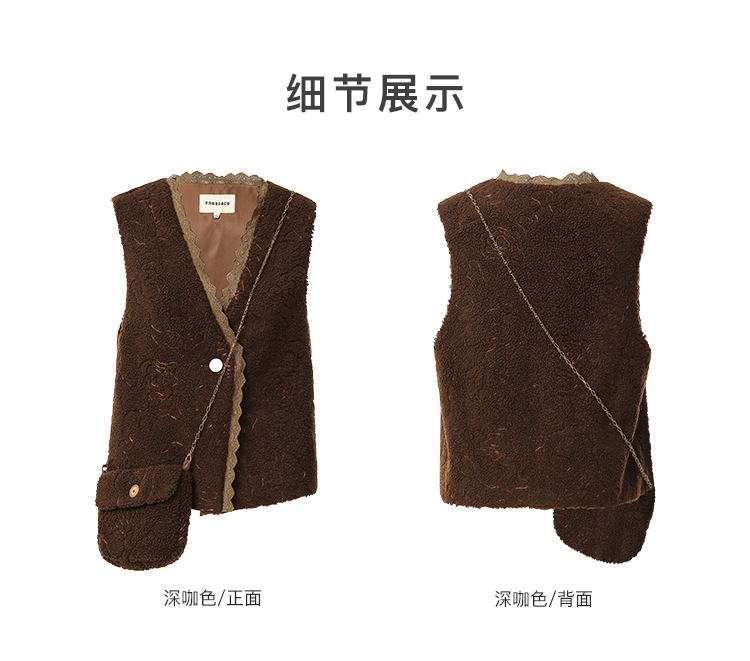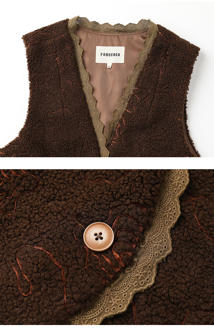 Famecoco范可儿复古V领保暖马夹坎肩女秋冬FAB8CA027