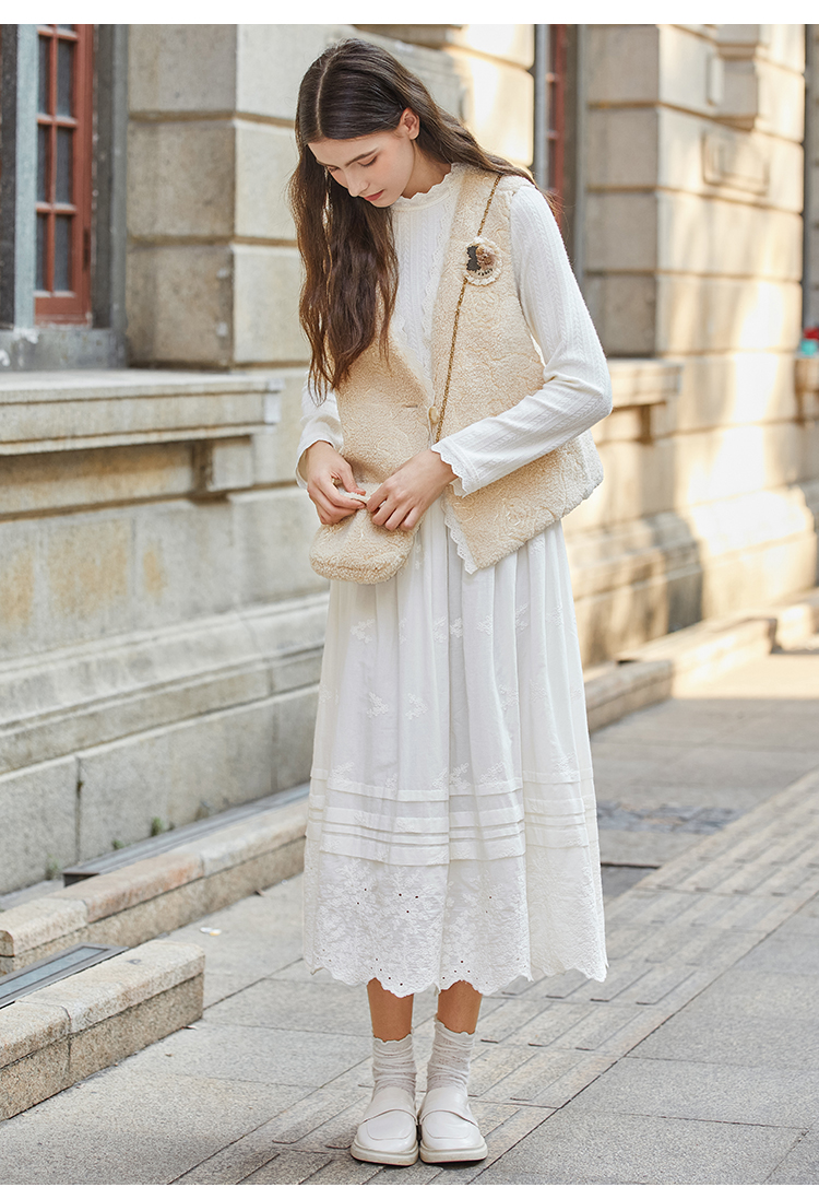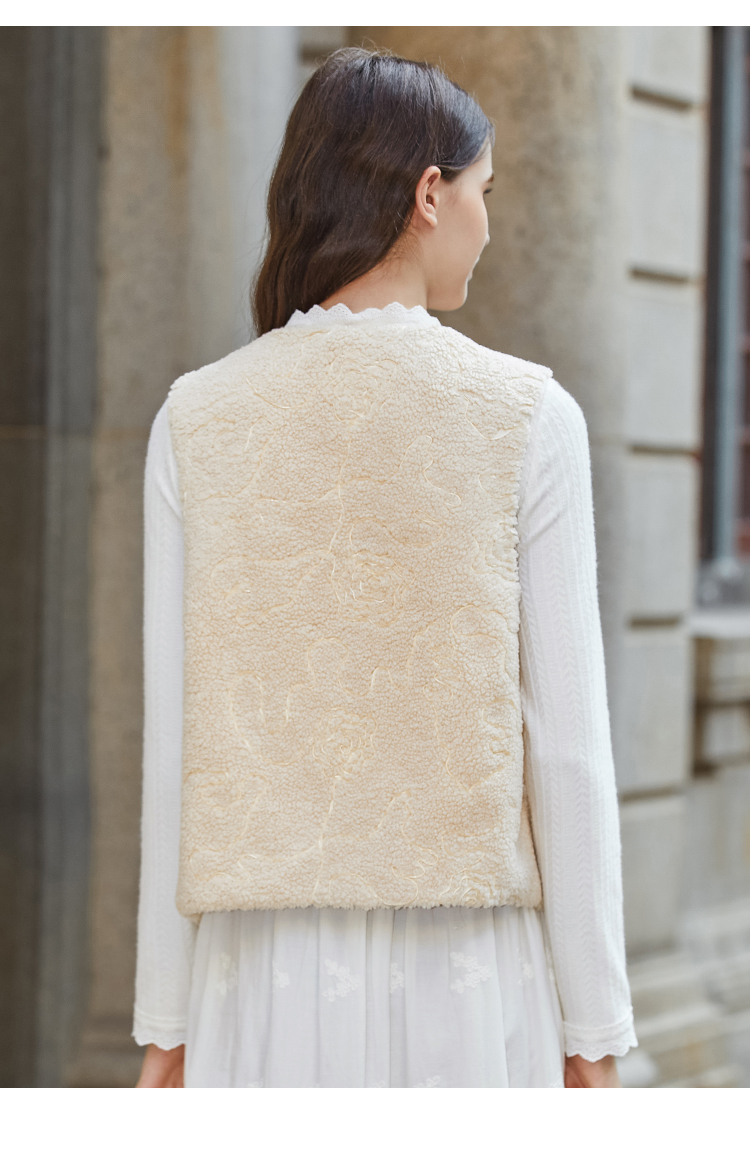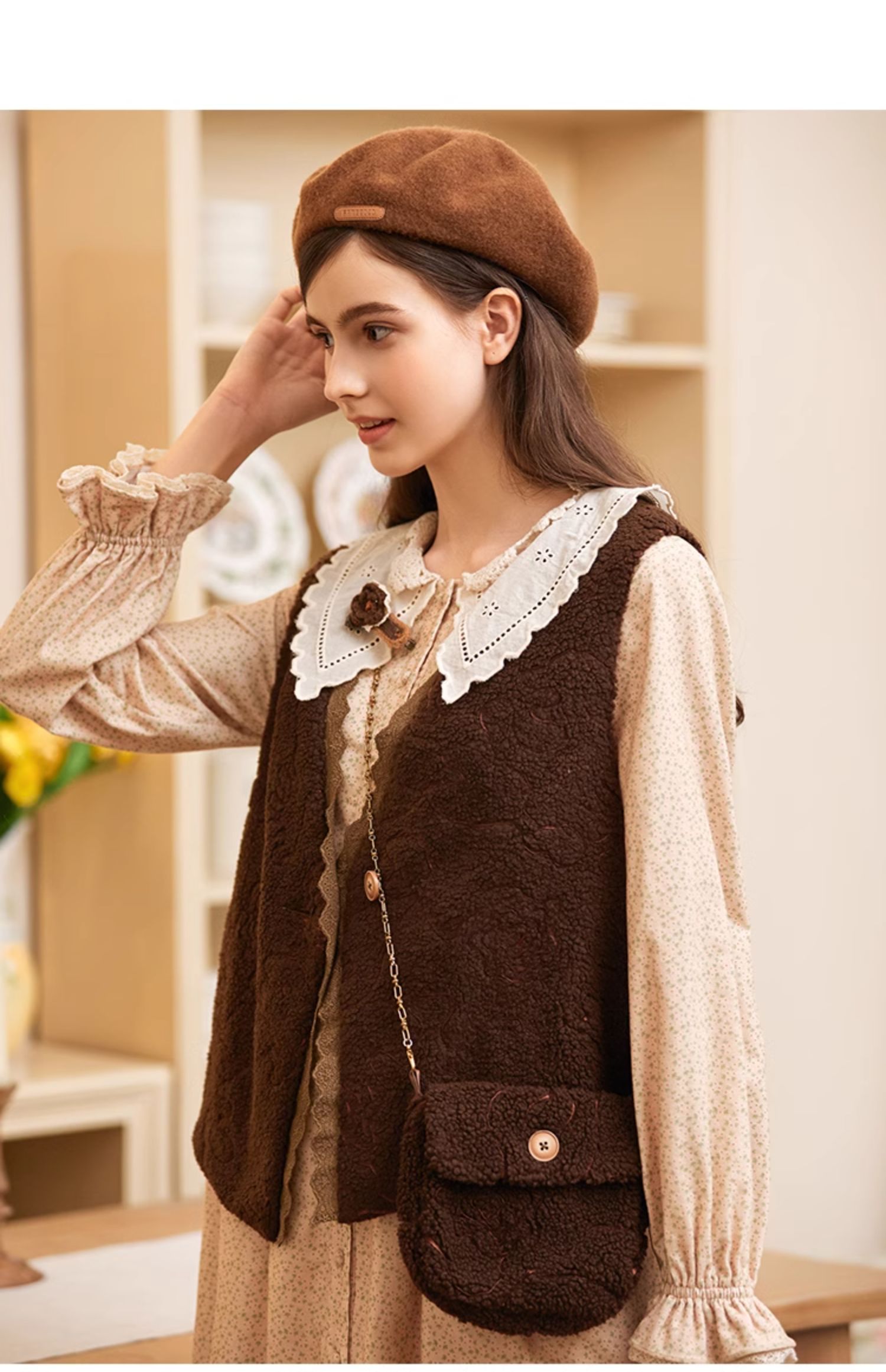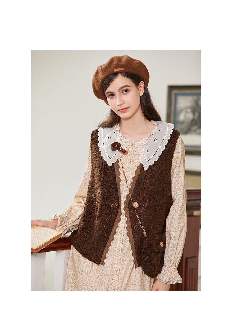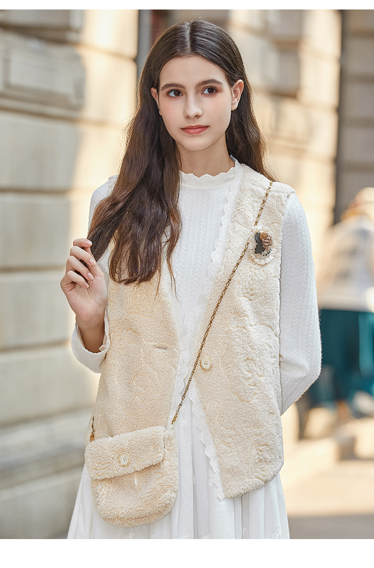 Famecoco范可儿复古V领保暖马夹坎肩女秋冬FAB8CA027