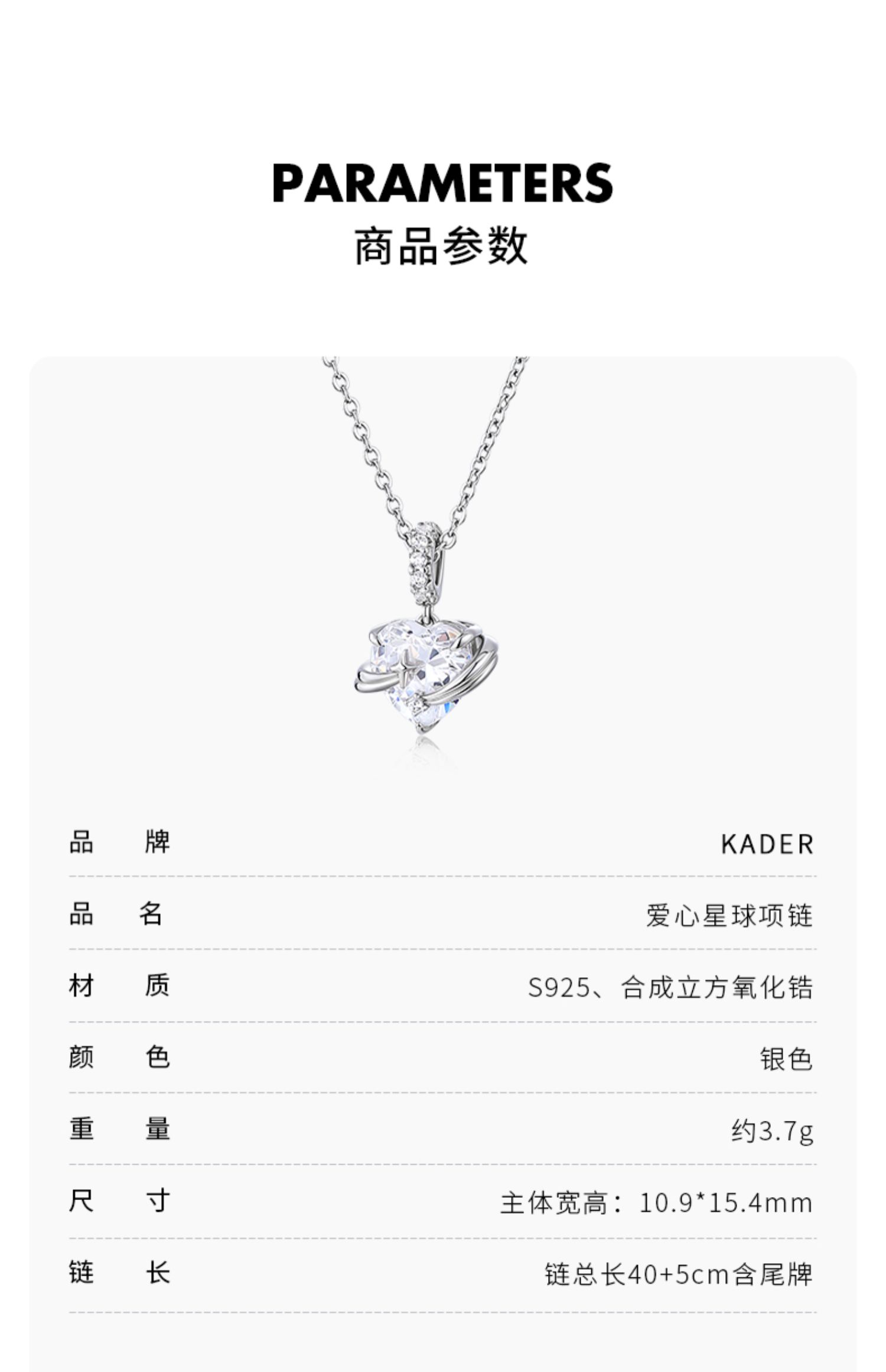卡蒂罗爱心星球项链女款纯银轻奢小众锁骨链首饰品生日礼物送女友