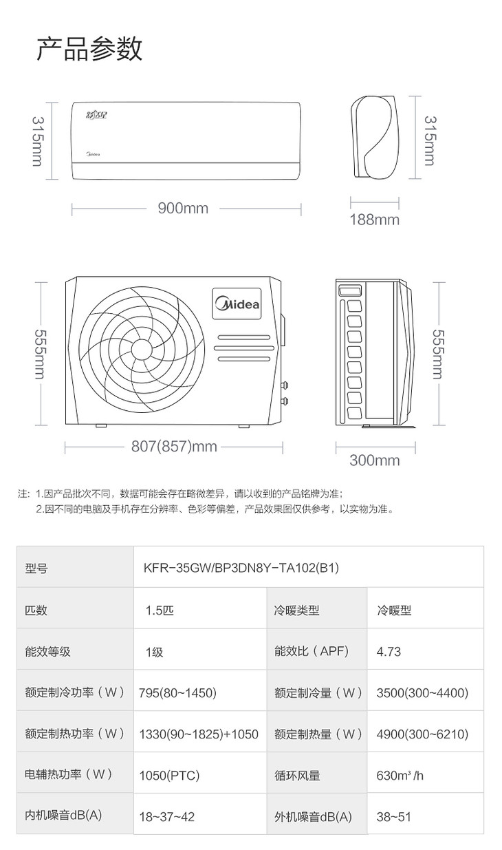 美的(Midea)一级能效 1.5匹变频 静音节能 家用 挂机空调 KFR-35GW/BP3DN8Y-TA102(B1)(大1.5匹)