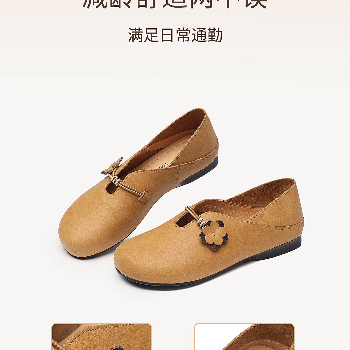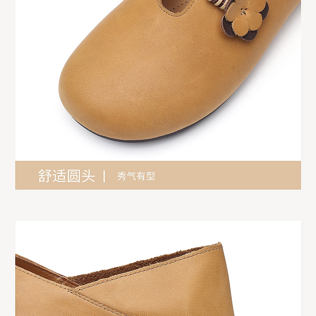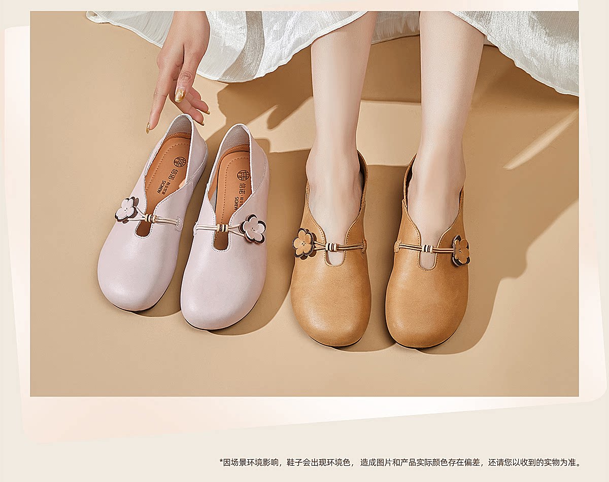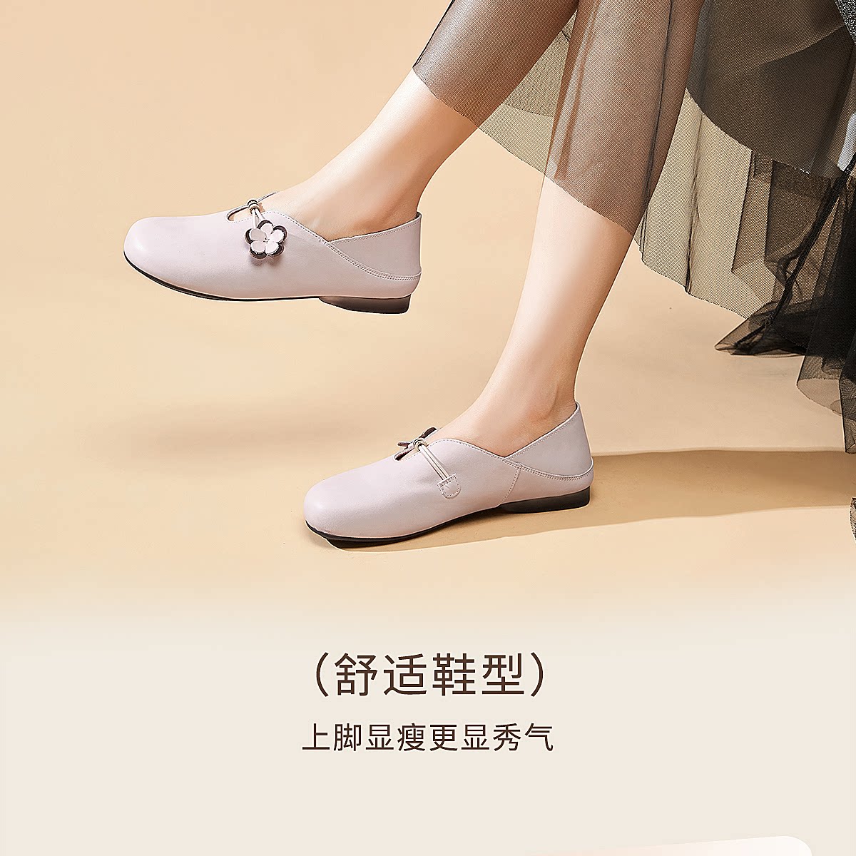 复古风花朵装饰平底单鞋女真皮软底舒适奶奶鞋休闲鞋X6C150-33