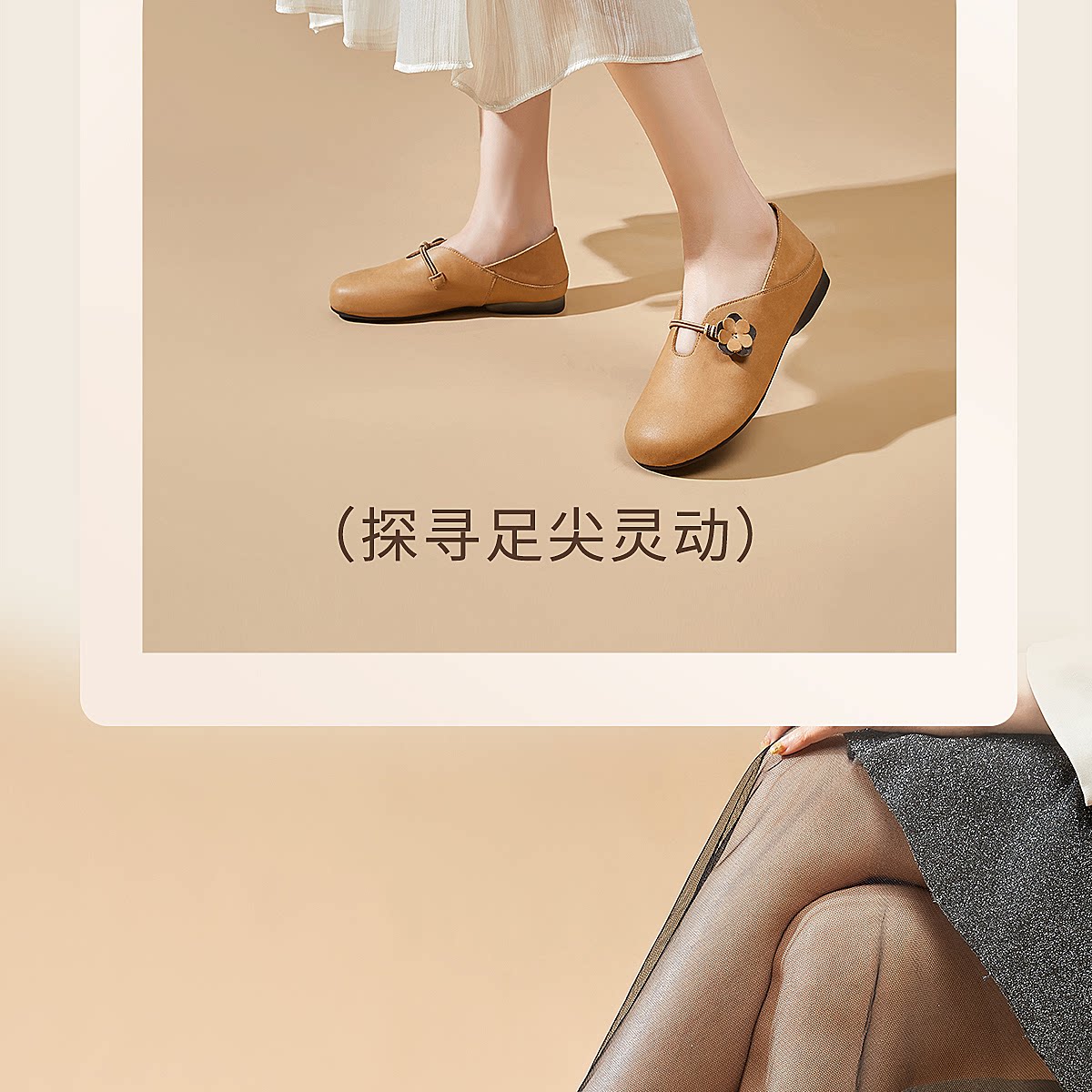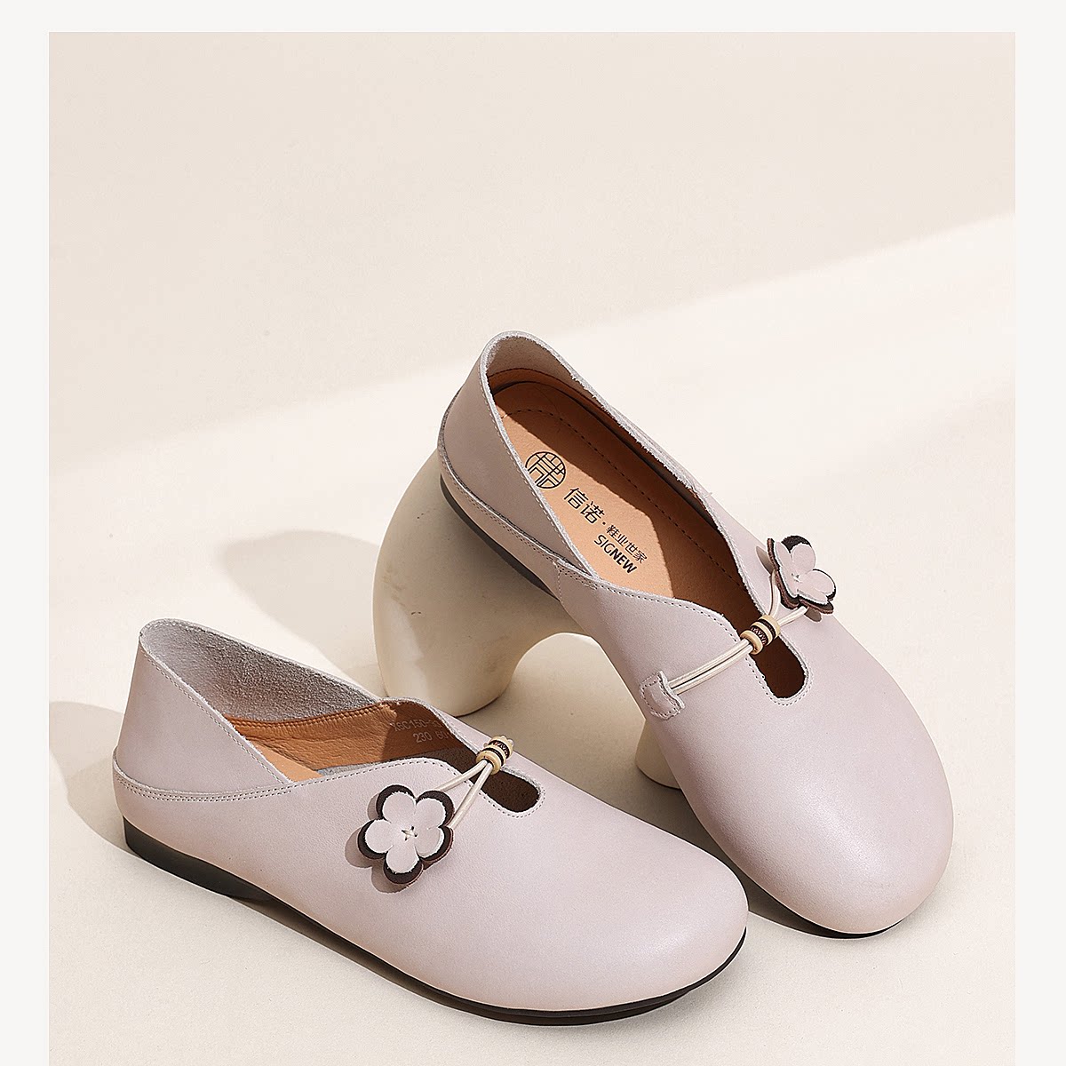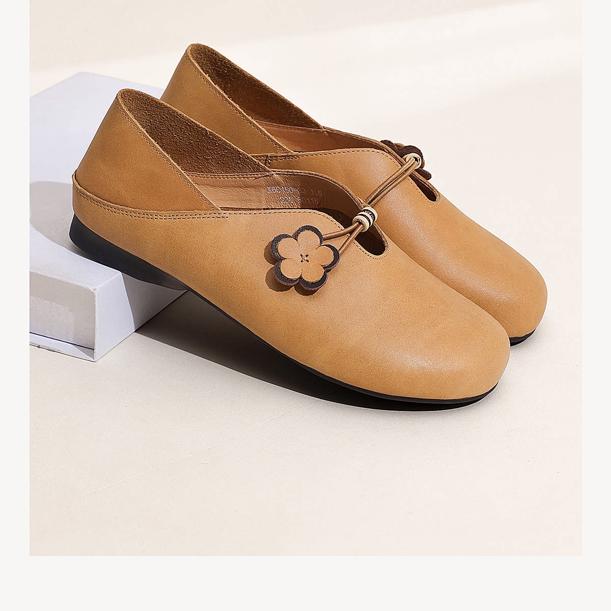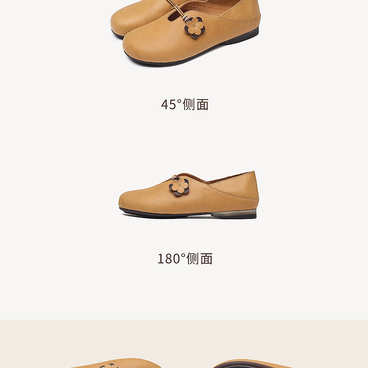 复古风花朵装饰平底单鞋女真皮软底舒适奶奶鞋休闲鞋X6C150-33