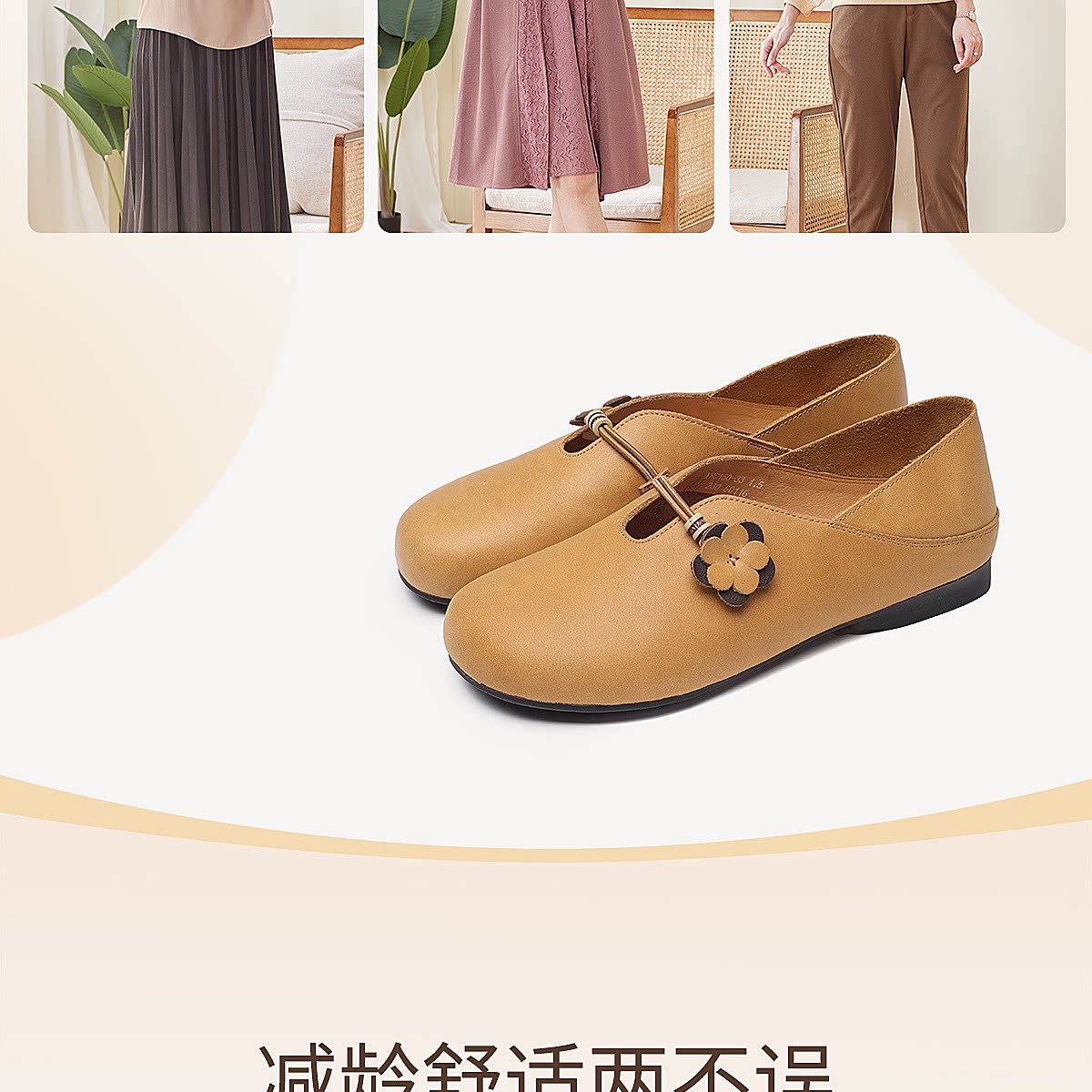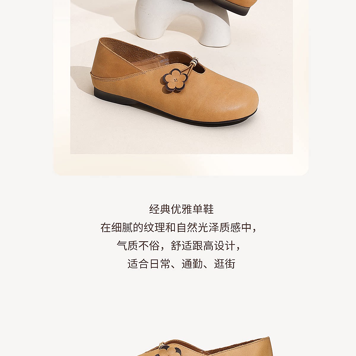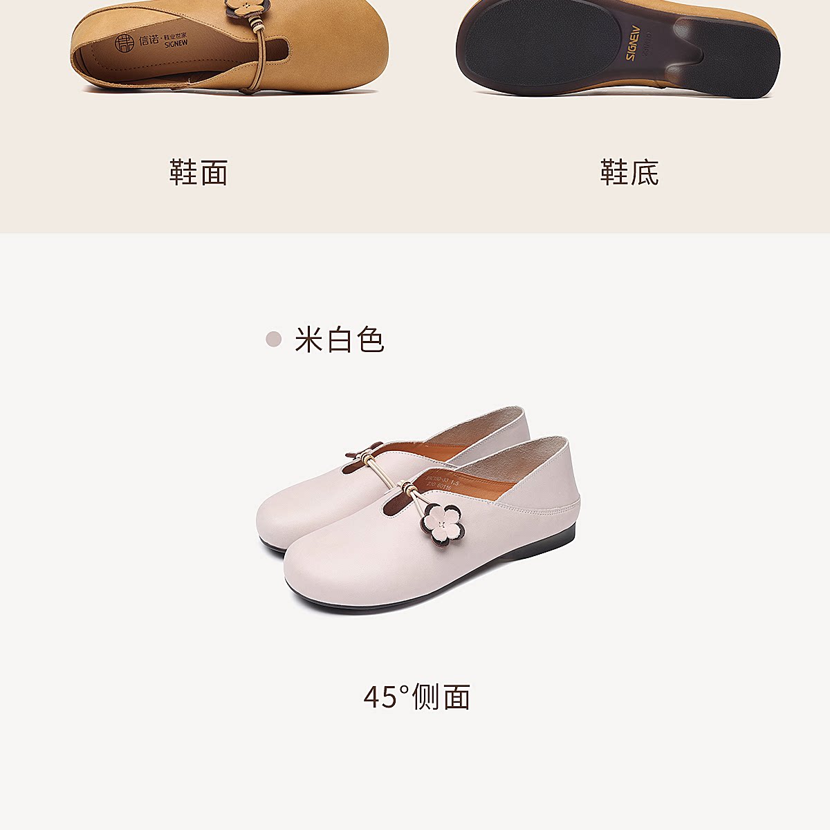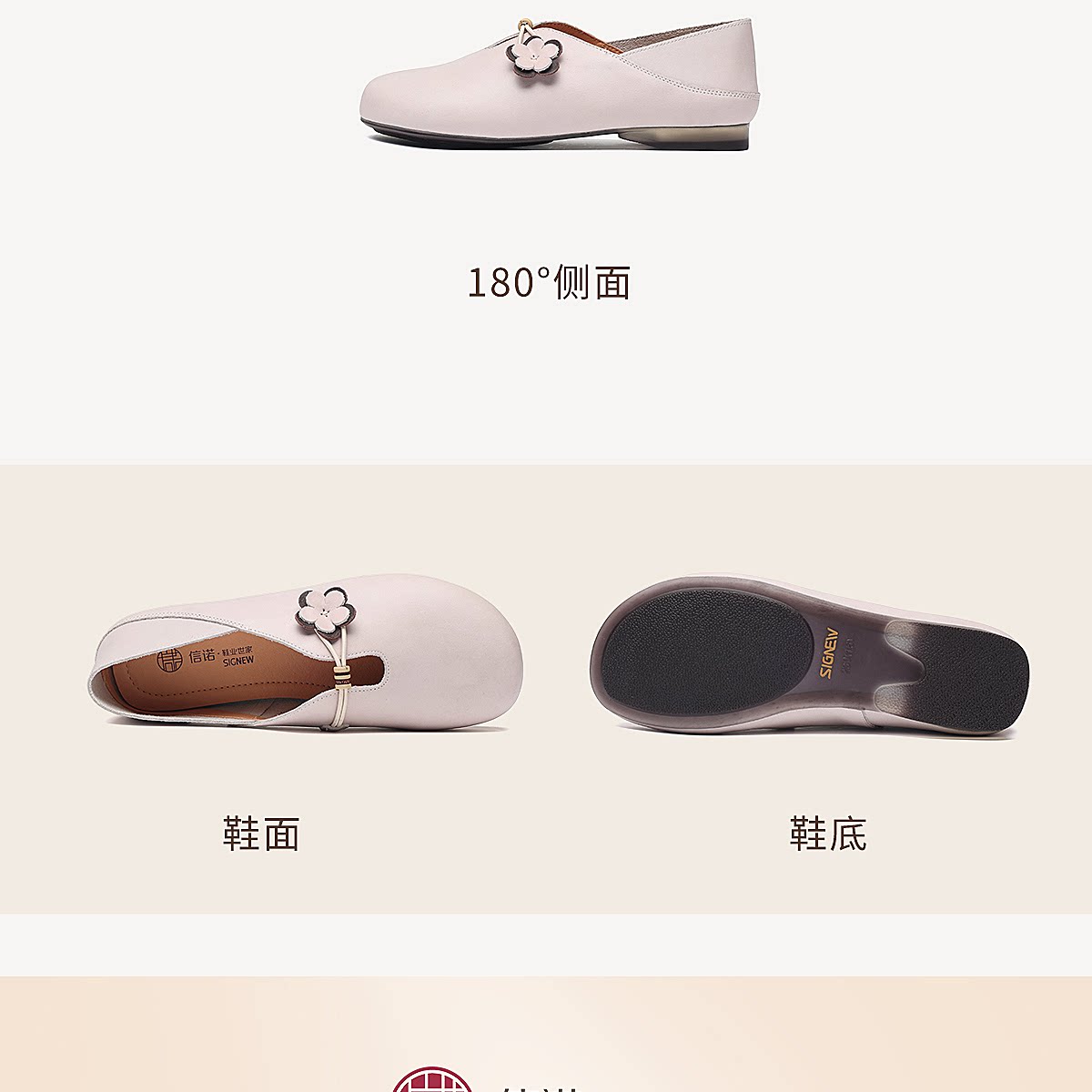 复古风花朵装饰平底单鞋女真皮软底舒适奶奶鞋休闲鞋X6C150-33