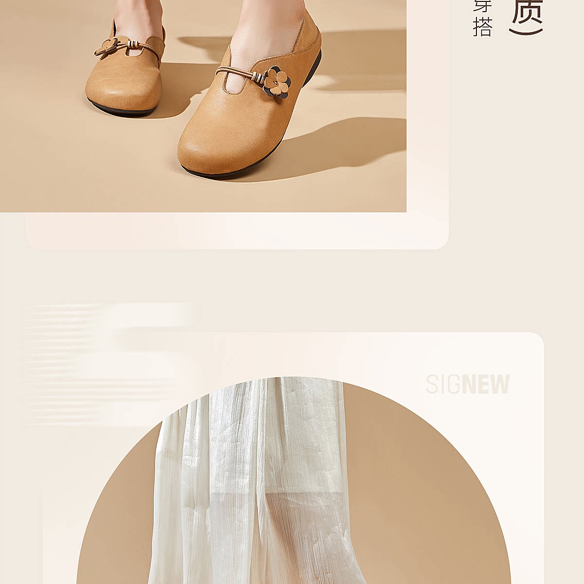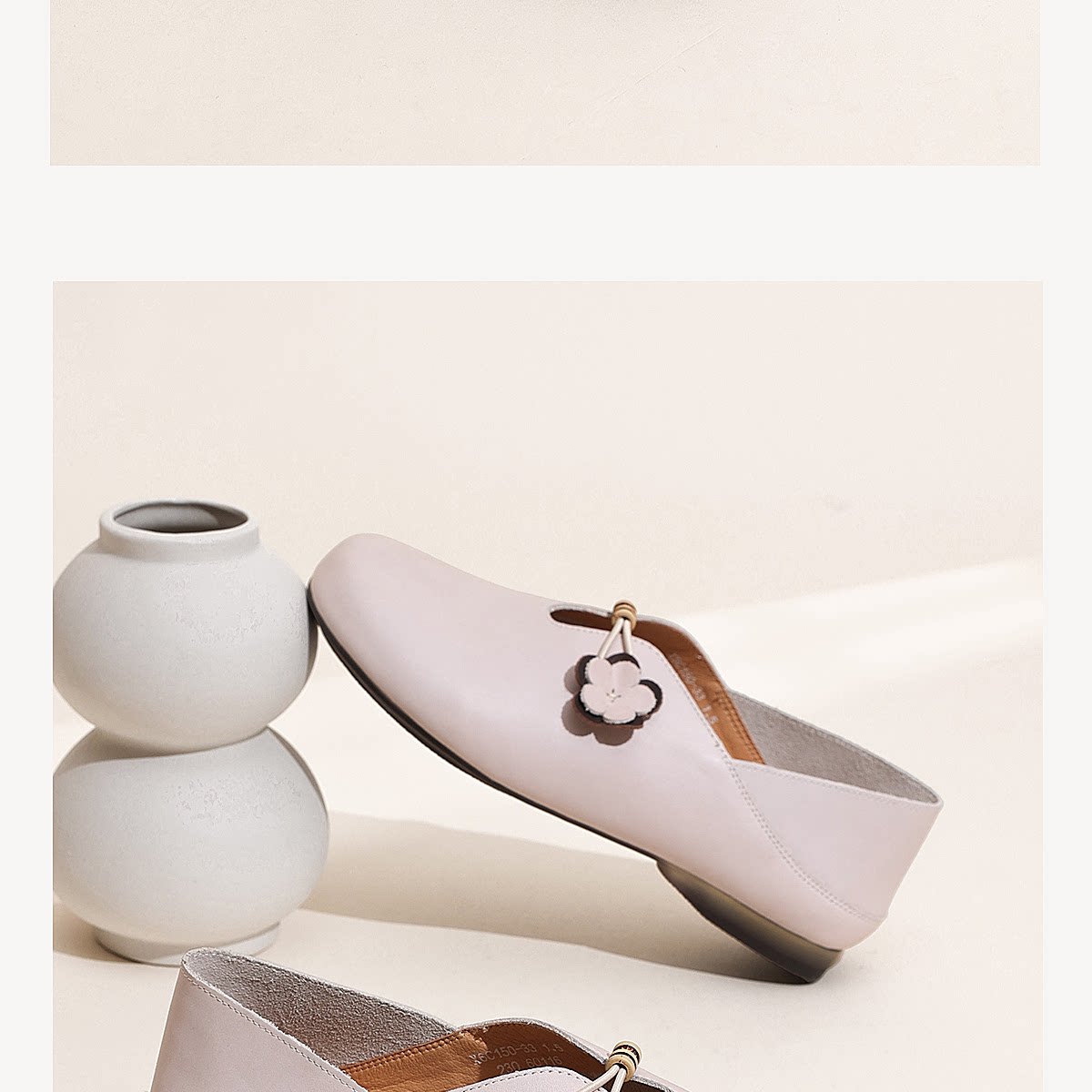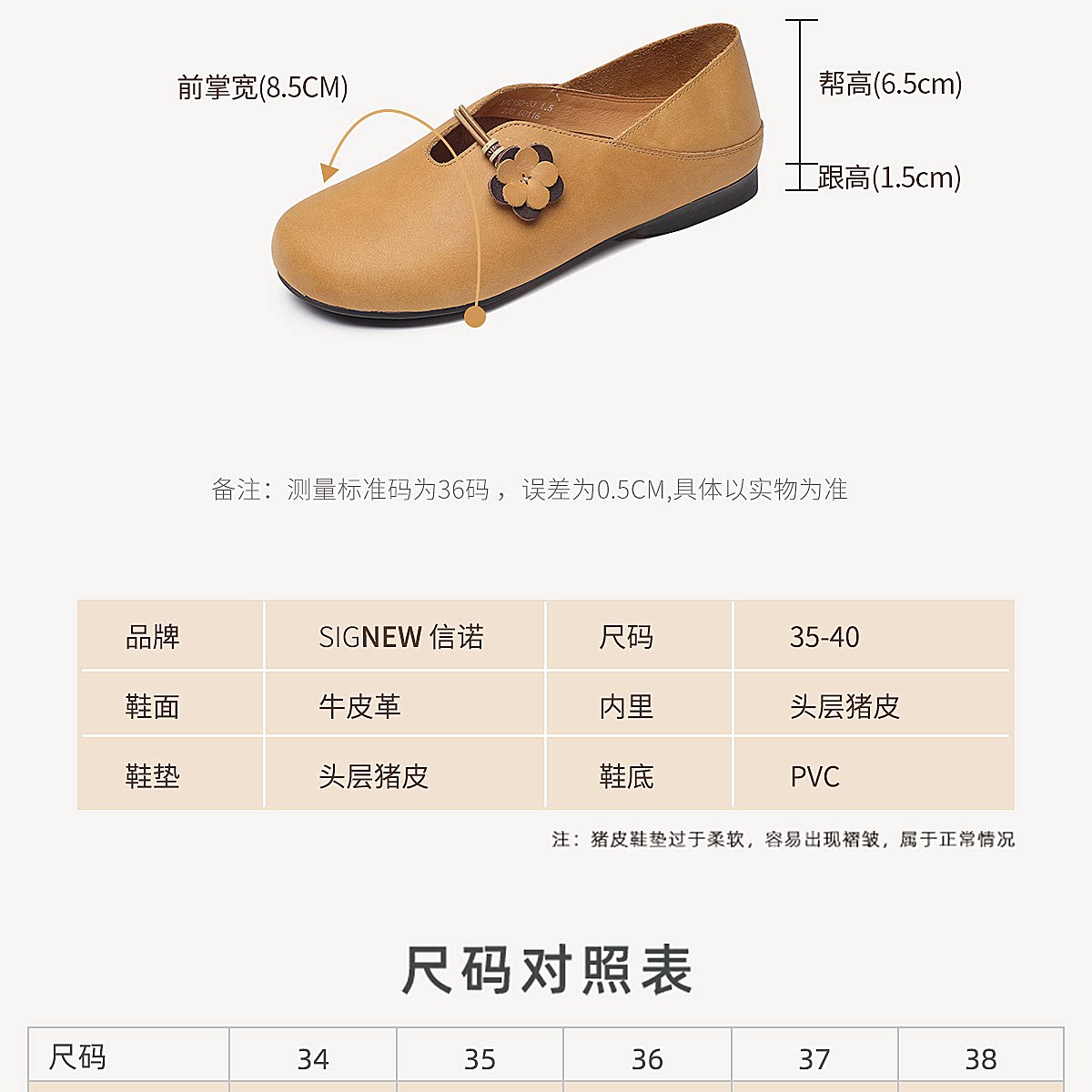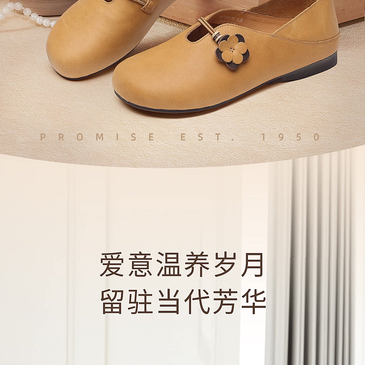 复古风花朵装饰平底单鞋女真皮软底舒适奶奶鞋休闲鞋X6C150-33