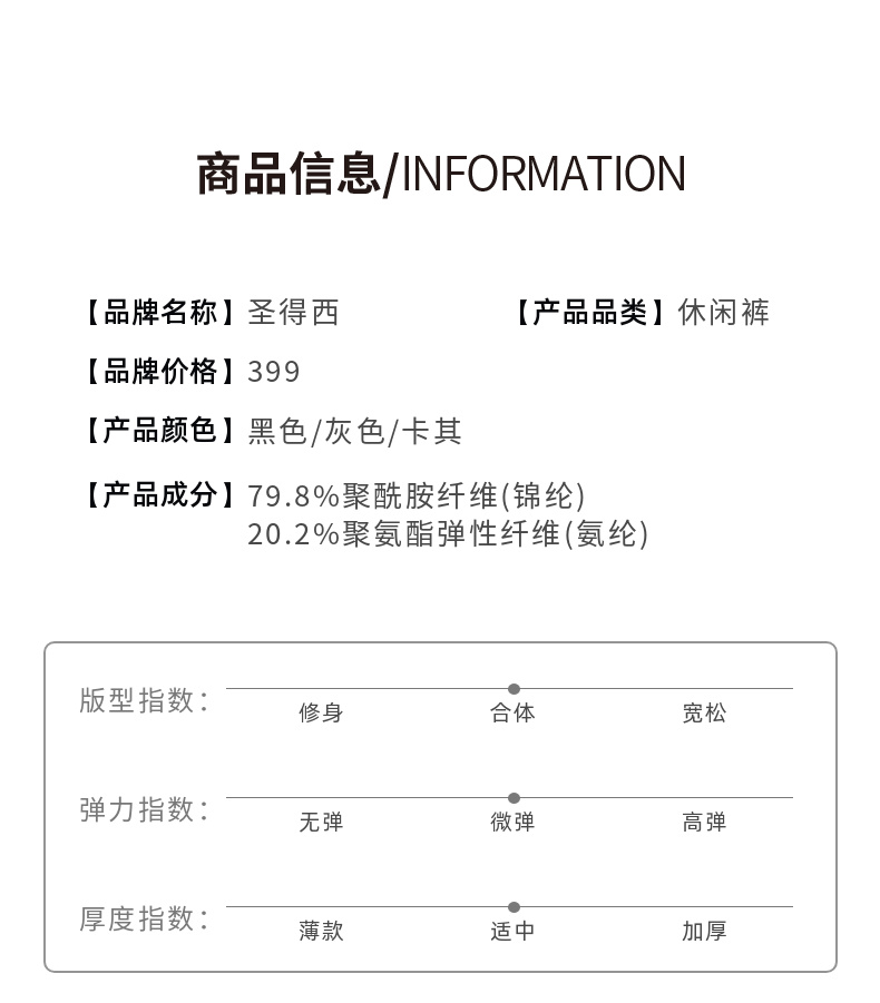 圣得西男士休闲裤2022年秋季新款时尚中青年棉质弹力直筒长裤男潮2252913037A