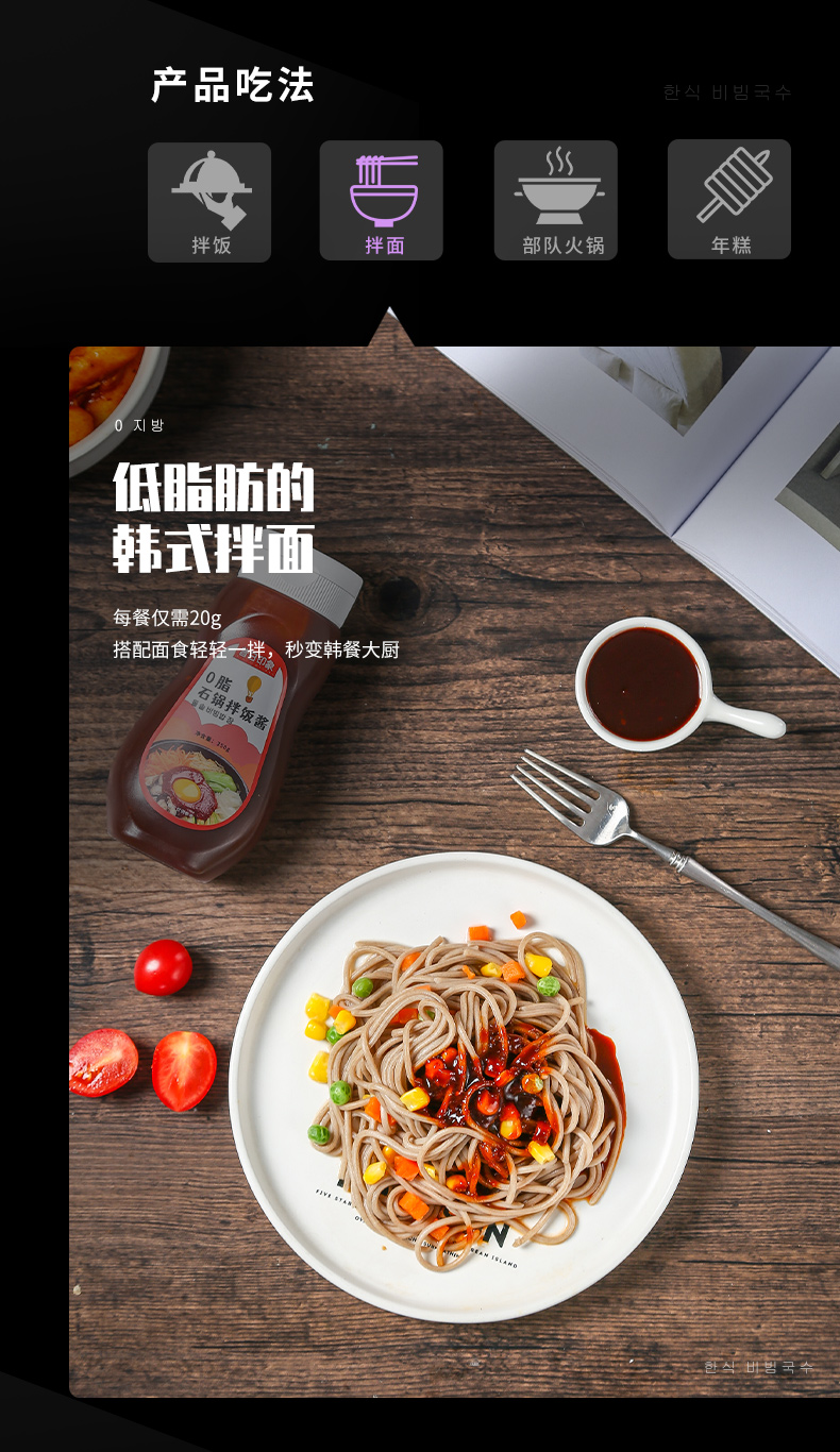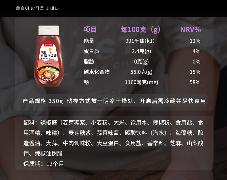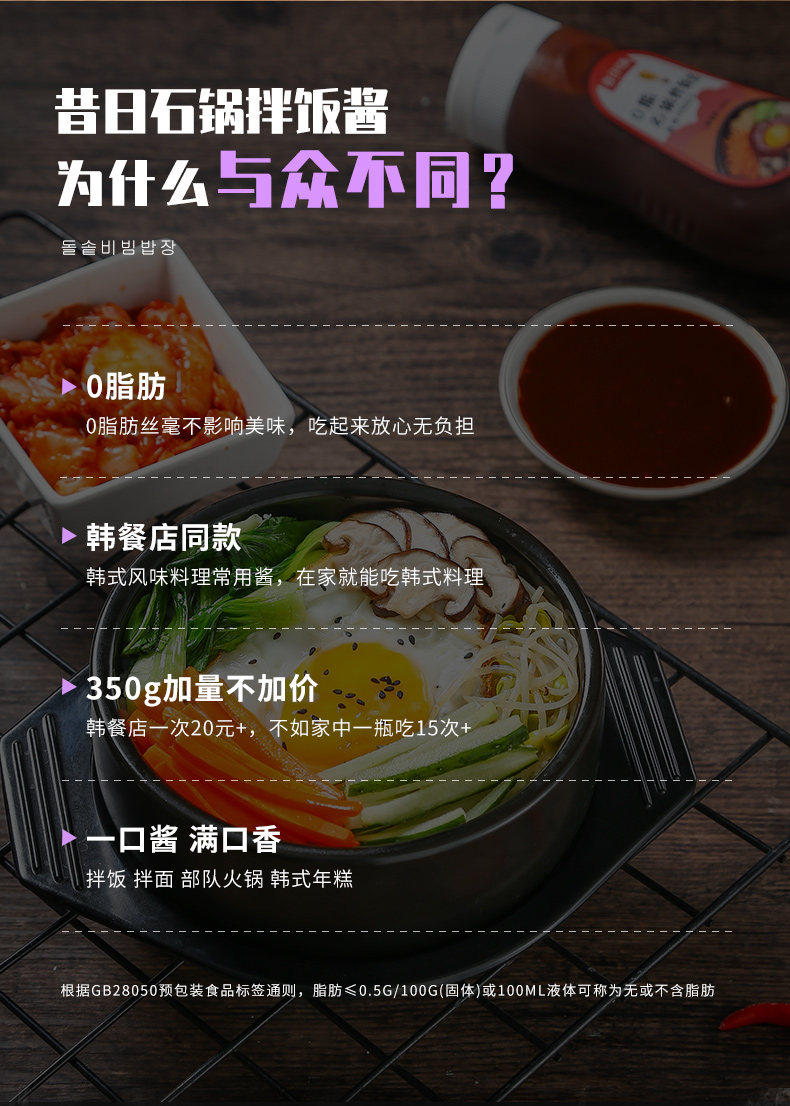 韩式石锅拌饭酱0脂肪低脂韩国专用辣酱甜正宗辣椒旗舰店酱料