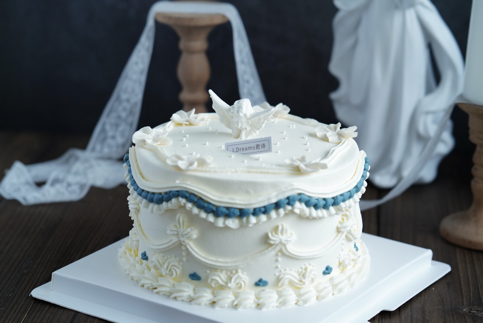 复古造型,白色搭配雾霾蓝,高级又好看。