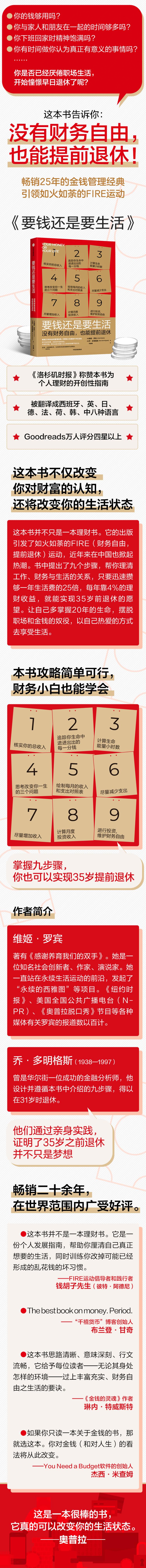 本书初版发行于1992年,作者在书中向读者发出了灵魂拷问:你是要钱还是要生活?我们拼命工作,换来了我们真正想要的吗?人生中无比重要的40年,在工作和加班中度过,这样的生活质量能好吗?