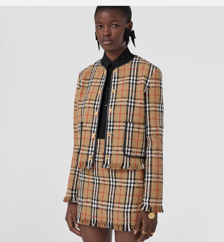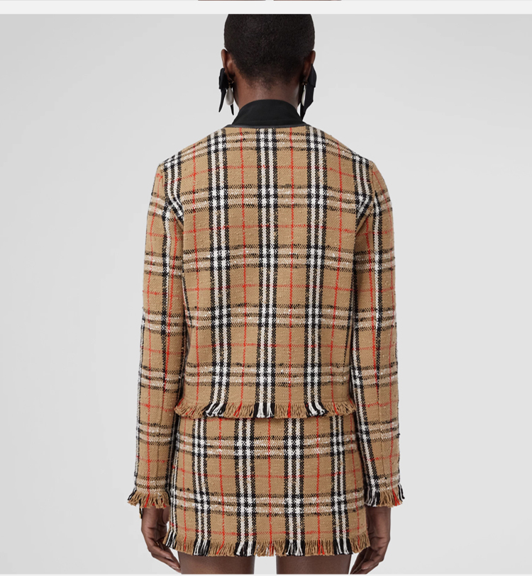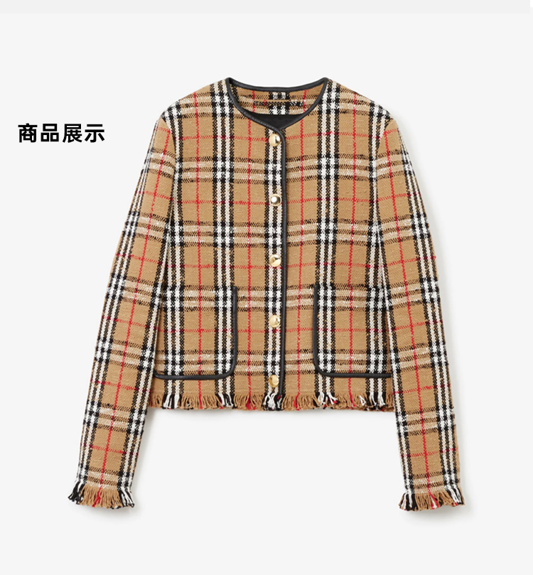 BURBERRY 巴宝莉 女士 Vintage 格纹花呢无领夹克外套 格子 8065309 A7028