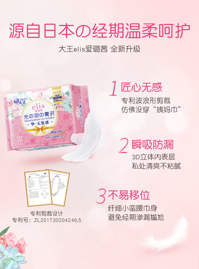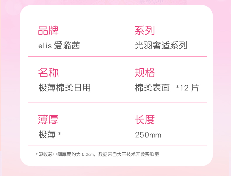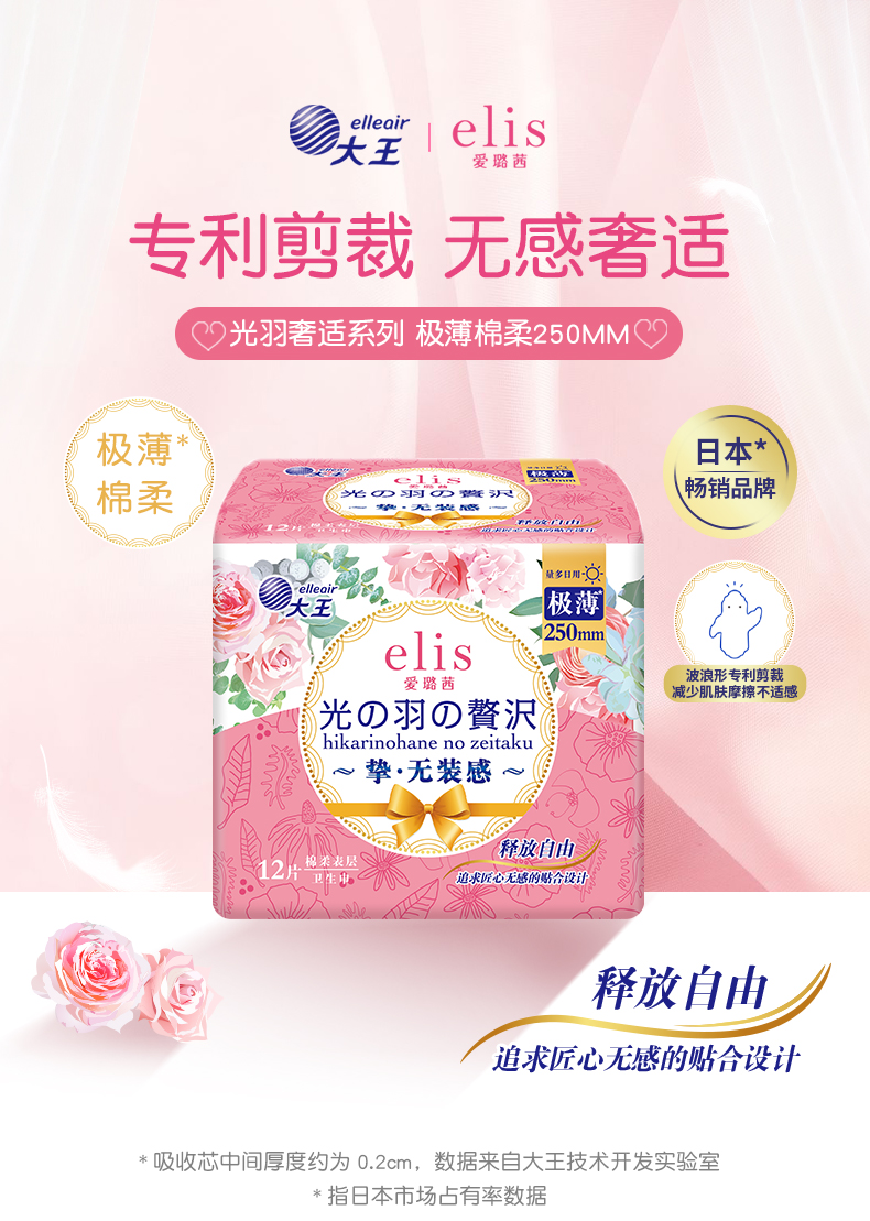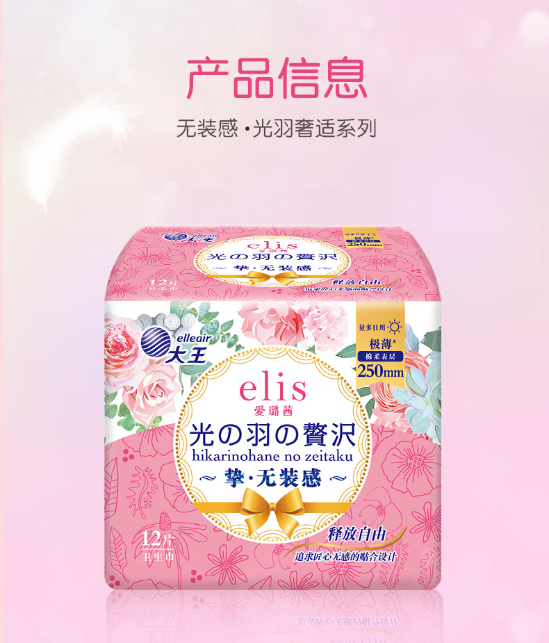 大王爱璐茜光羽极薄250日用卫生巾12片