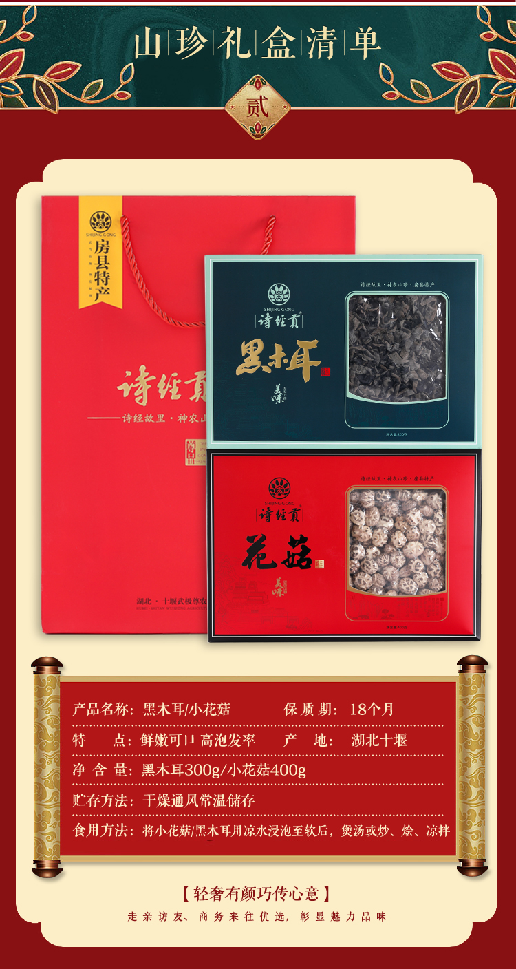 十堰房县 诗经贡 尊品花菇木耳礼盒700克/盒