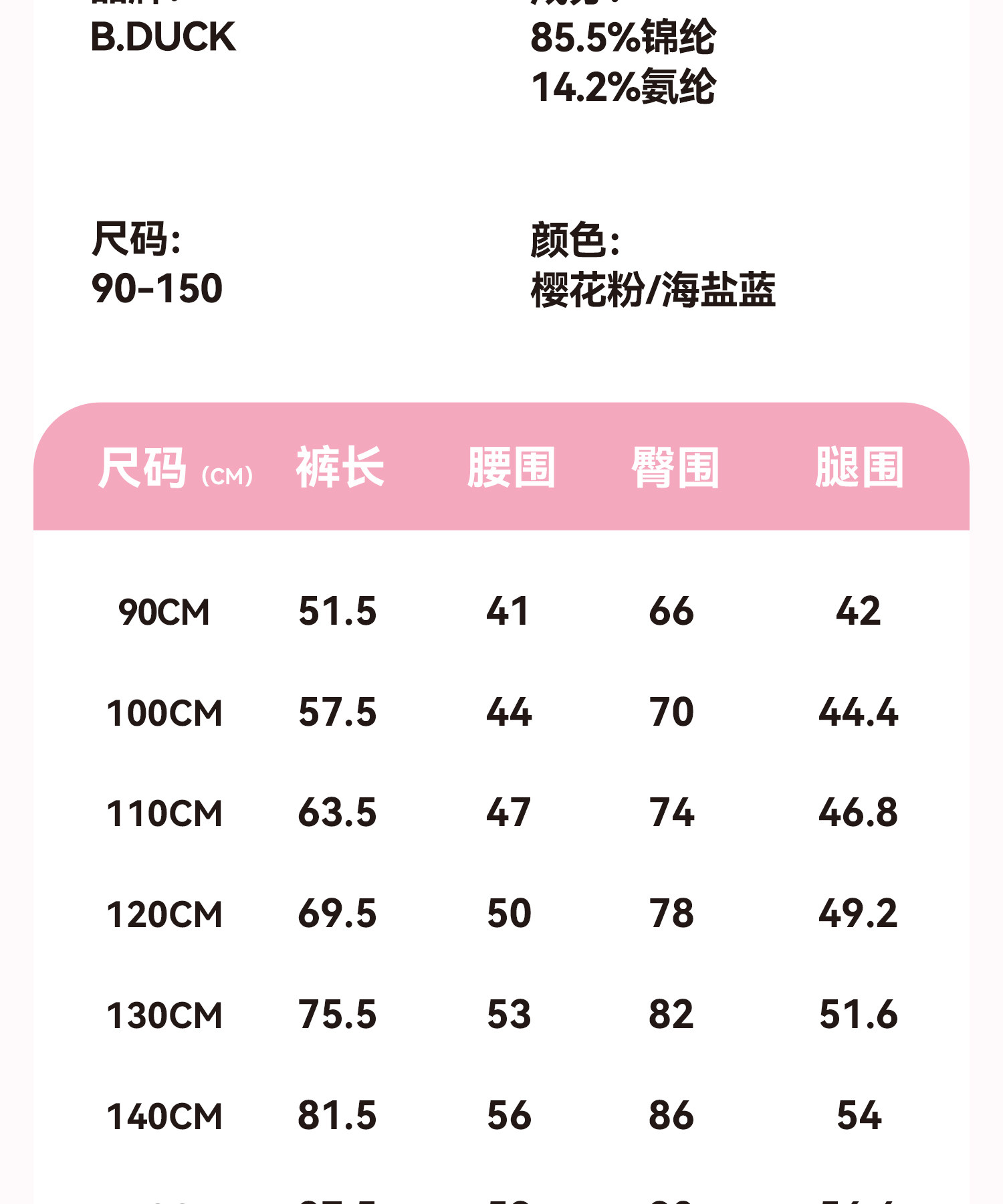 [冰感]bduck小黄鸭童装女童防蚊裤儿童裤子夏装凉感小女孩运动裤90-150 BDF2763593