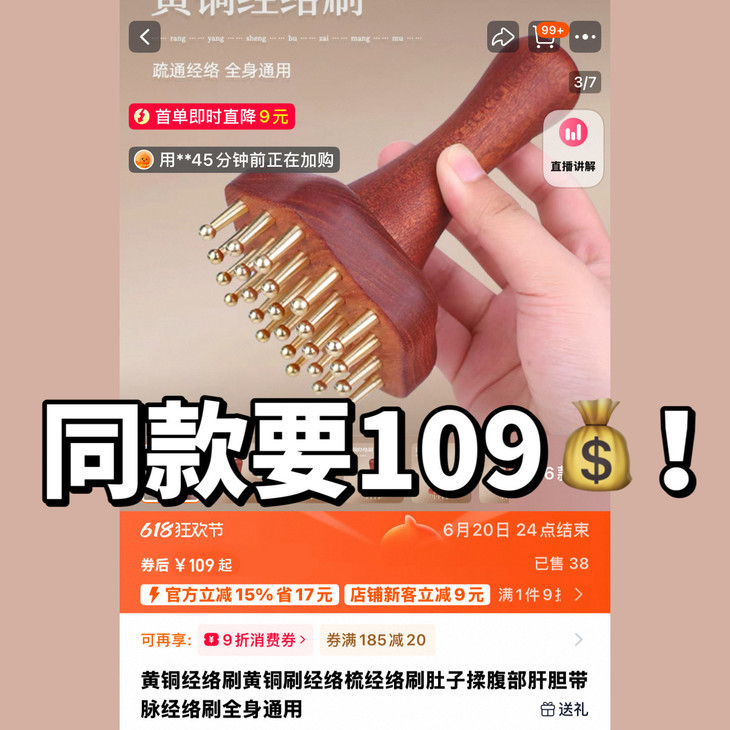 🔥美妆达人都在抢 😱【花梨木升級29齿黄铜经络刷】导热渗透双效🈴一‼️