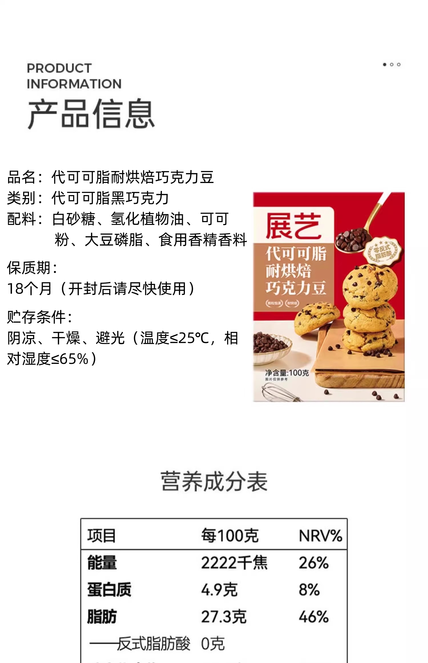 100g 展艺 代可可脂耐烘焙巧克力豆 蛋糕饼干曲奇装饰巧克力豆