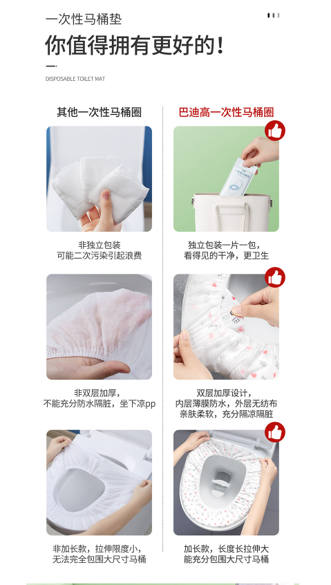 巴迪高一次性马桶垫 全覆盖产妇月子家用坐便器垫纸旅行酒店厕所坐垫套3.185