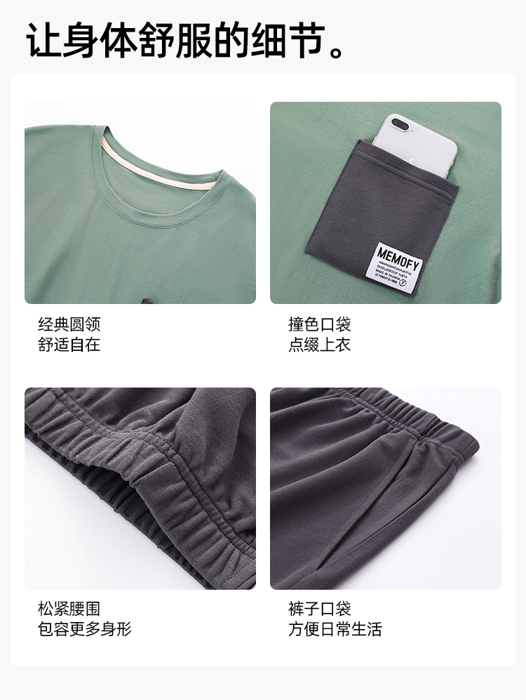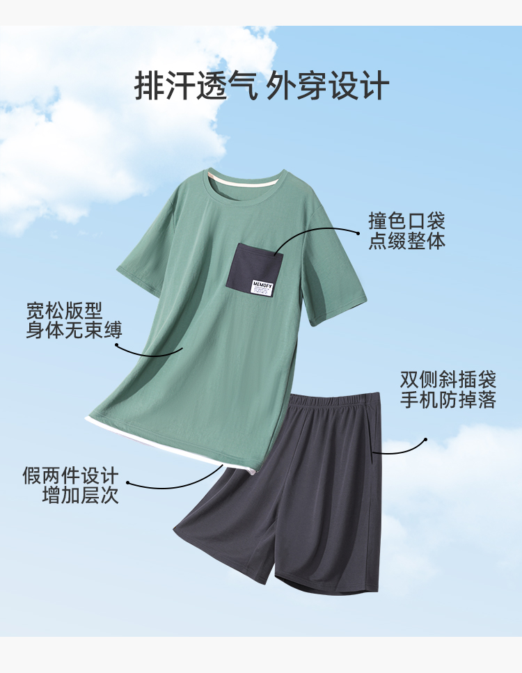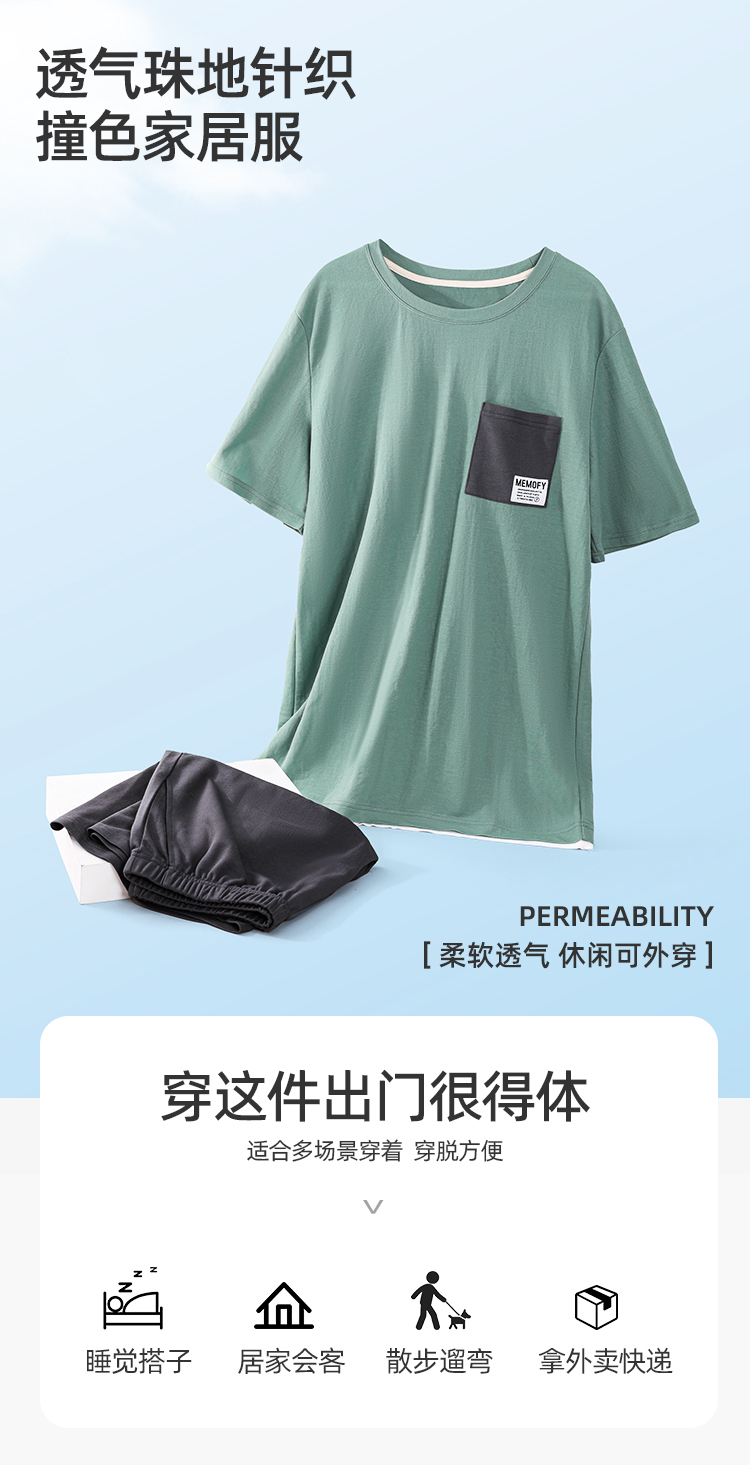 熳洁儿 珠地针织透气排汗可外穿时尚假两件睡衣舒适男士家居服套装24253902