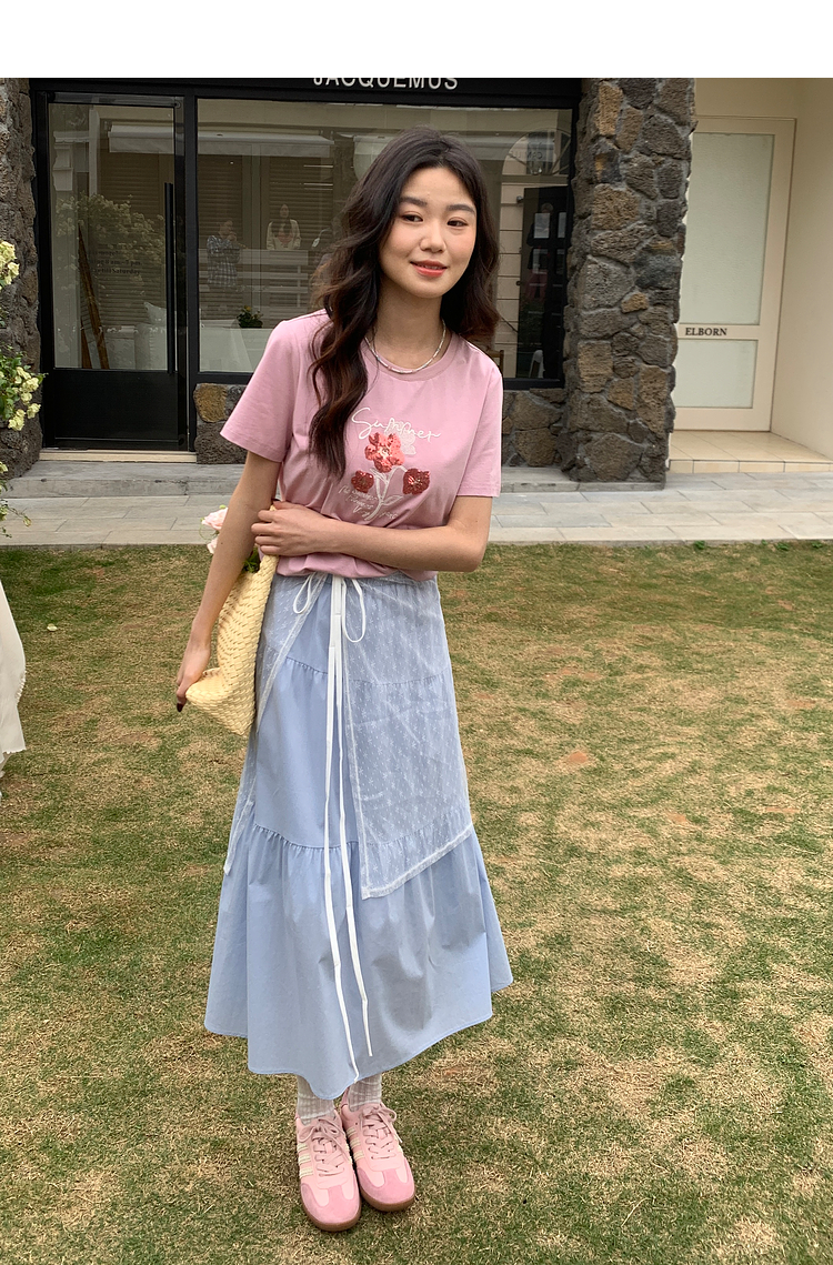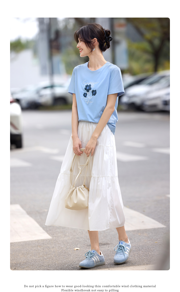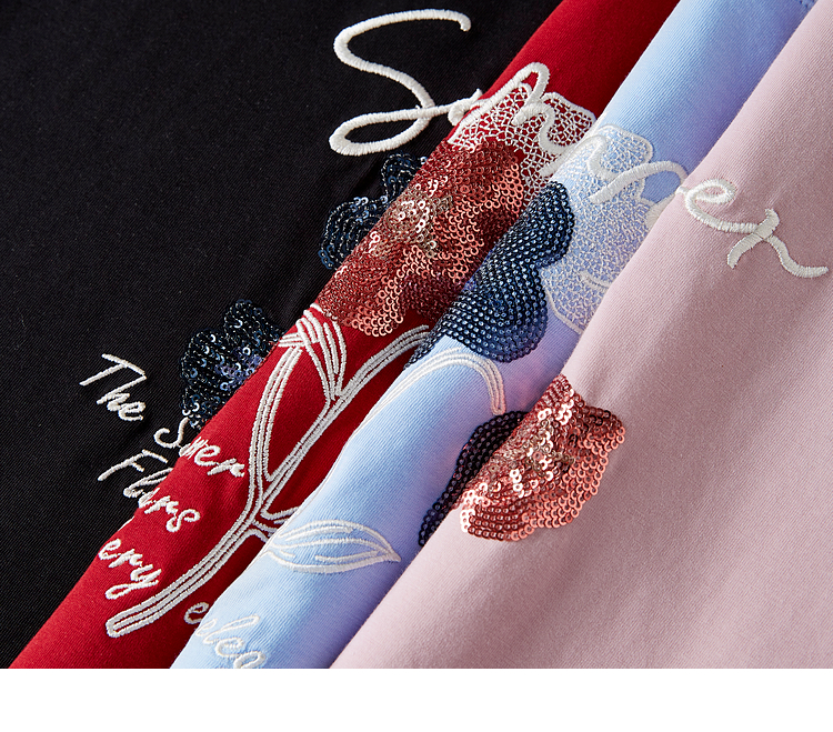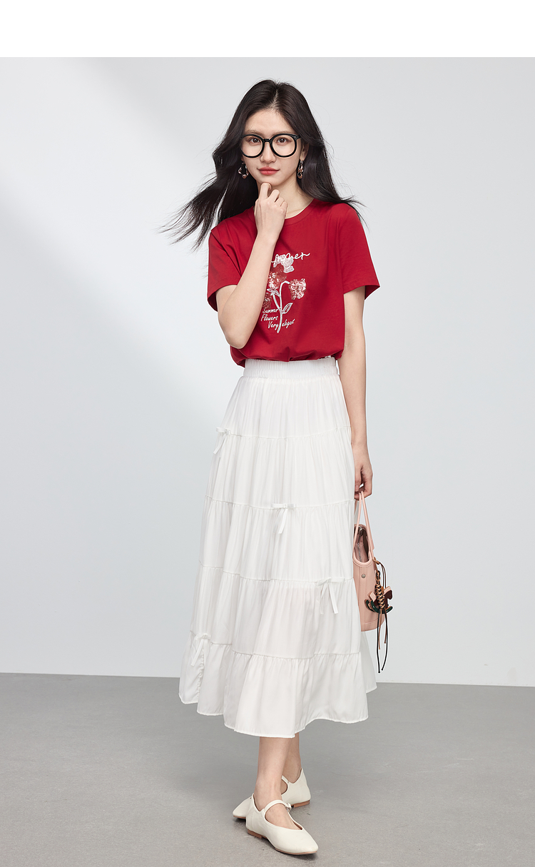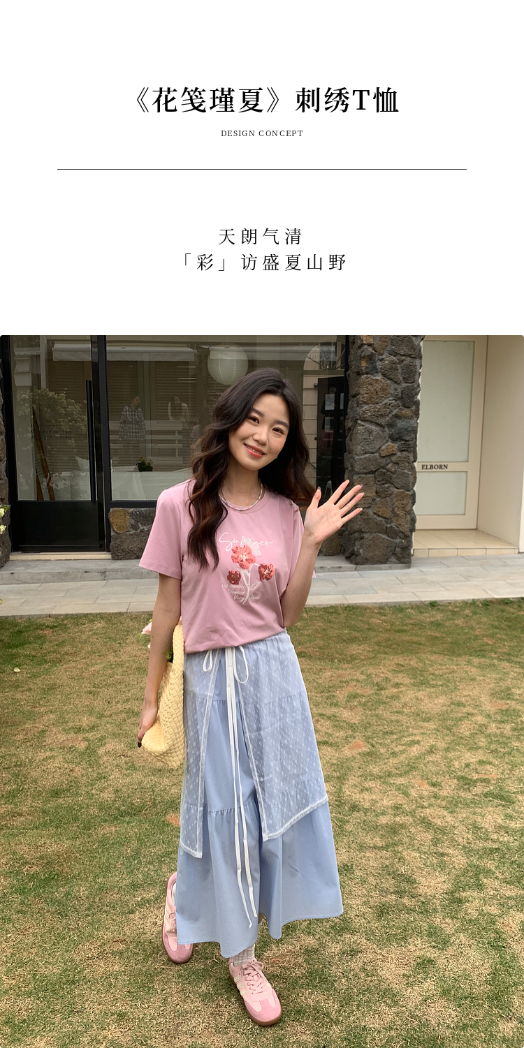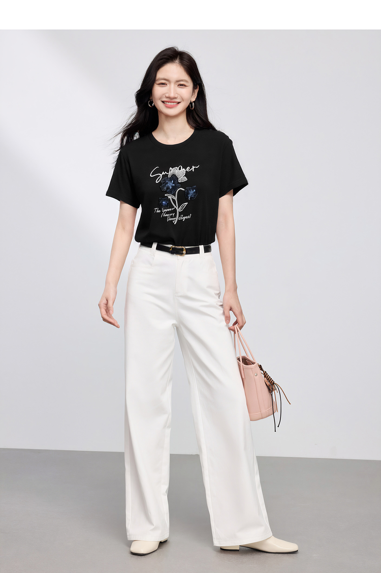 【专属特价】熙世界珠片刺绣正肩T恤女小众设计圆领短袖体恤上衣2025夏装新款