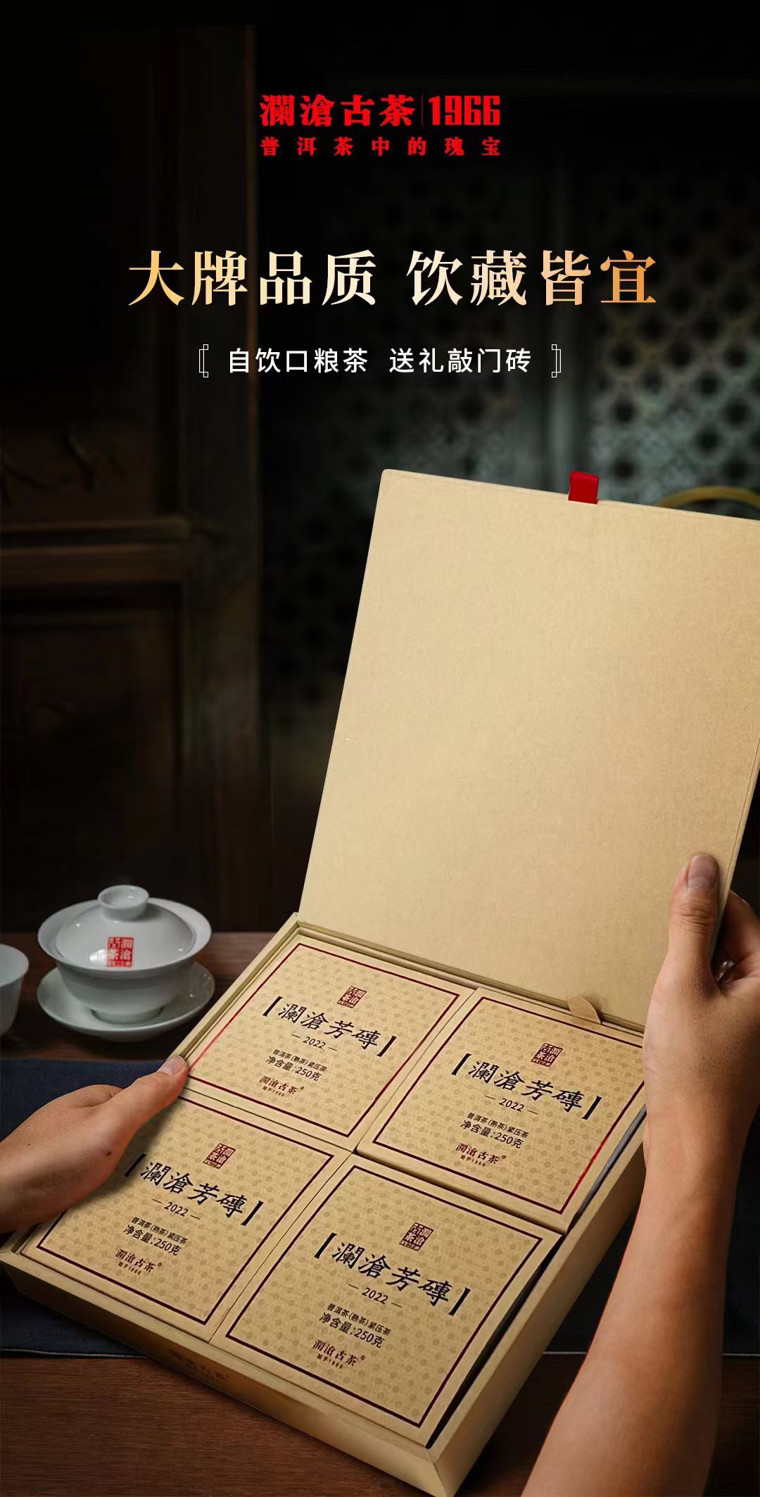 澜沧古茶2022年澜沧芳砖 云南普洱茶熟茶砖1000g 古树老树茶叶