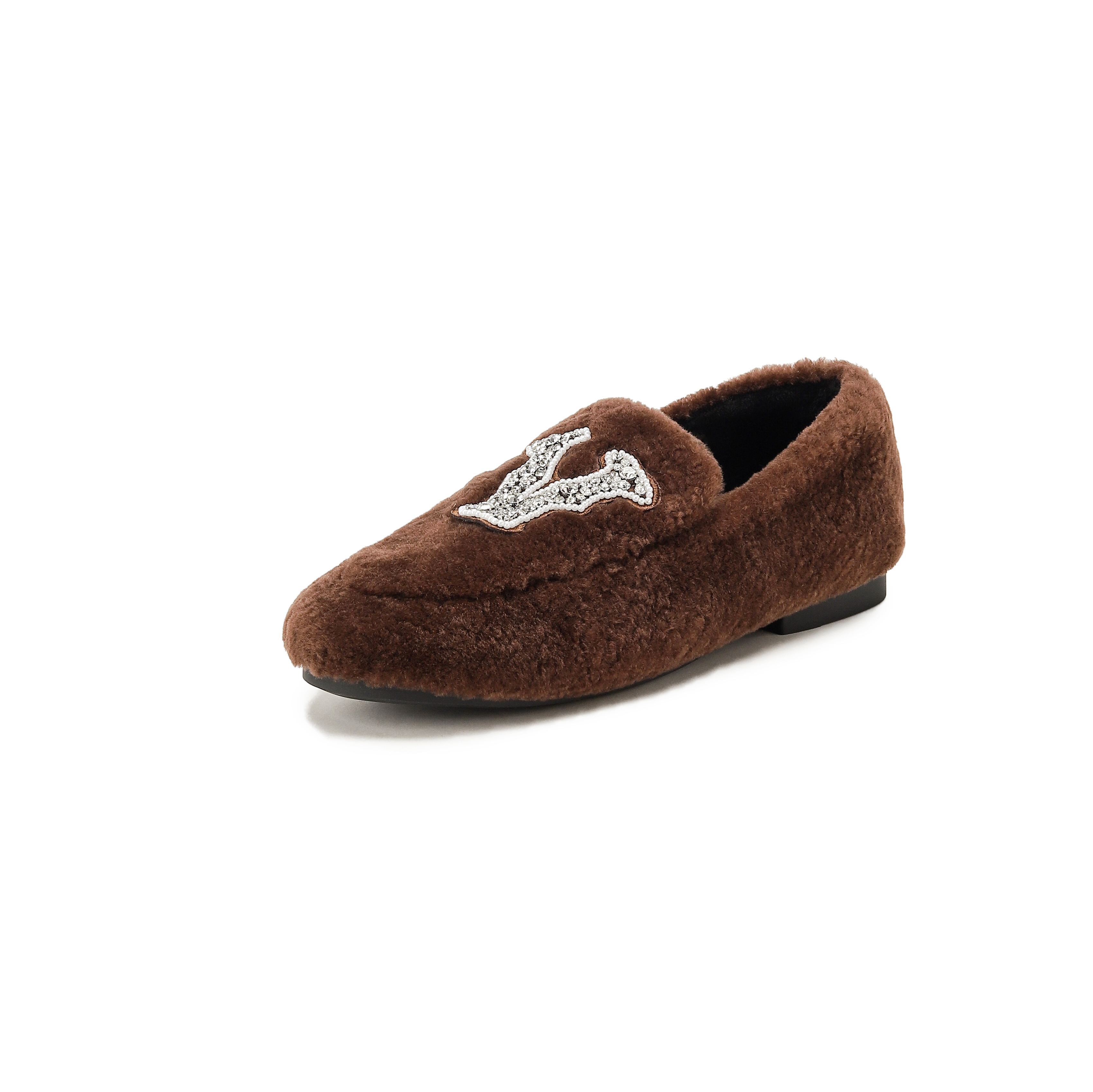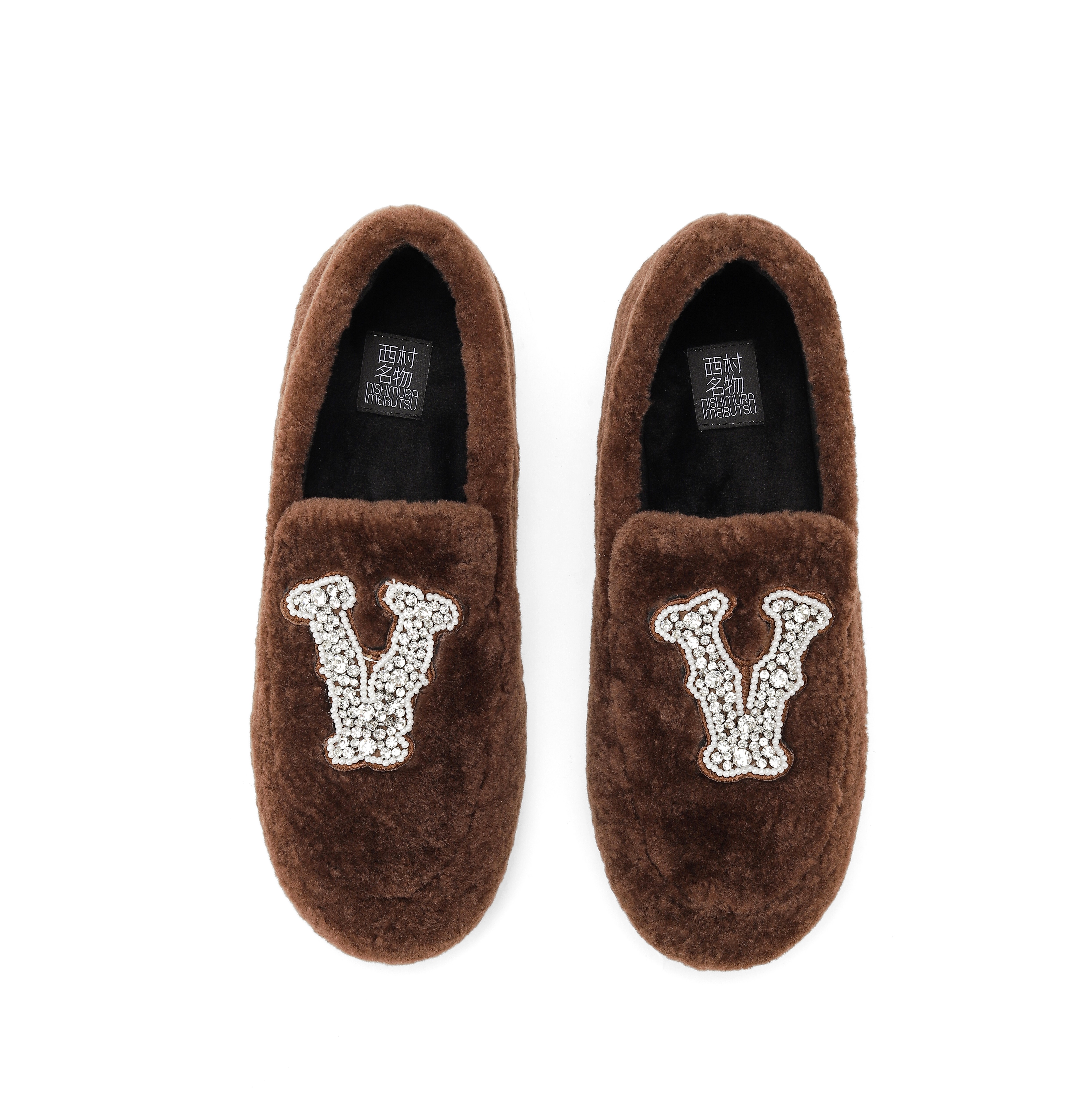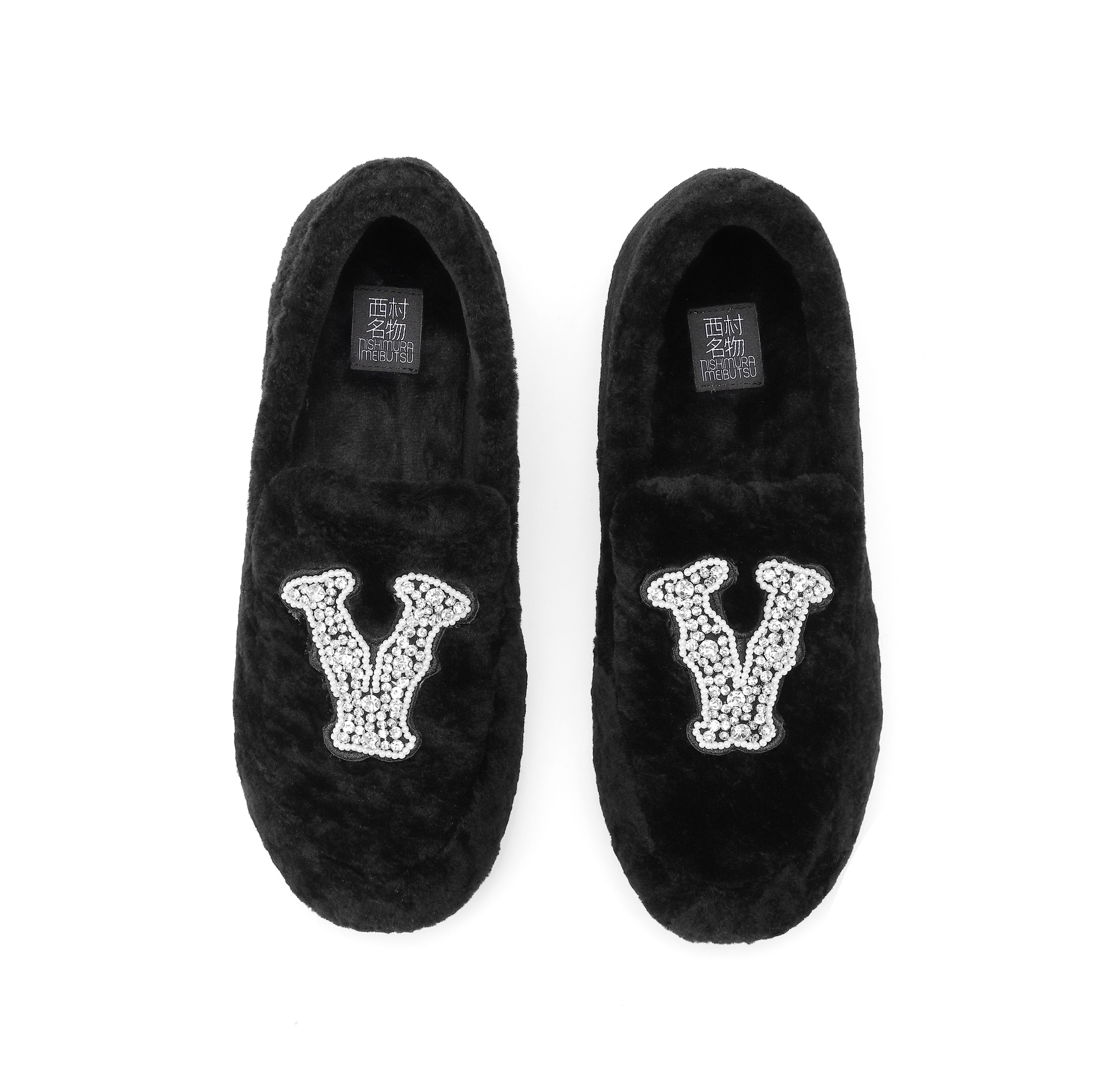 西村名物2024冬季新款复古休闲加绒拼接两穿勃肯鞋毛毛鞋X24DM47431