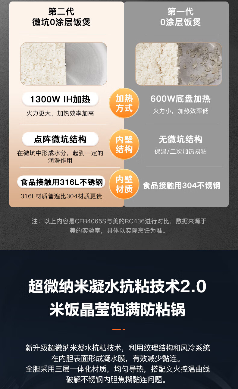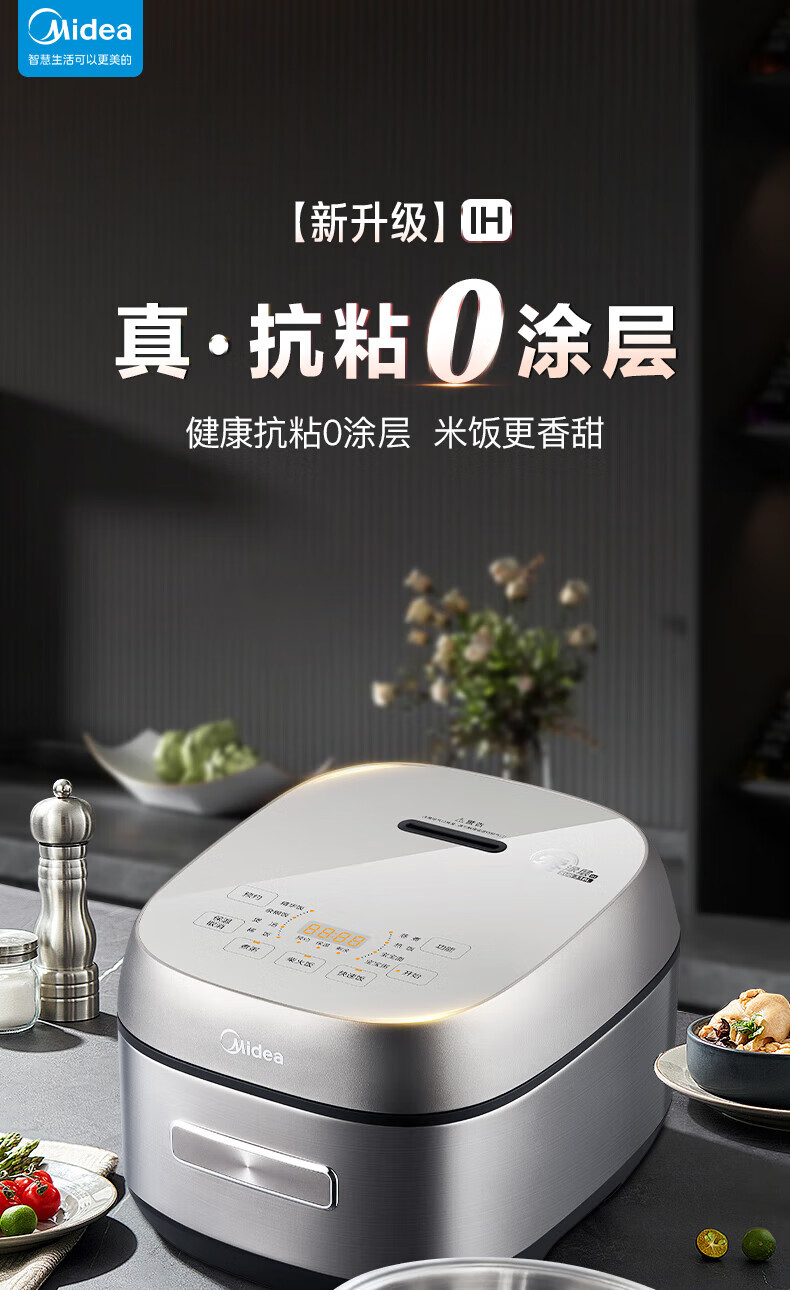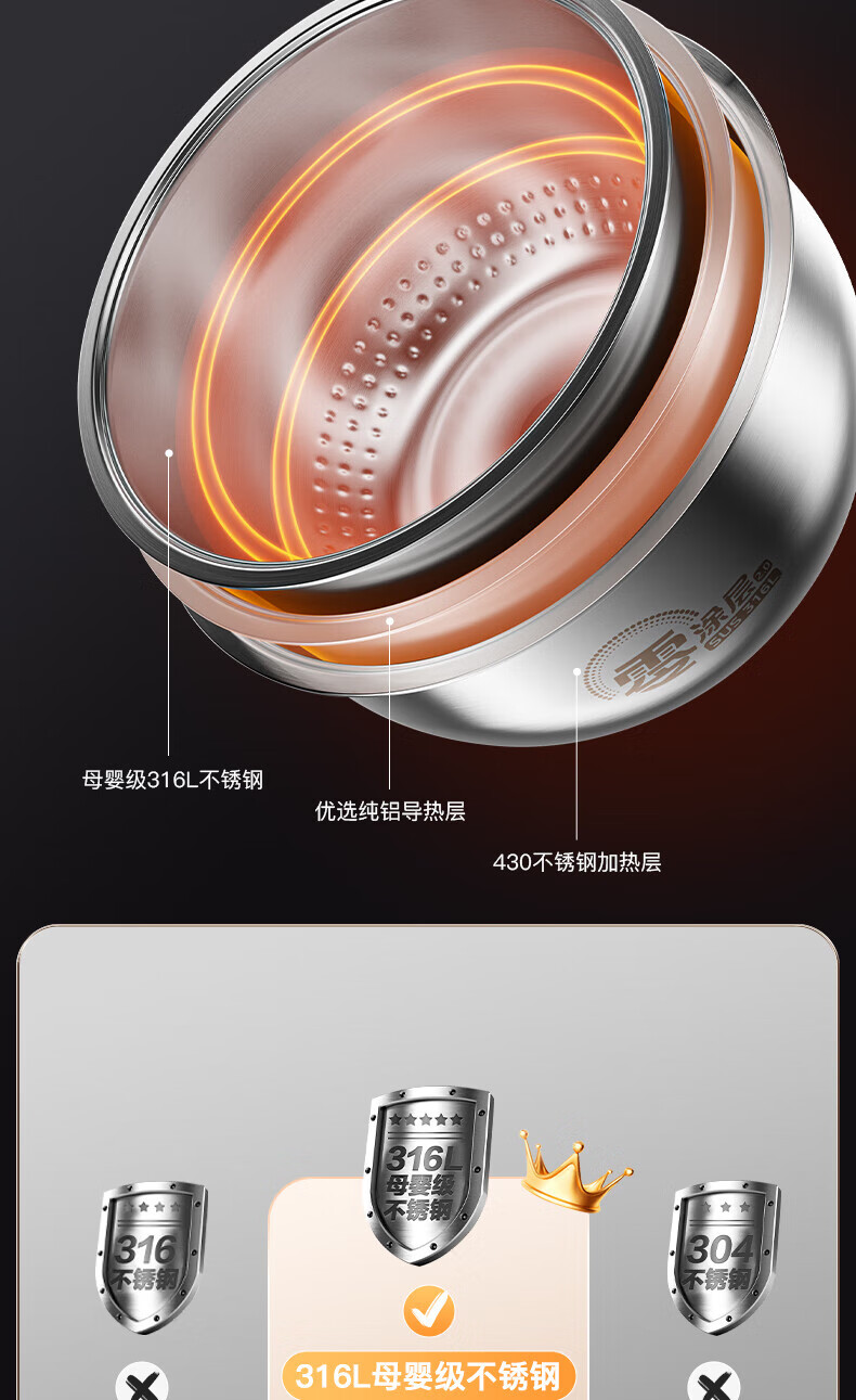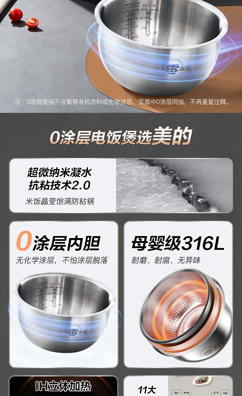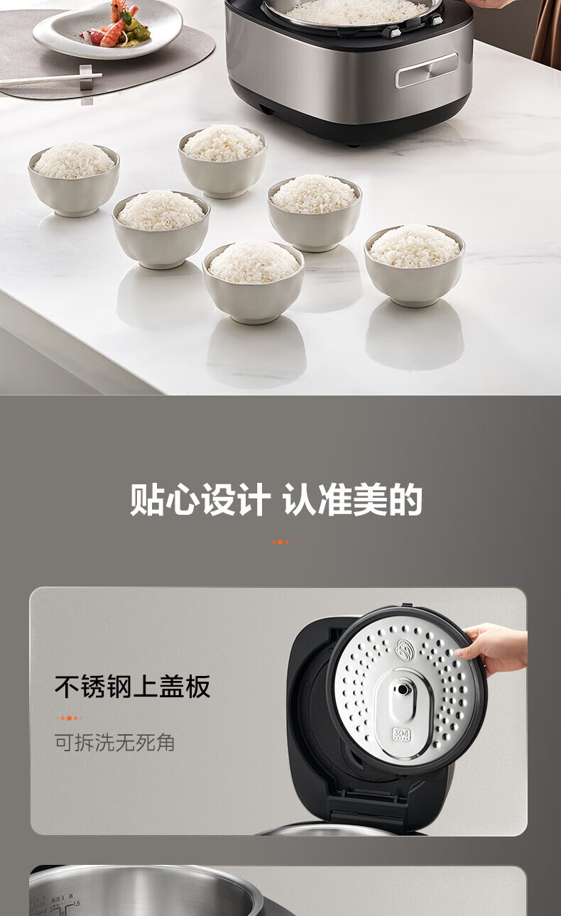 美的电饭煲 0涂层316L不锈钢3-4-5-8个人 大火力家用智能IH一级能效无涂层电饭锅【门店同款】CFB4065S
