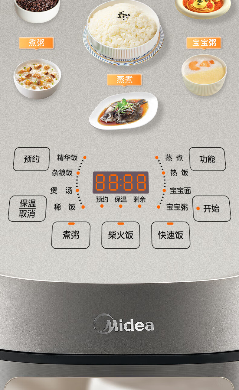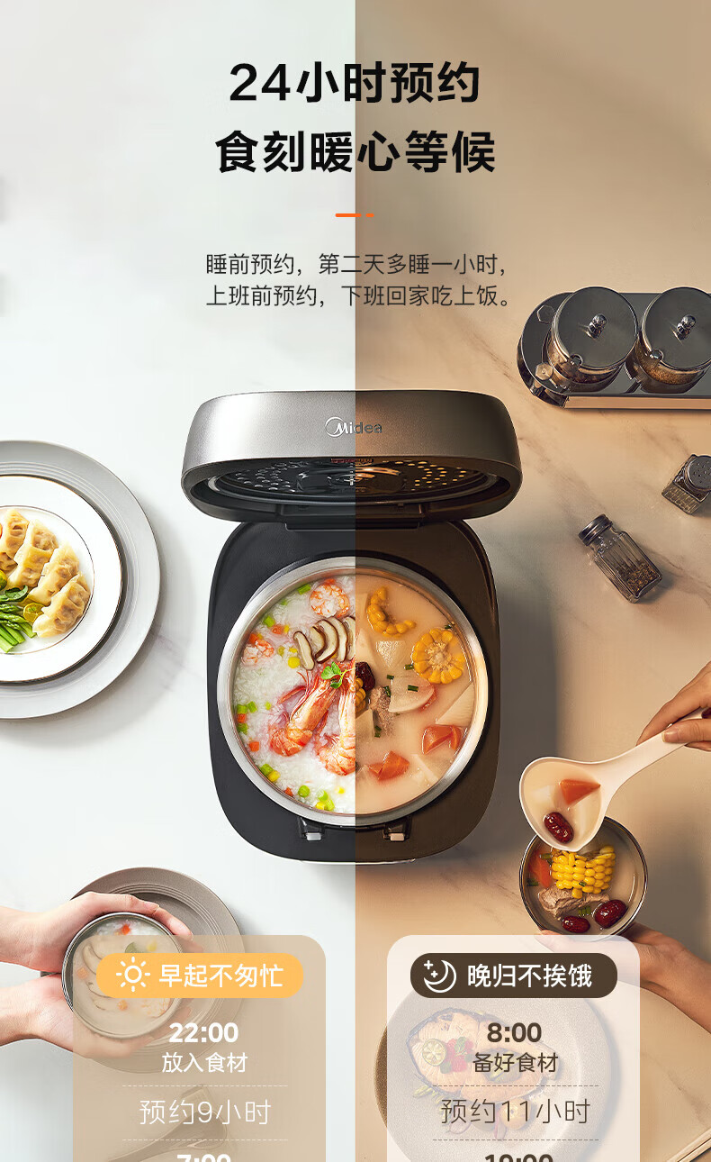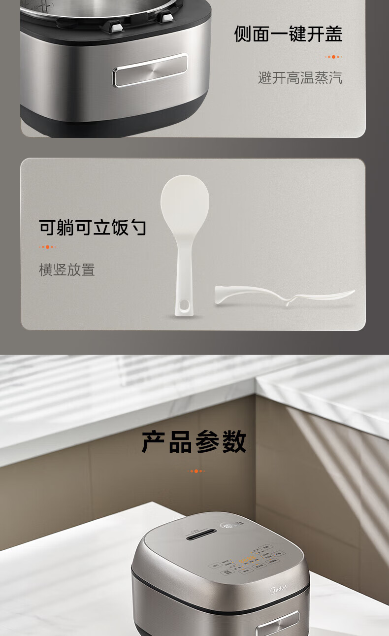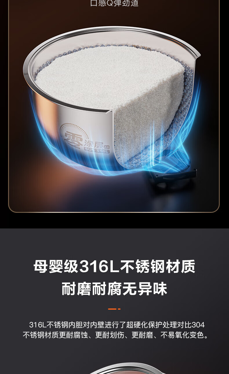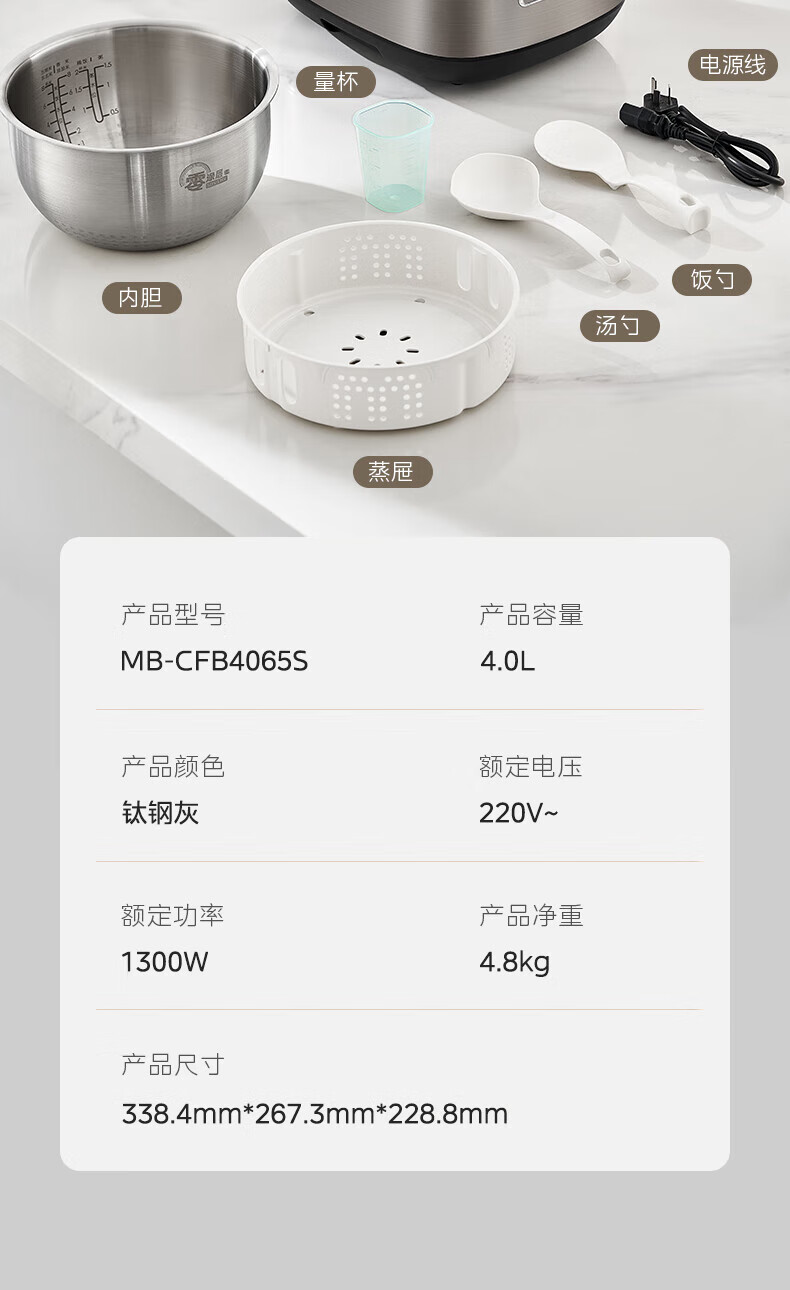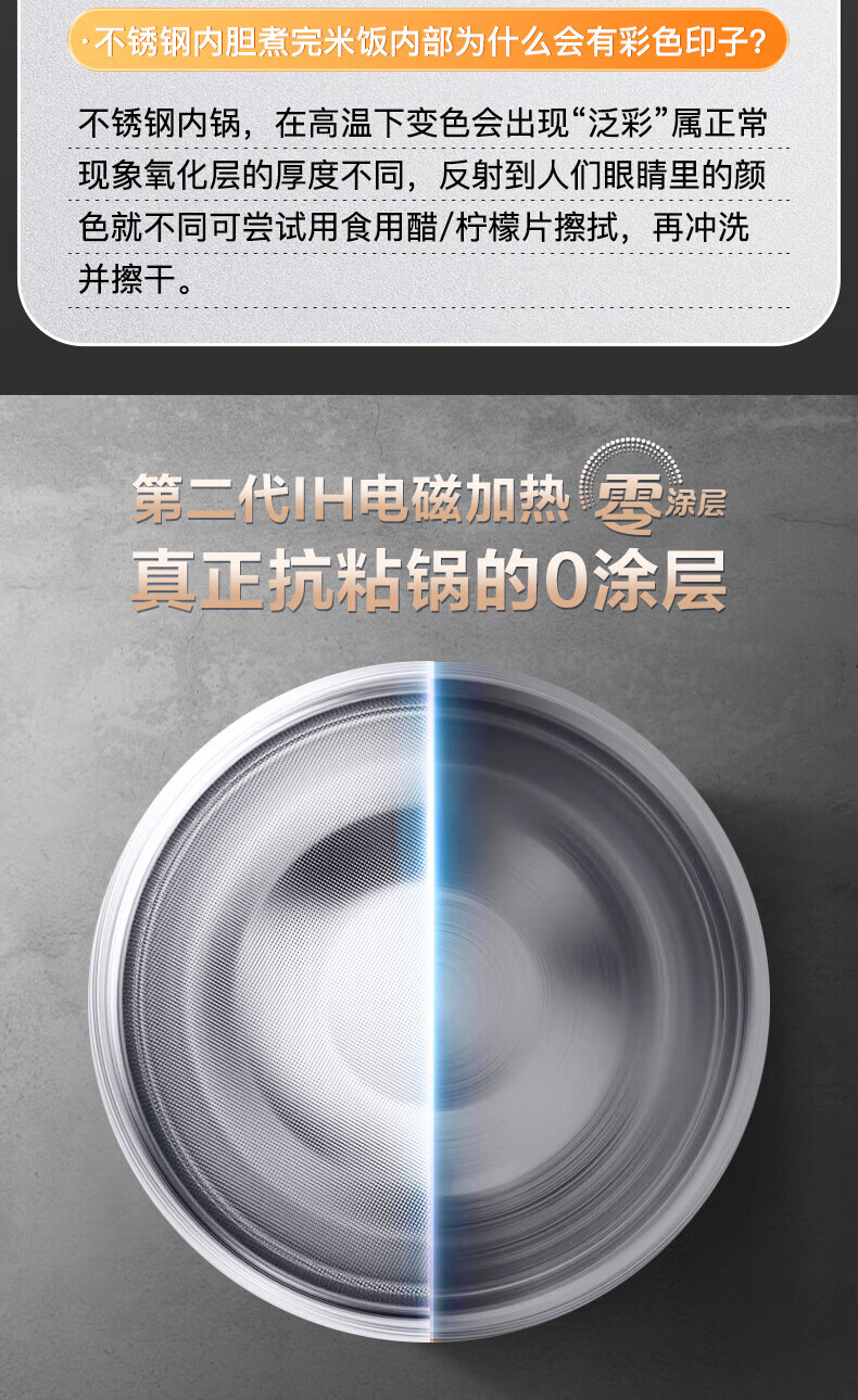 美的电饭煲 0涂层316L不锈钢3-4-5-8个人 大火力家用智能IH一级能效无涂层电饭锅【门店同款】CFB4065S
