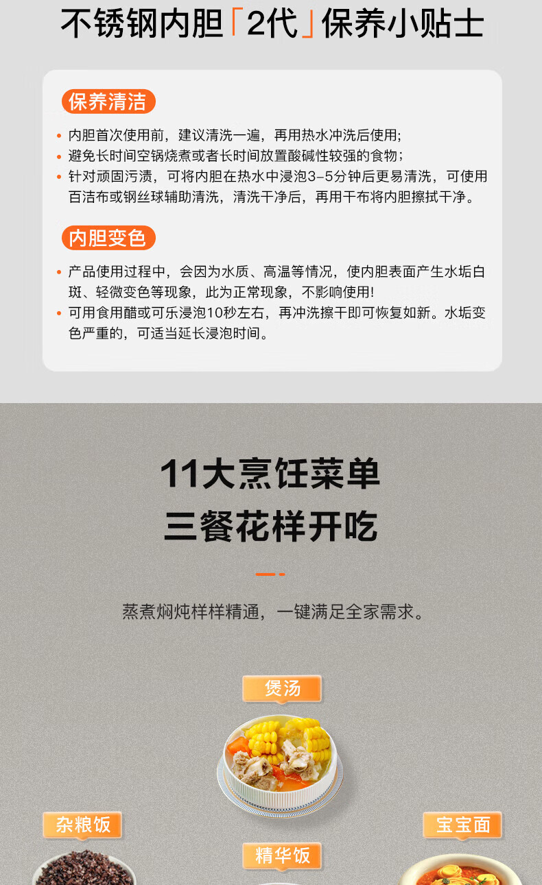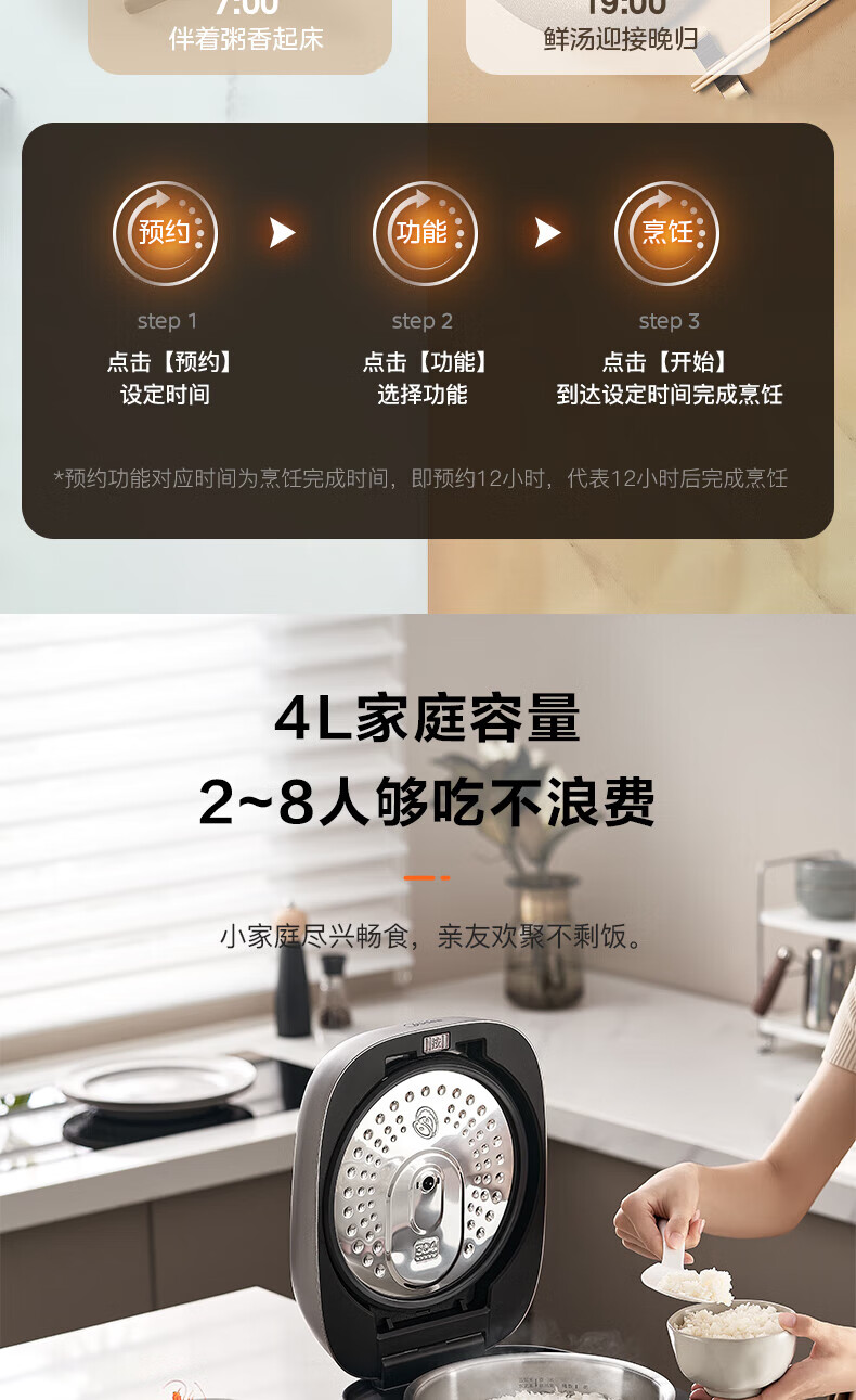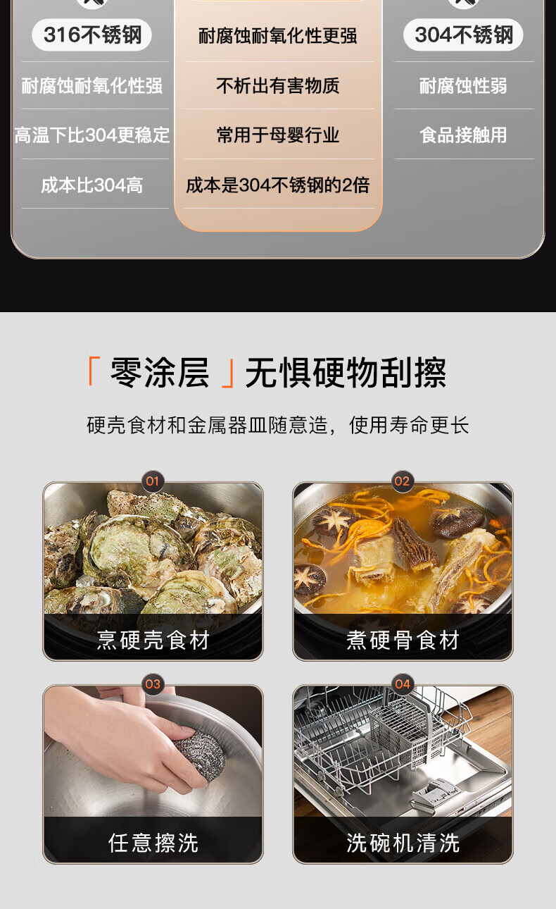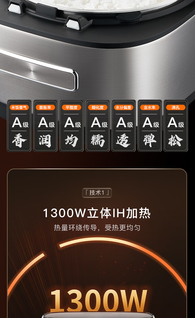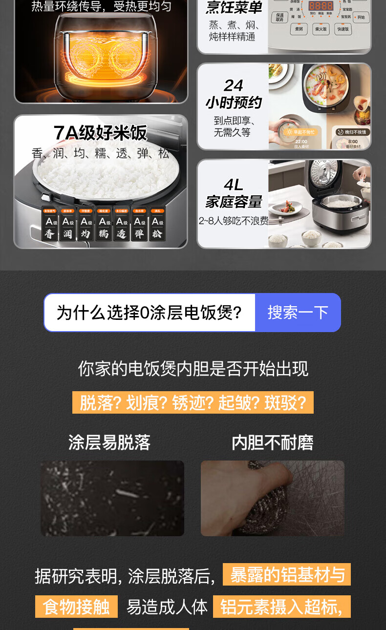 美的电饭煲 0涂层316L不锈钢3-4-5-8个人 大火力家用智能IH一级能效无涂层电饭锅【门店同款】CFB4065S