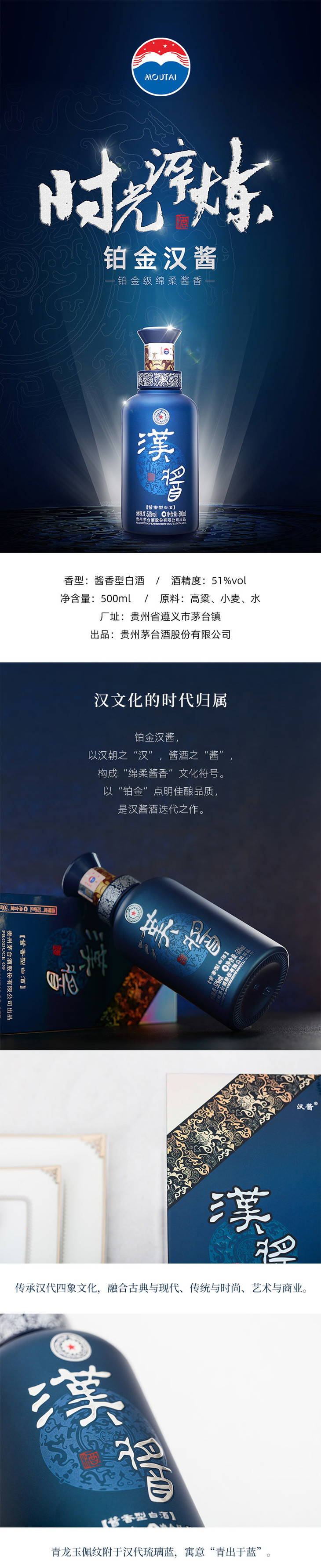 贵州茅台汉酱铂金蓝51度酱香型500ml