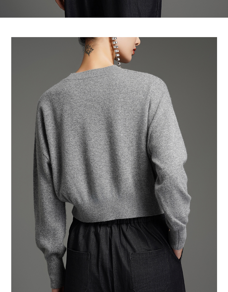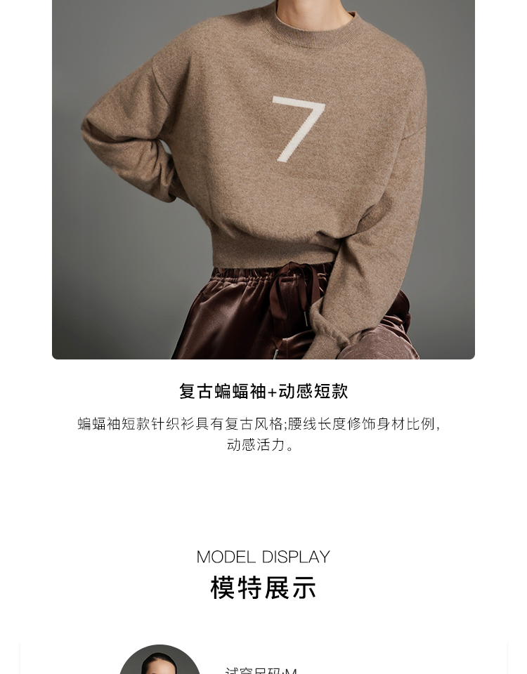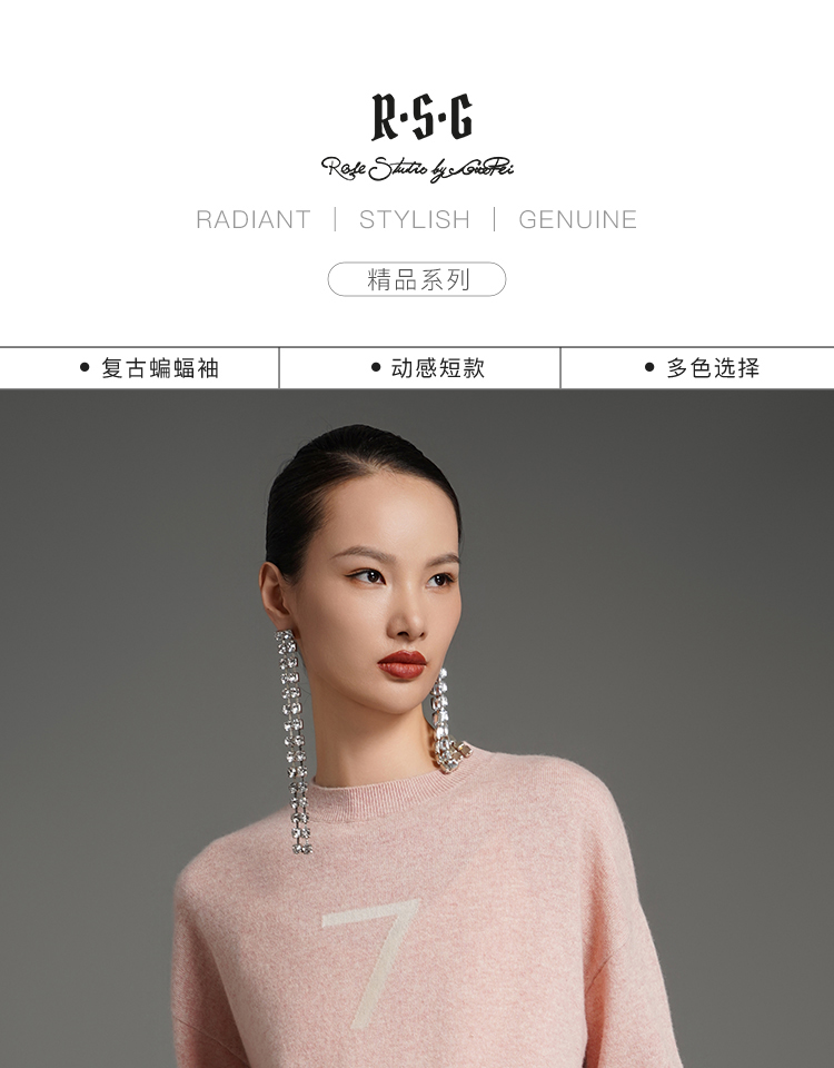 RSG郭培成衣品牌美拉德蝙蝠袖短款设计感7字休闲针织羊绒毛衣