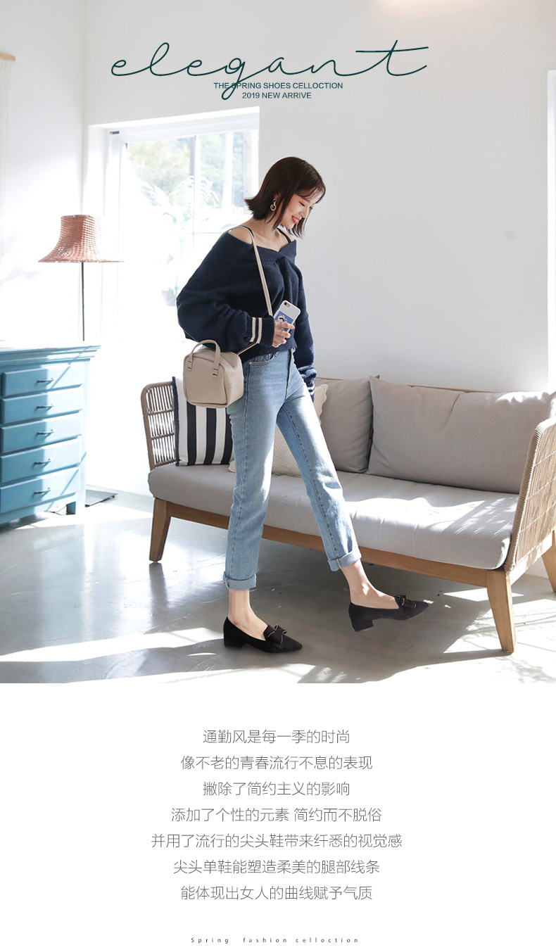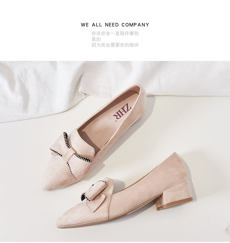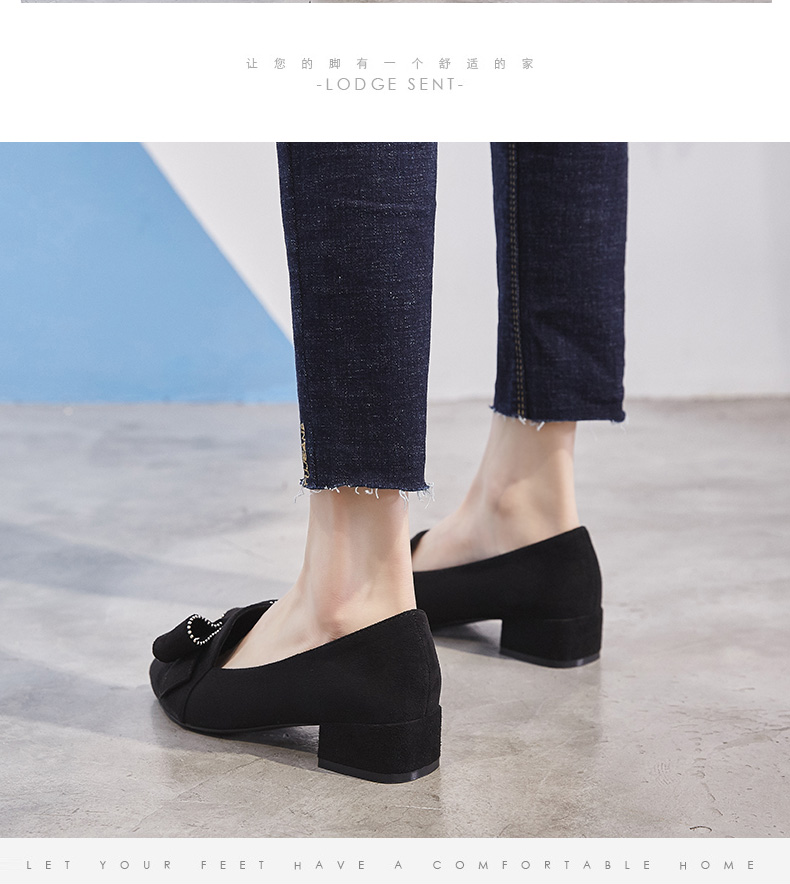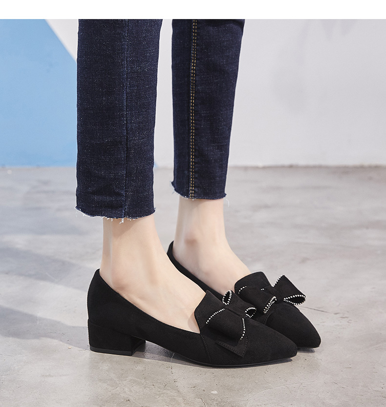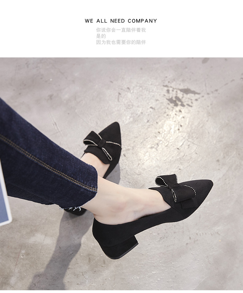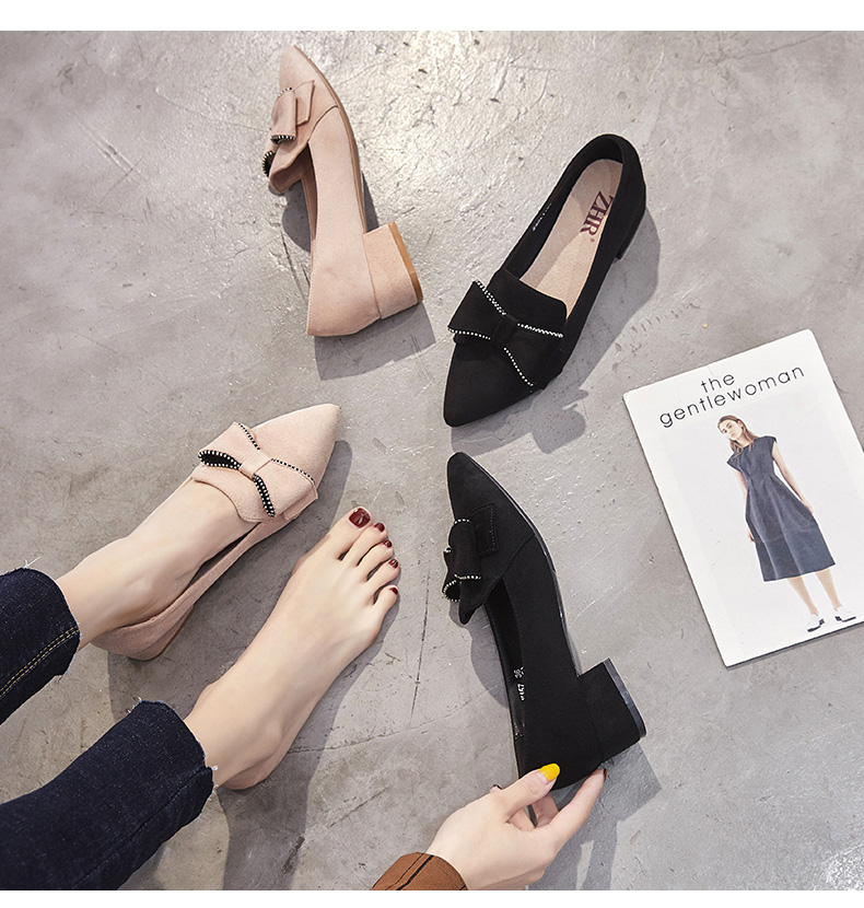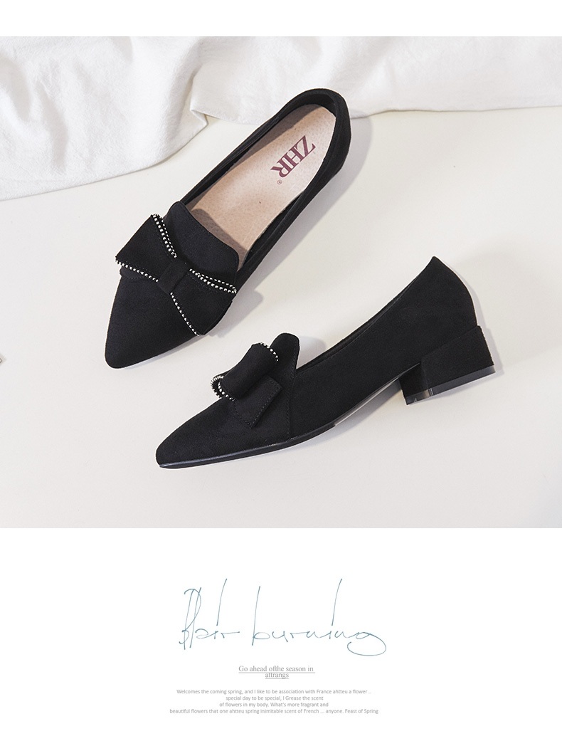 ZHR【水钻|蝴蝶结】浅口粗跟通勤鞋女职业鞋子女乐福鞋女单鞋女鞋