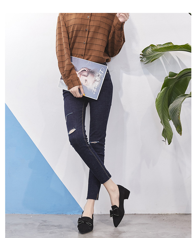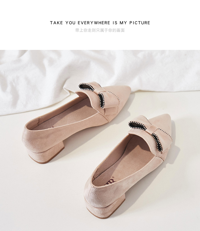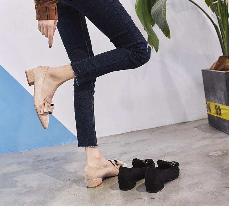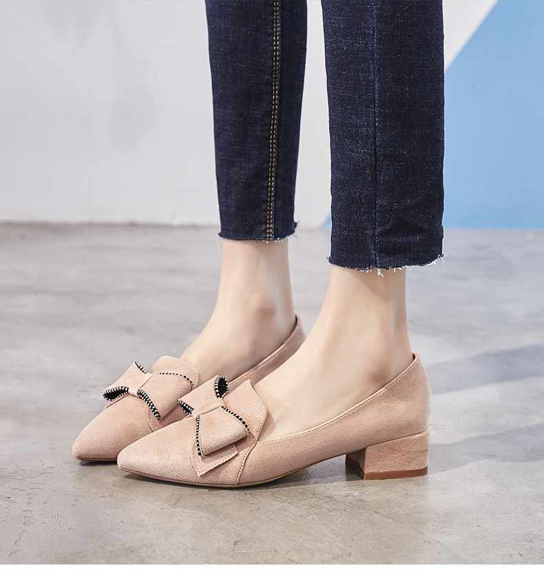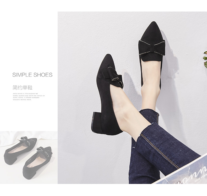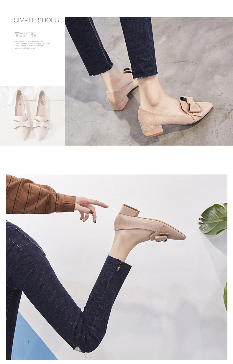 ZHR【水钻|蝴蝶结】浅口粗跟通勤鞋女职业鞋子女乐福鞋女单鞋女鞋